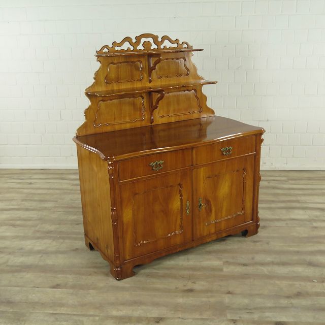 1.007,56€ Exkl. MwSt.Restaurierte Biedermeier Anrichte mit Aufsatz in Kirschbaum furniert und von Grund auf Schellack poliert von ca. 1870. Der Schrank befindet sich in einem guten Zustand und weist nur geringe Gebrauchsspuren auf. Er ist frei von Wurmbefall.