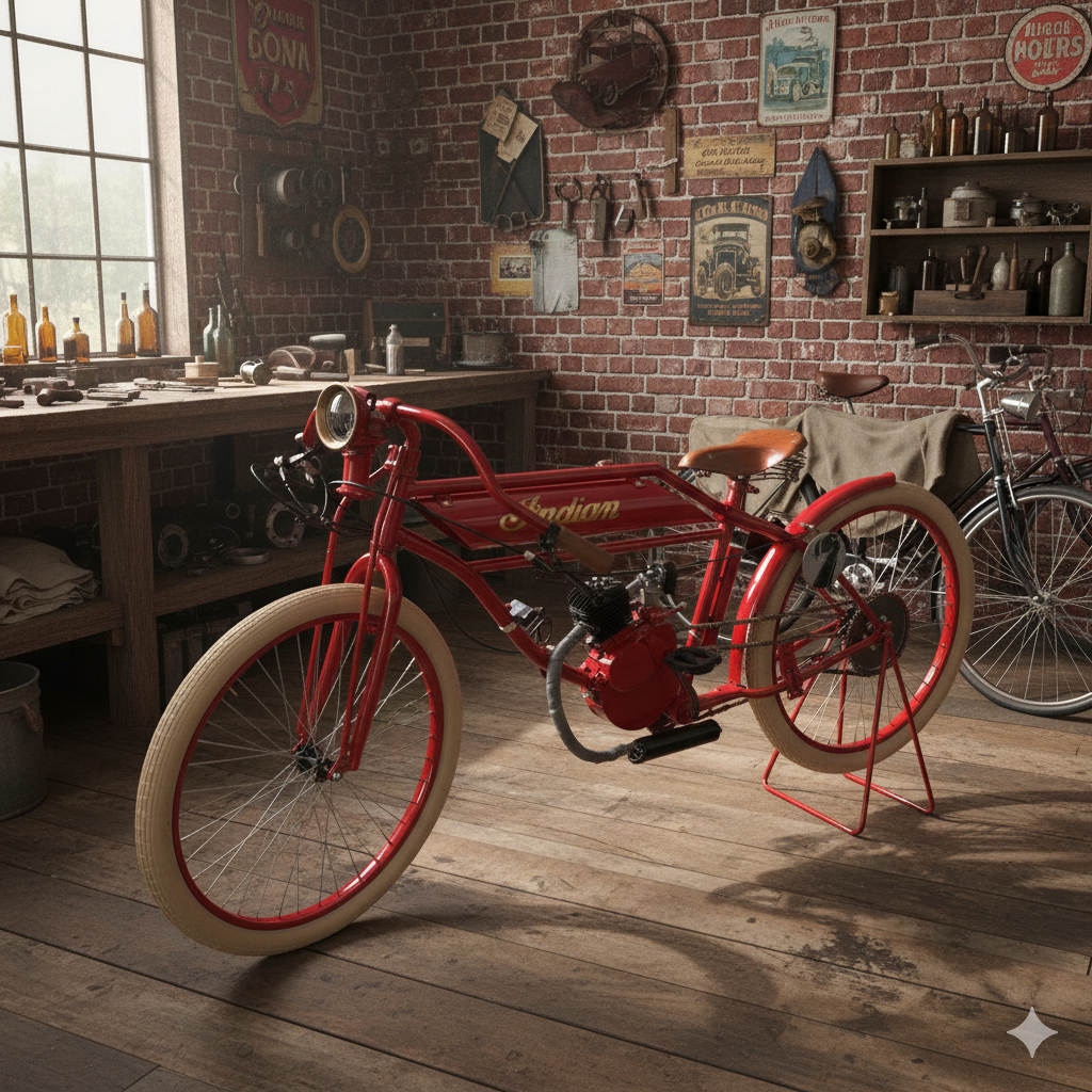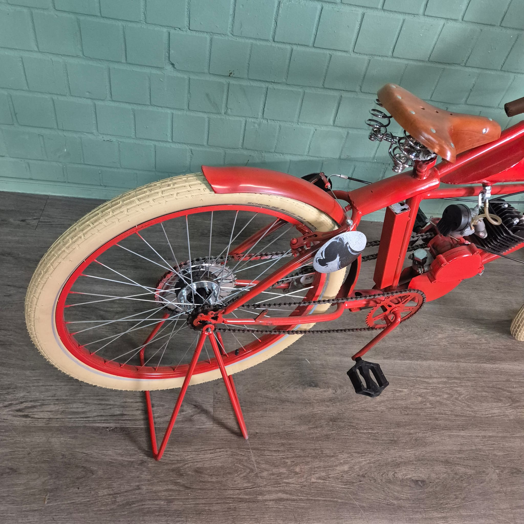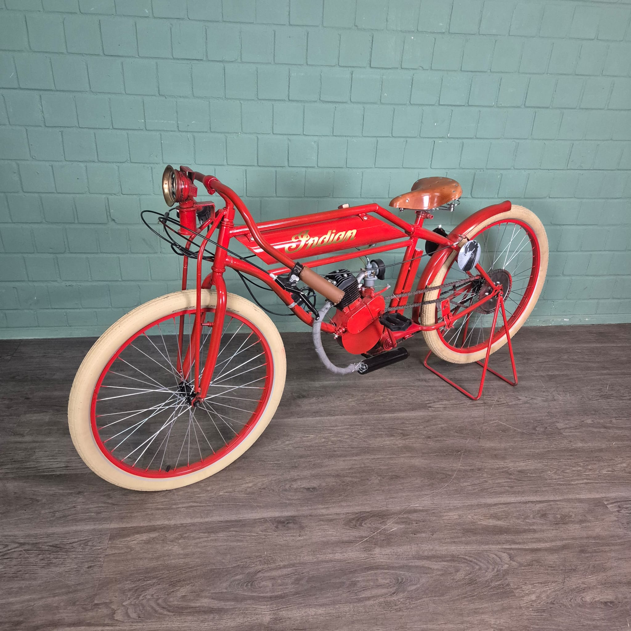 Tauchen Sie ein in die goldene Ära des Motorradfahrens mit dieser Reproduktion eines klassischen Indian Motorrads. Dieses wunderschöne Stück fängt den zeitlosen Charme und das ikonische Design der frühen Indian-Modelle perfekt ein.