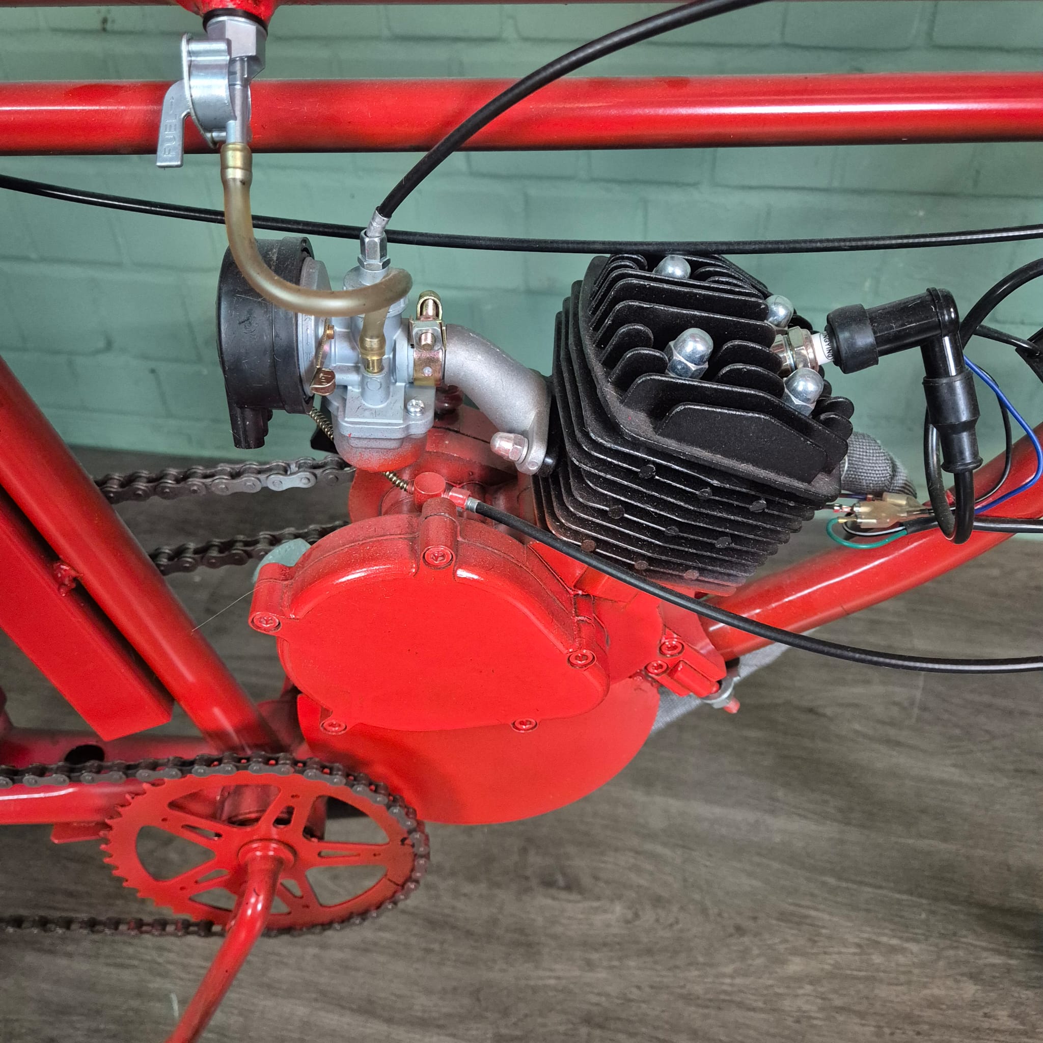 Authentisches Design: Die Replika besticht durch ihren klassischen, roten Rahmen, den stilvollen Tank mit dem Indian-Schriftzug und die charakteristische Silhouette.