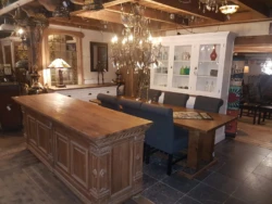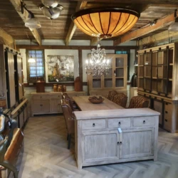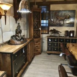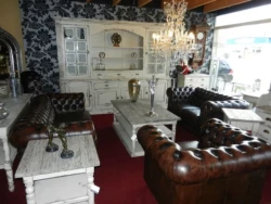 Ausgesuchte Möbel aus Massivholz mit leicht nostalgischen Flair kombiniert mit edlen Chesterfield Sitzgarnituren; der Liebhaber von einzigartigen Einrichtungen wird bei uns immer fündig. Tischund Stühlefür das Esszimmer, Sofa und Couchtisch sowie ein Schrank für das Wohnzimmer, der Schreibtisch und das Regal fürs Büro, bei uns finden Sie Ihre komplette Wohnungseinrichtung.