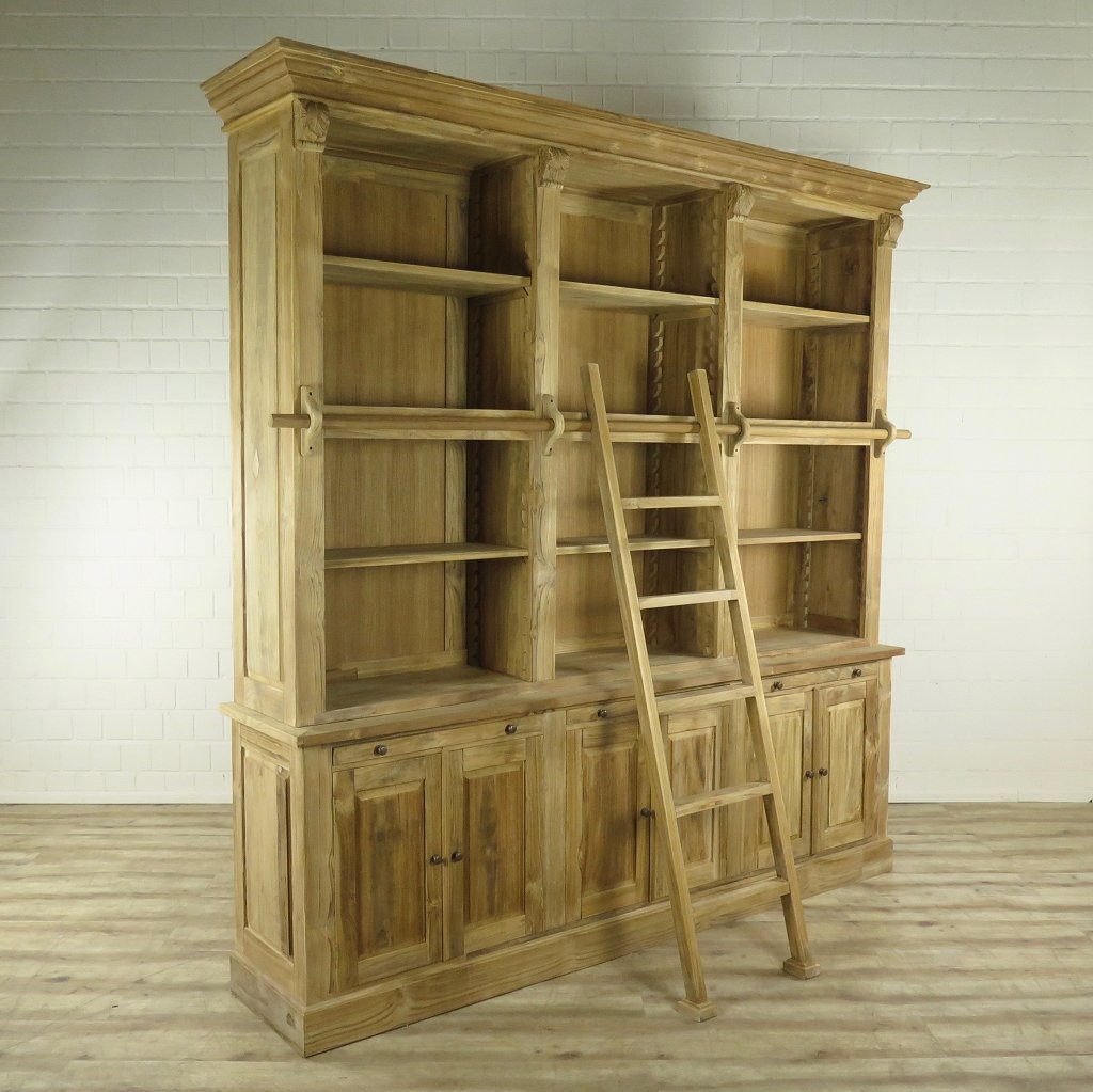 Bibliotheksschrank Wandregal Teakholz 2,42 m