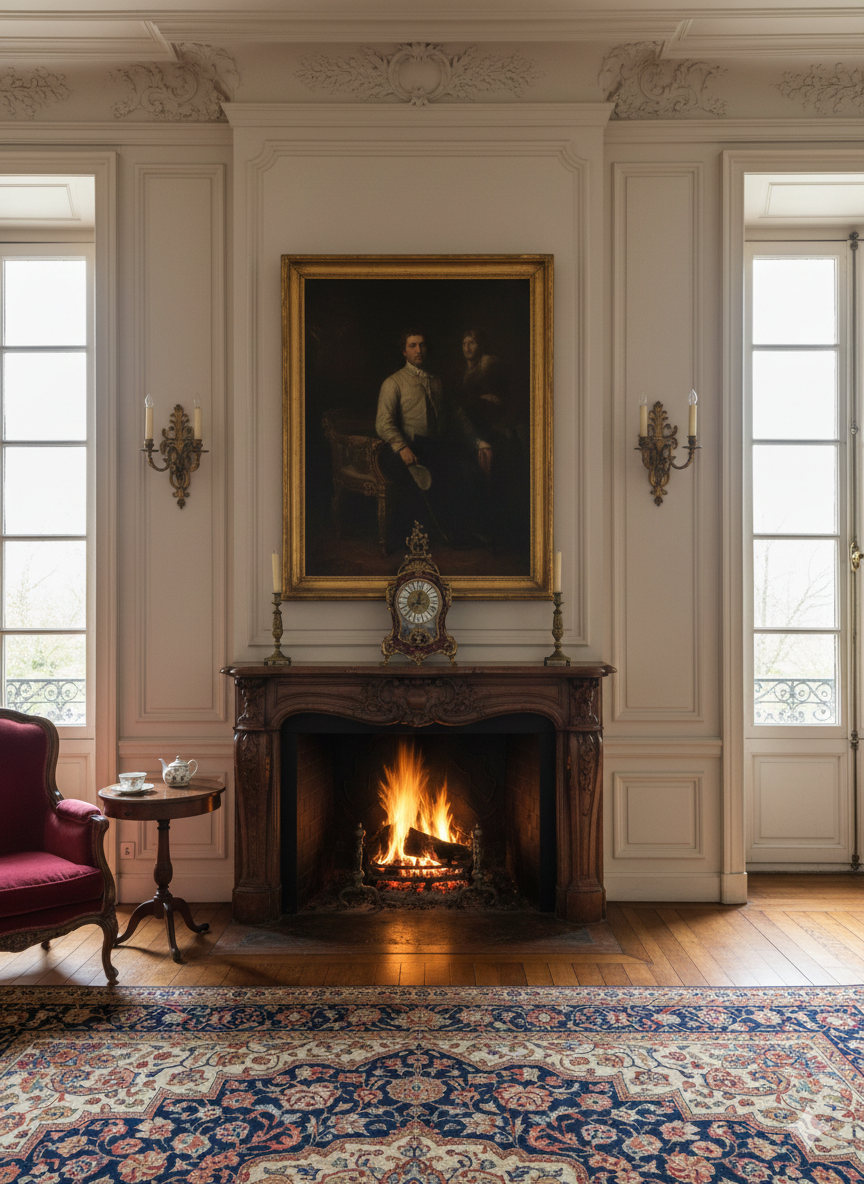 Kaminuhr Jugendstil 1910 Porzellan Bronze