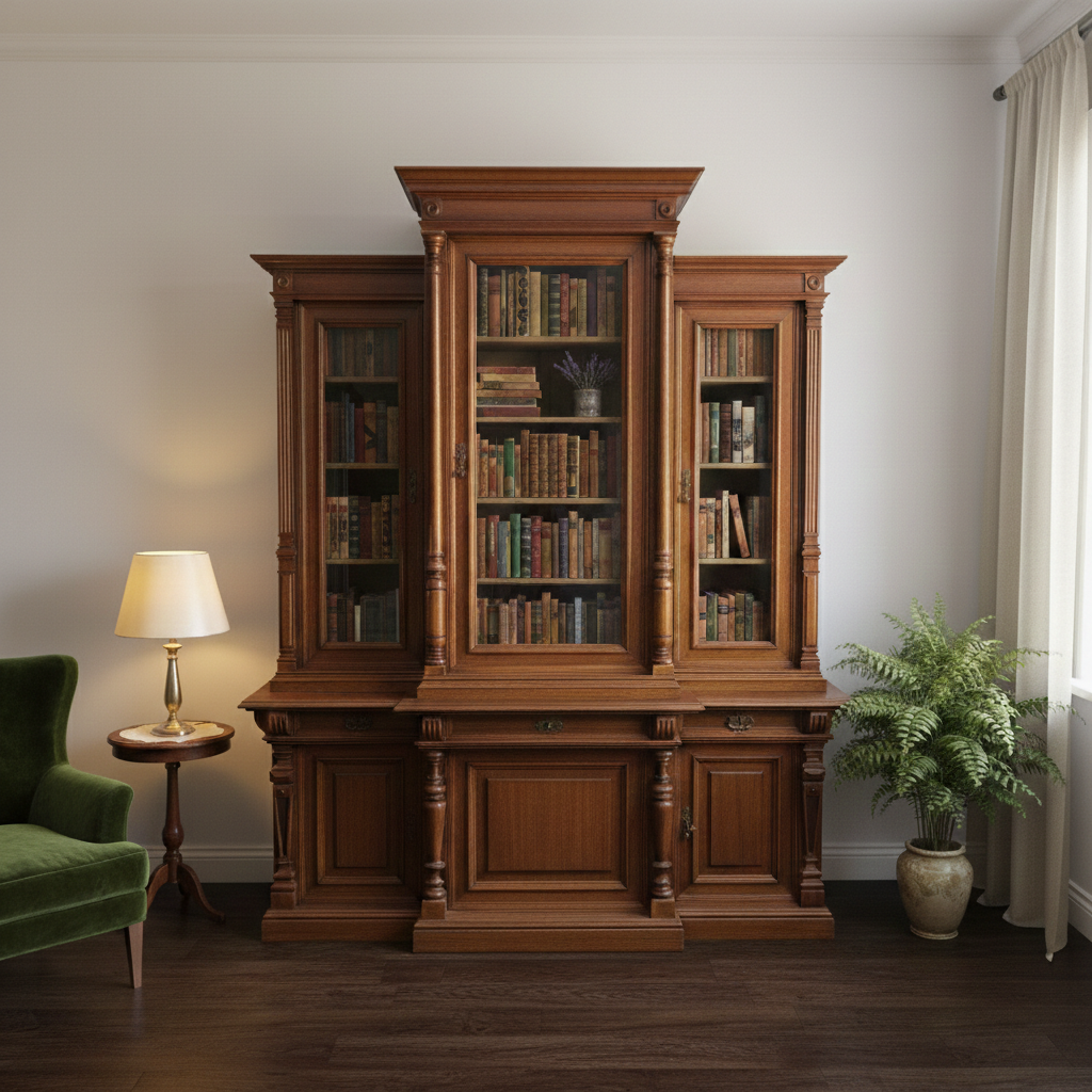 Bücherschrank Vitrine Gründerzeit 1880 Nussbaum