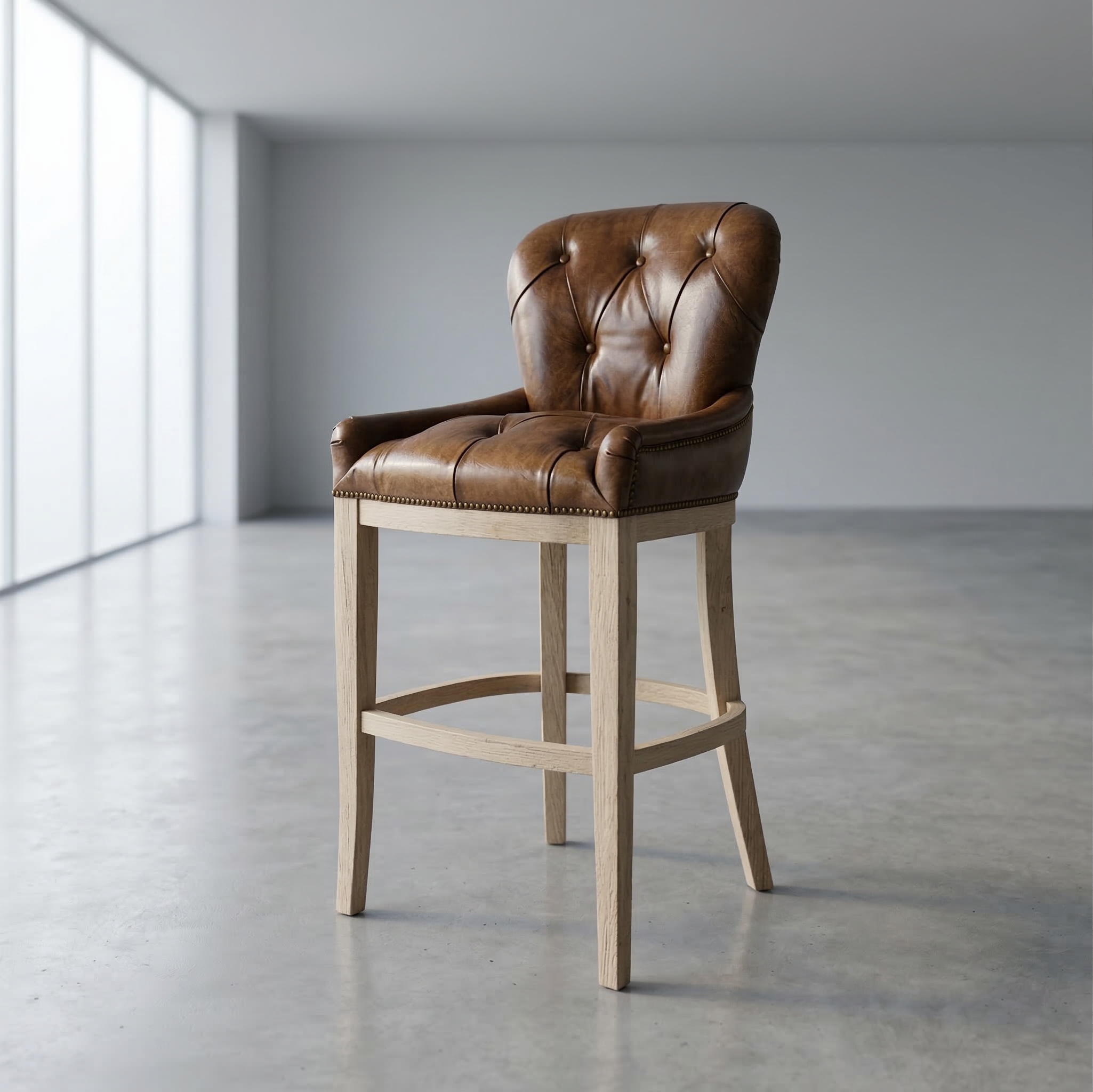 Hochwertiger Barhocker bezogen mit echtem Rindsleder nach Chesterfield Art. Sitzkomfort für höchste Ansprüche. Stückpreis.