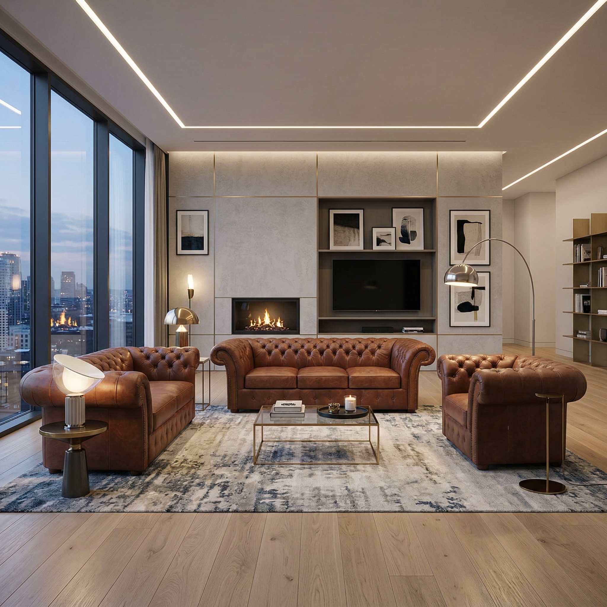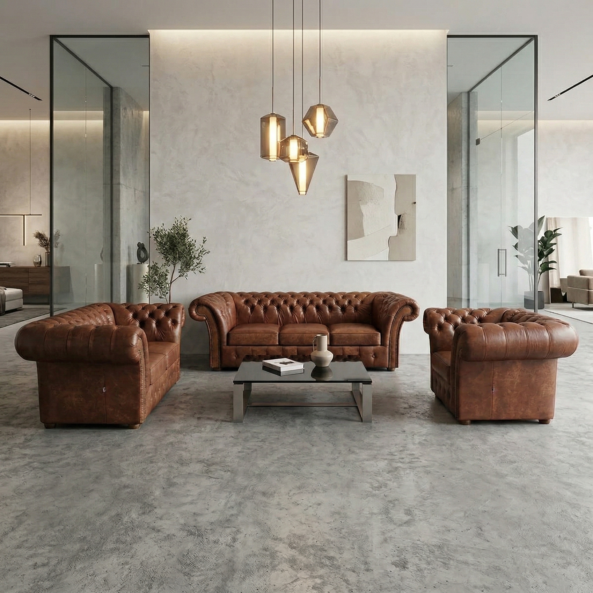 Chesterfield Couchgarnitur Antikbraun 3-2-1 Leder