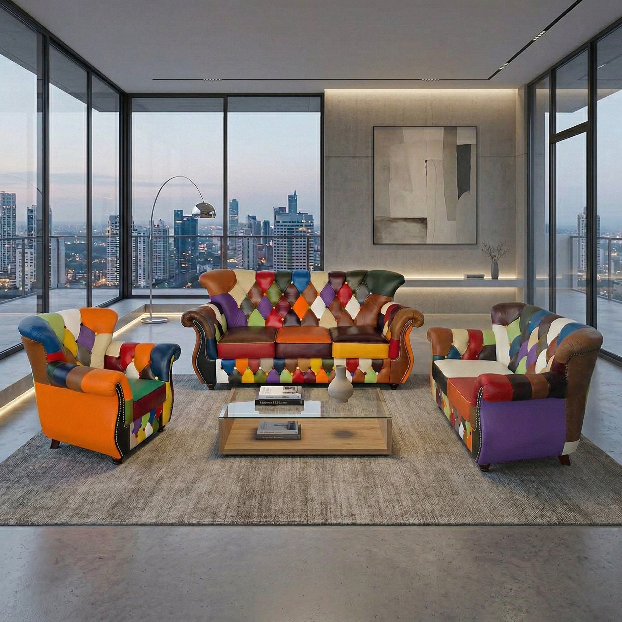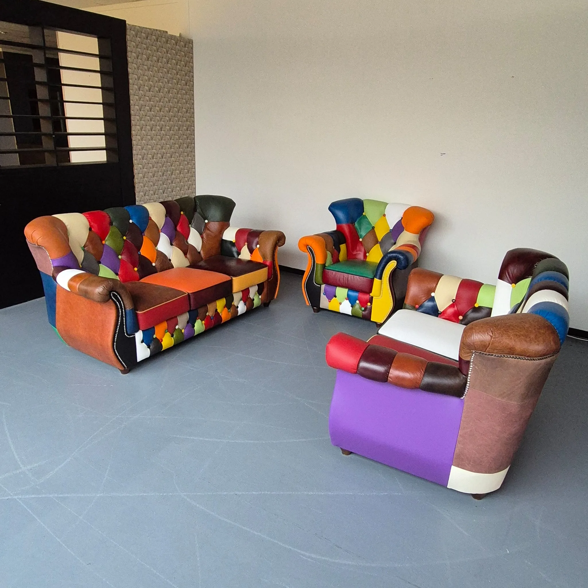 Chesterfield Couchgarnitur Modell Karneval 3-2-1 Leder