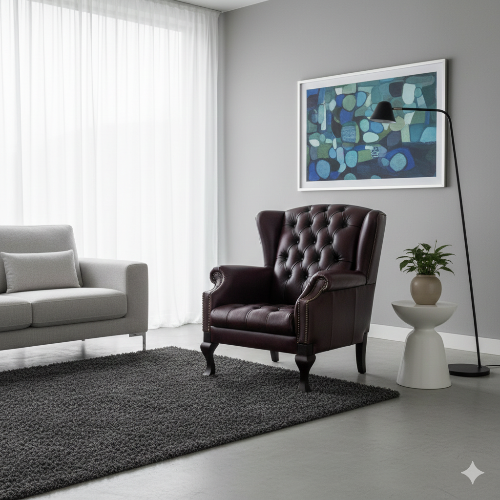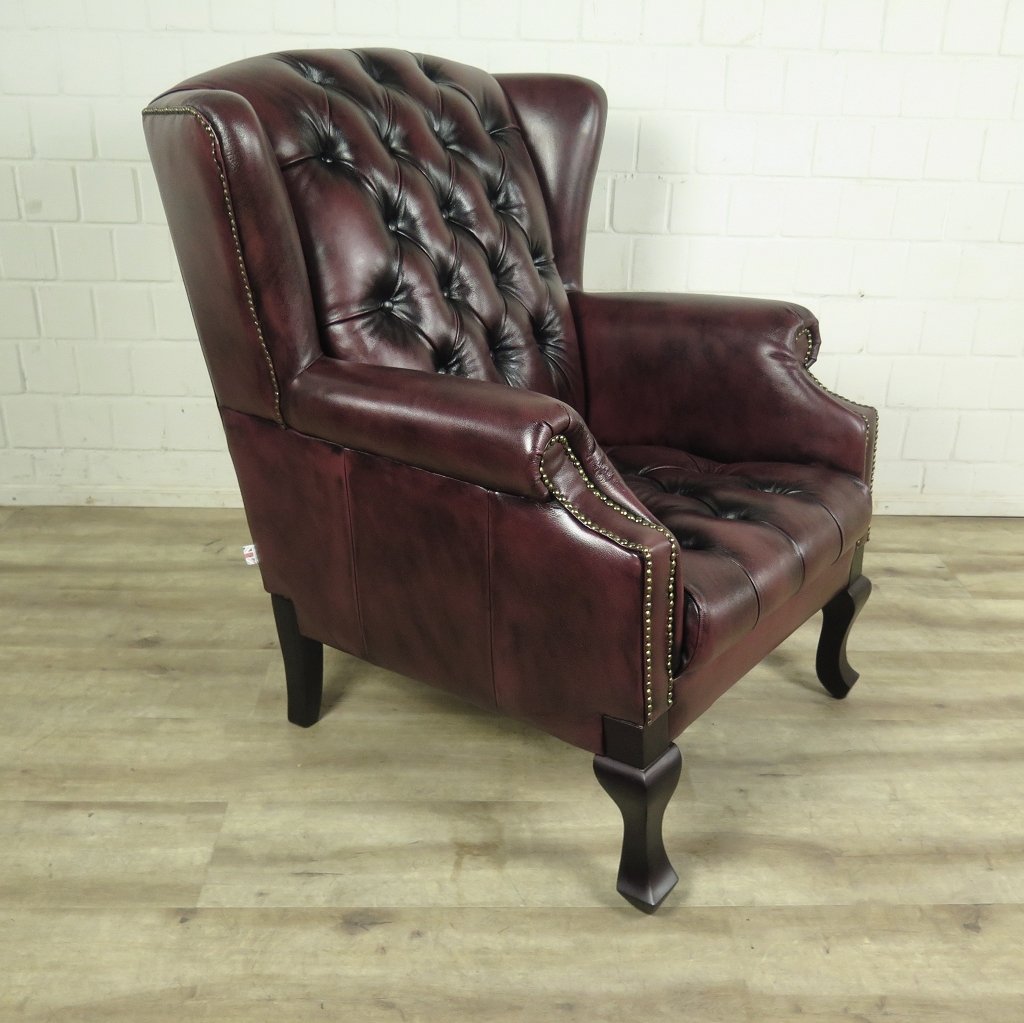 Stilvoller Chesterfield Ohrenbackensessel mit hochwertigen Bezug aus Rindsleder. Ein Sessel wie zu Großvater Zeiten. Bequem und urig zugleich. Der besondere Touch dieses Sessels ist der zeitlose, robuste Bezug. Pflegeleicht und hochwertig verarbeitet perfekt für jede Einrichtung. Gönnen Sie sich etwas Besonderes mit diesem ausgefallen Sessel!