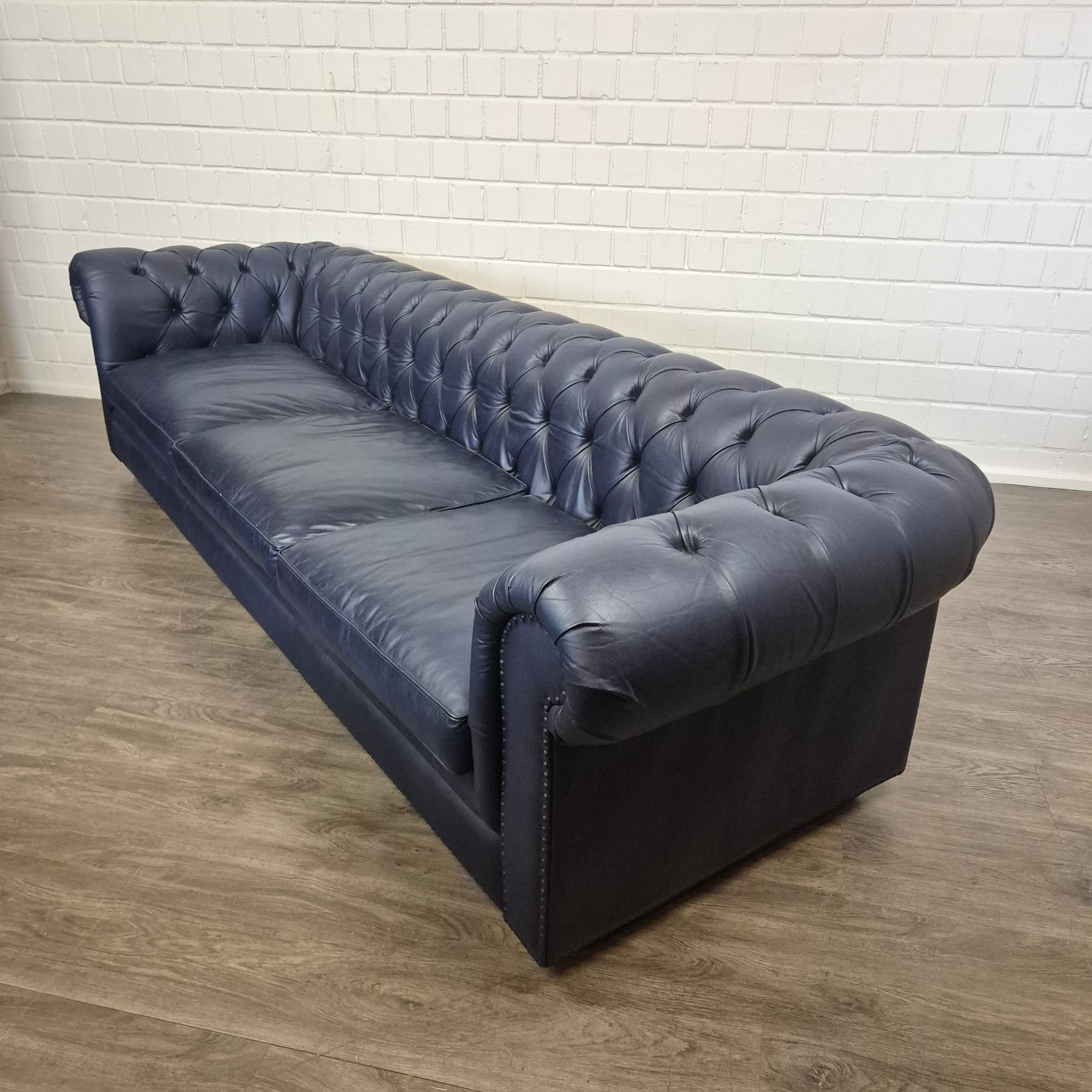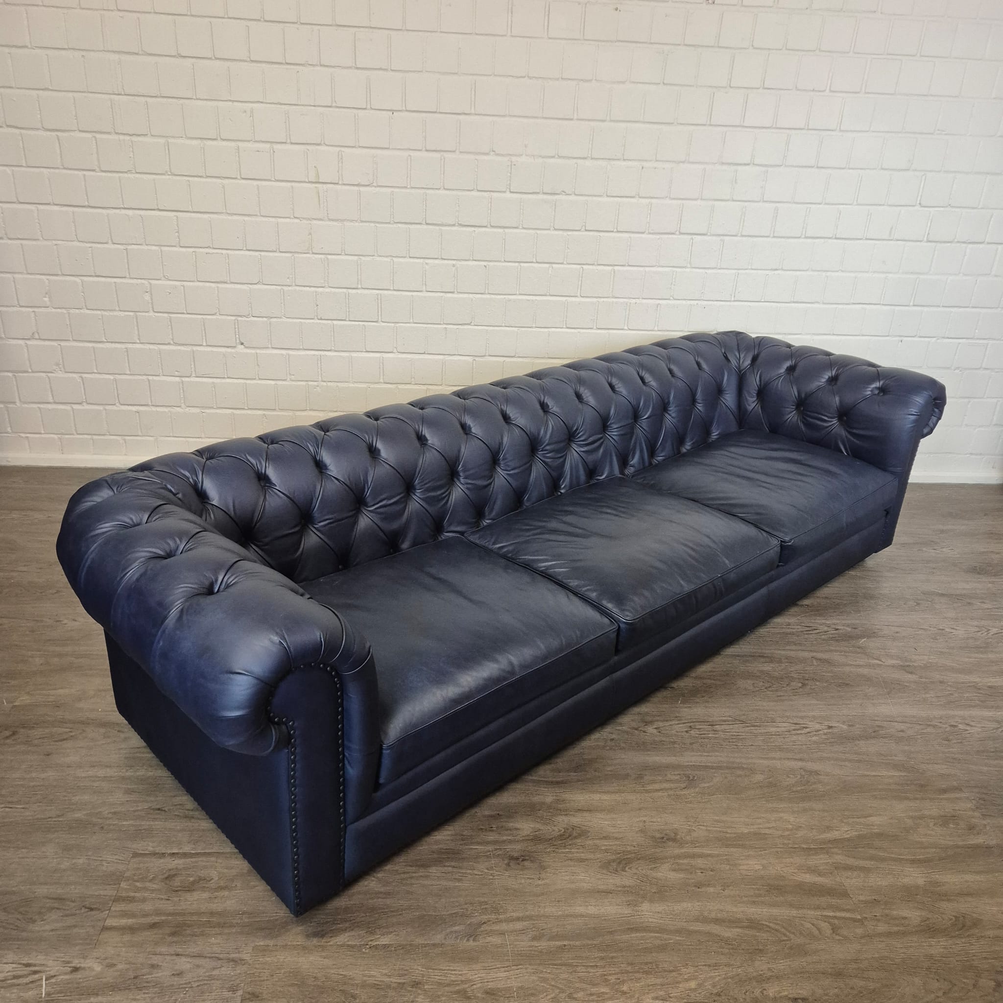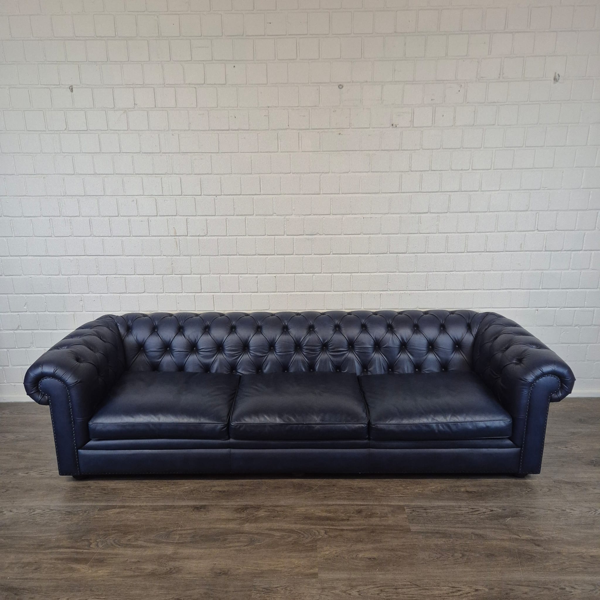 Chesterfield Sofa Couch Leder Dunkelblau 2,80 m
