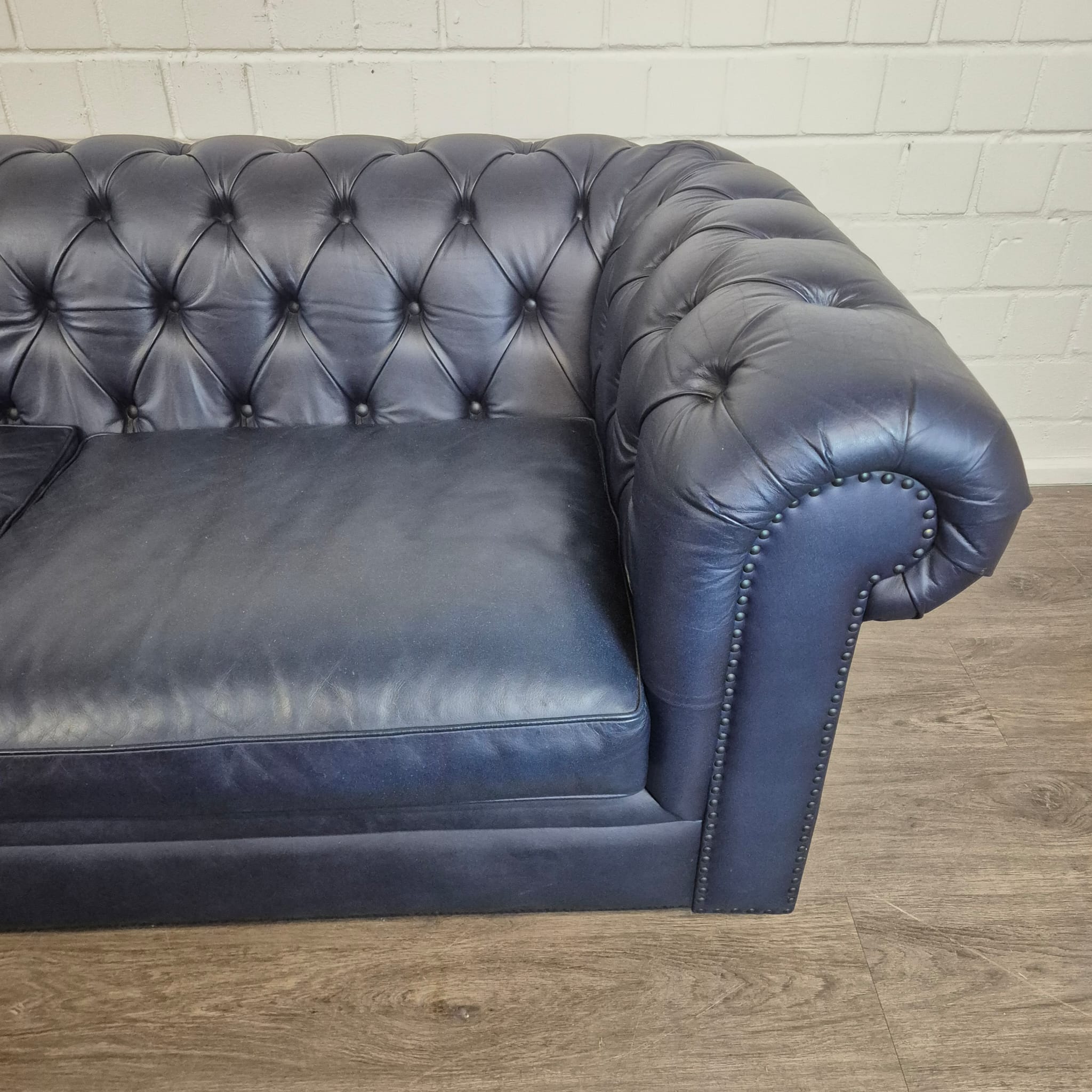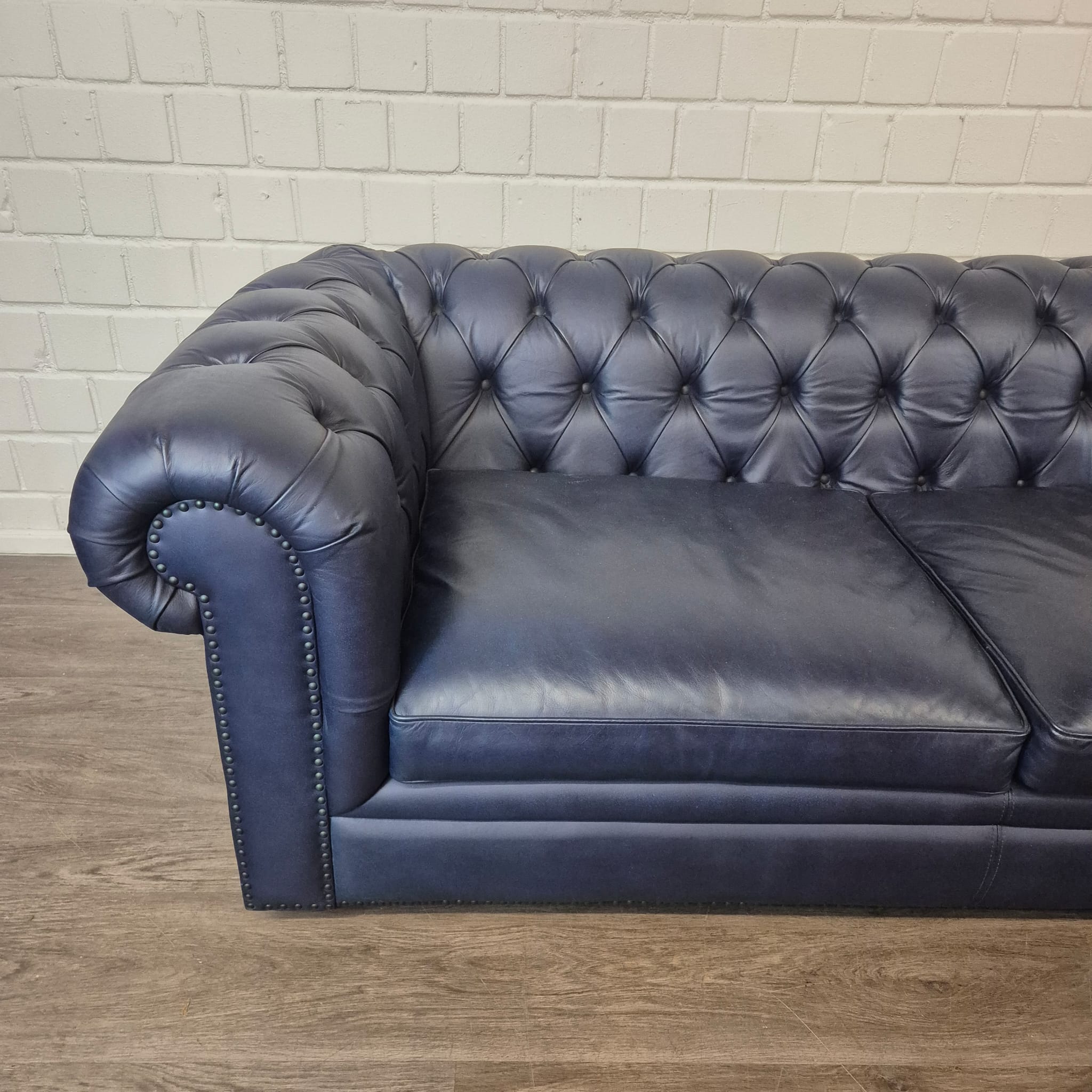 Exklusives Chesterfield Sofa – Tiefblaues Rindleder – Ausstellungsstück zum Sonderpreis