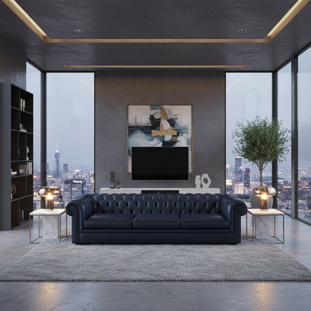 Farbe: Tiefes Dunkelblau – eine stilvolle Alternative zum klassischen Schwarz oder Braun, die sich hervorragend mit verschiedenen Einrichtungsstilen kombinieren lässt.