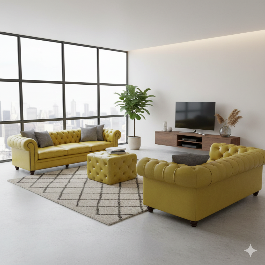 Chesterfield Sofa Couch Leder Gelb 3,20 m