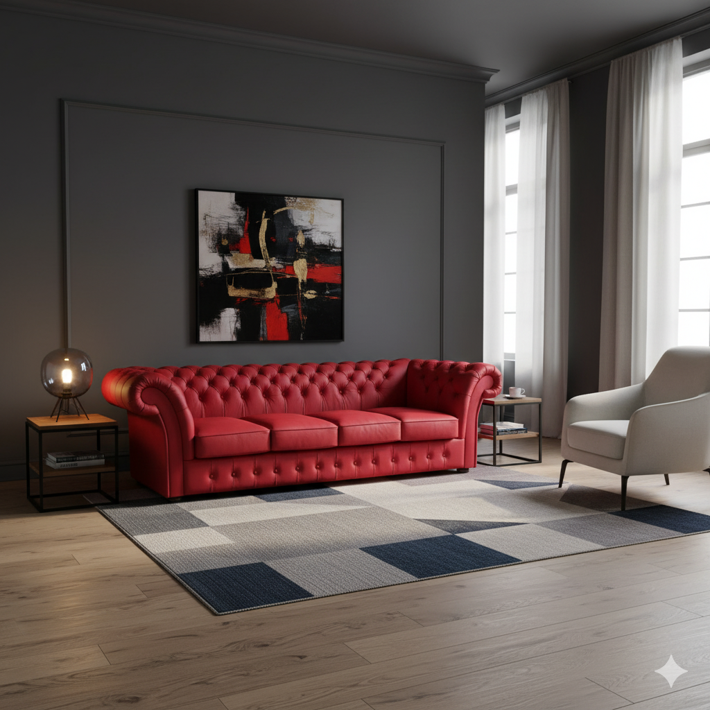 Chesterfield Sofa Couch Leder Rot 2,60 m