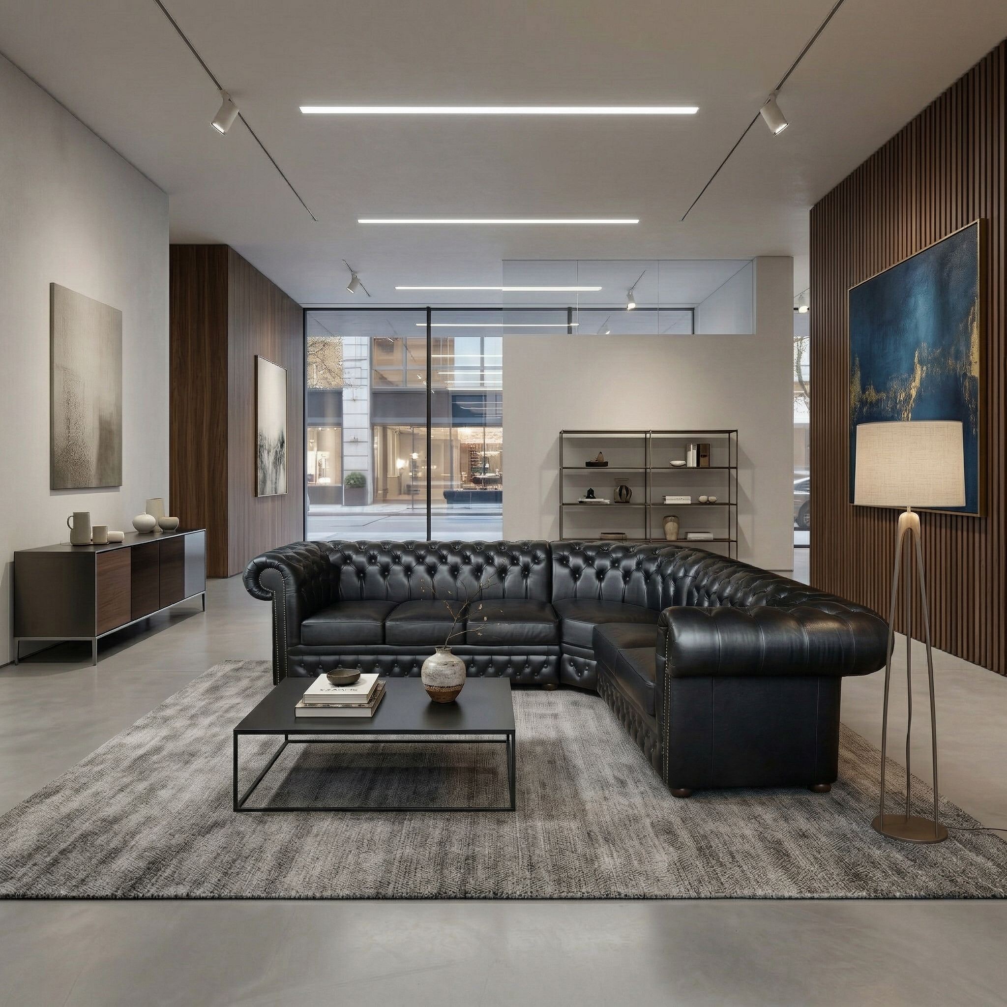 Chesterfield Sofa Ecksofa Eckcouch Leder Schwarz 3,00 m x 2,80 m
