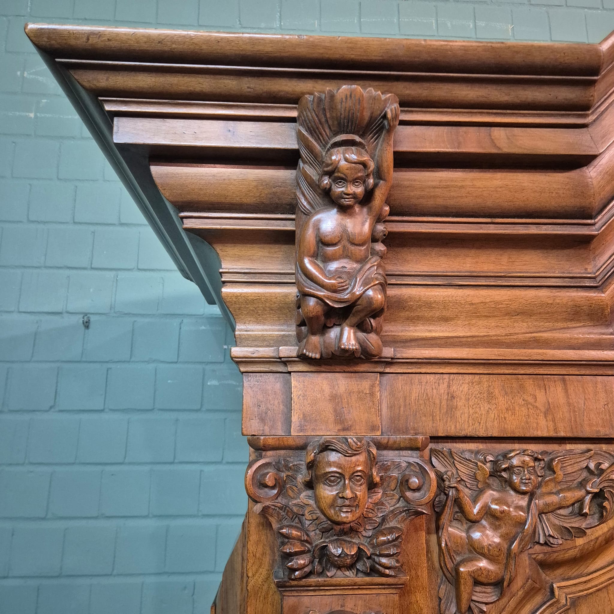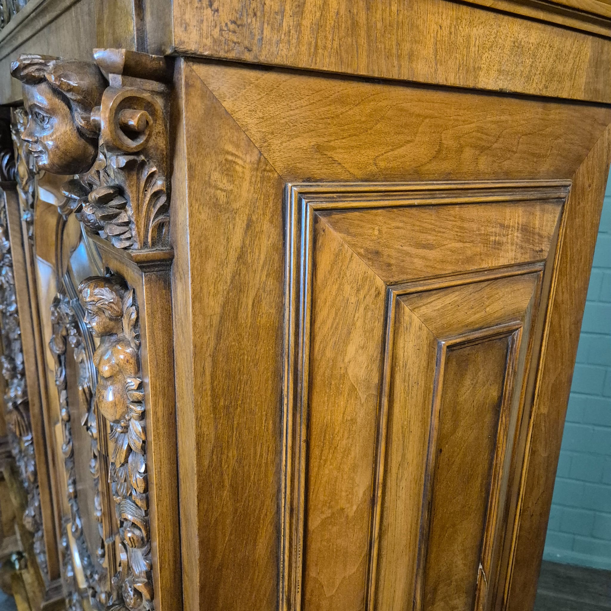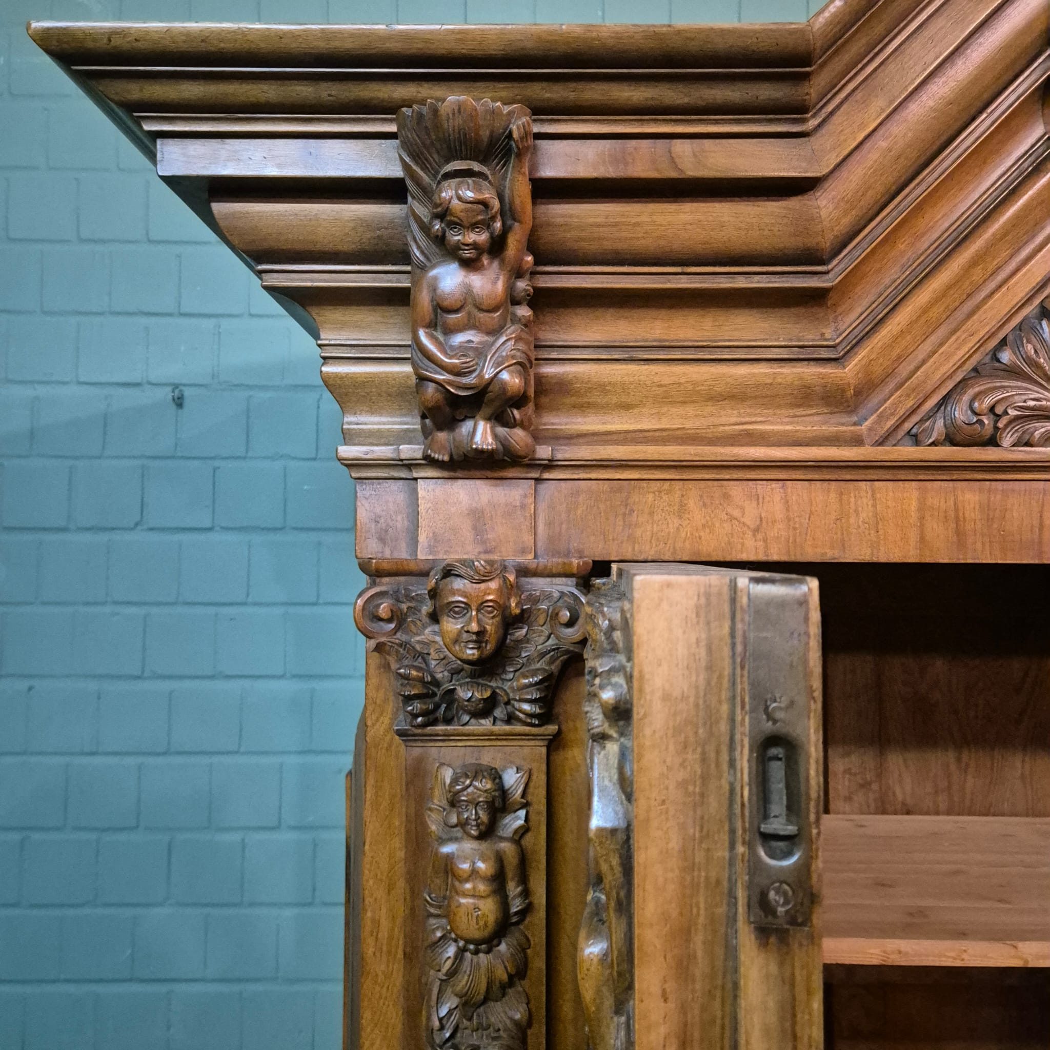 Restaurierter Historismus Danziger-Barock Kleiderschrank aus massiv und furniertem Nussbaum von ca. 1870. Der Schrank befindet sich in einem sehr guten Zustand und weist nur minimale Gebrauchsspuren auf. Zerlegbar (7-teilig).