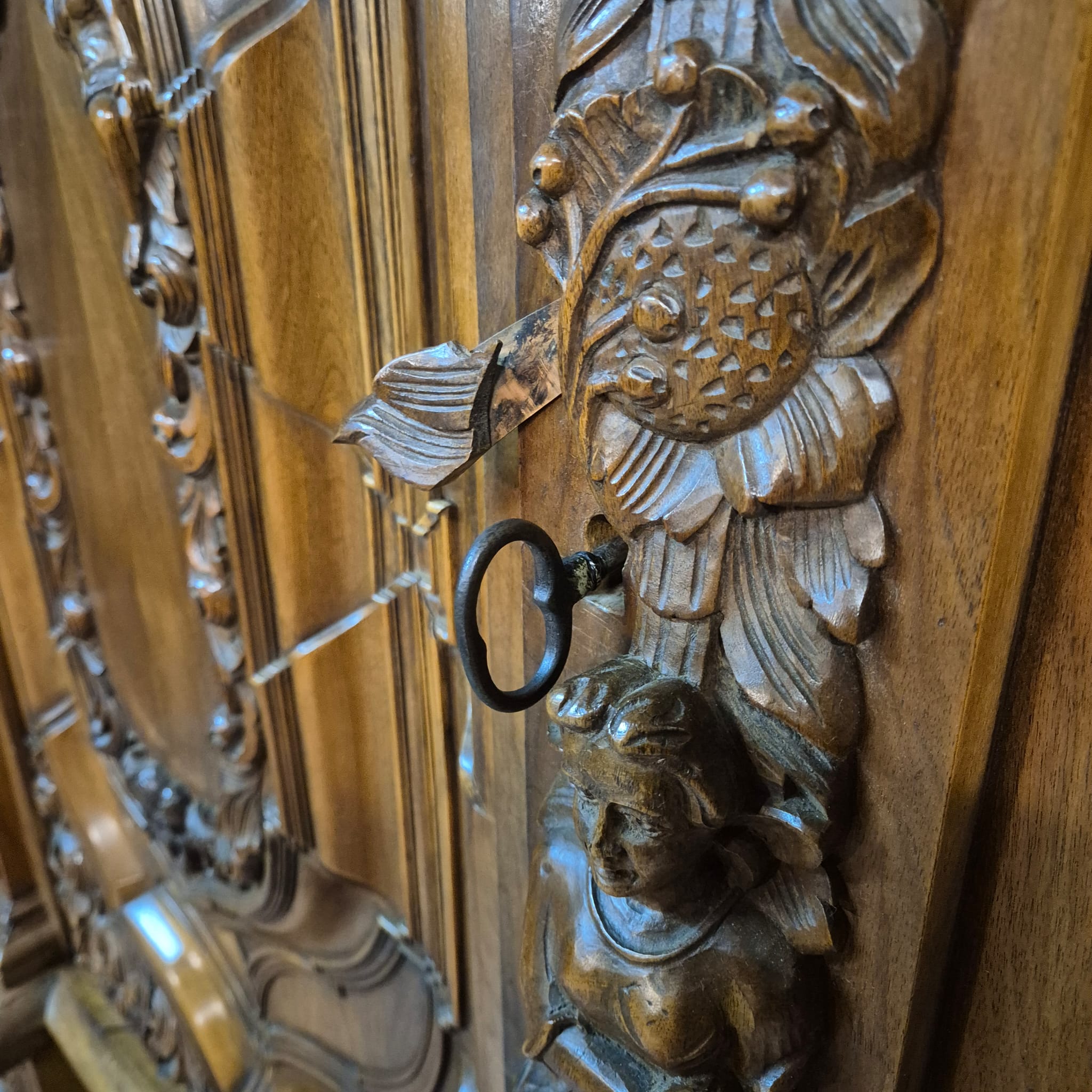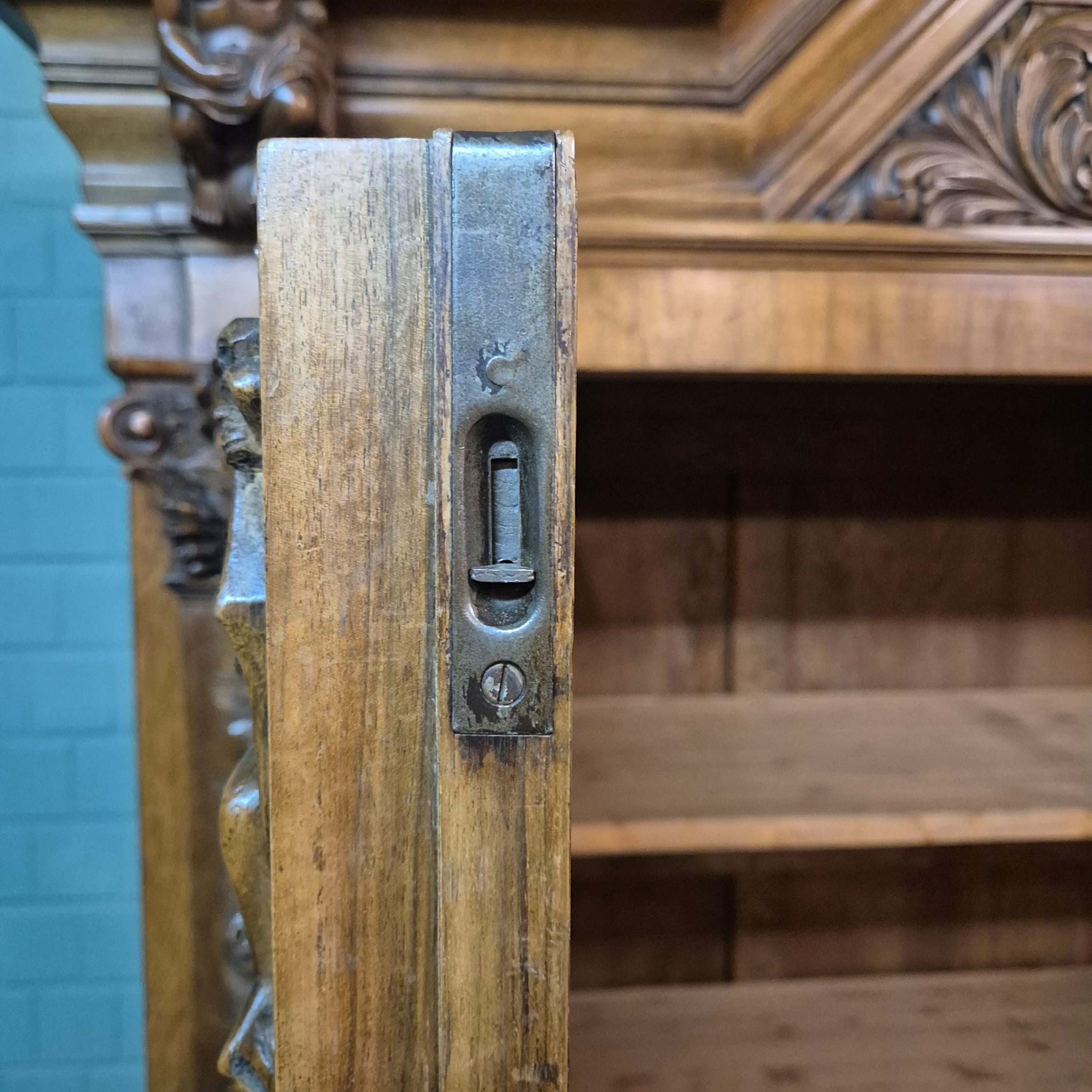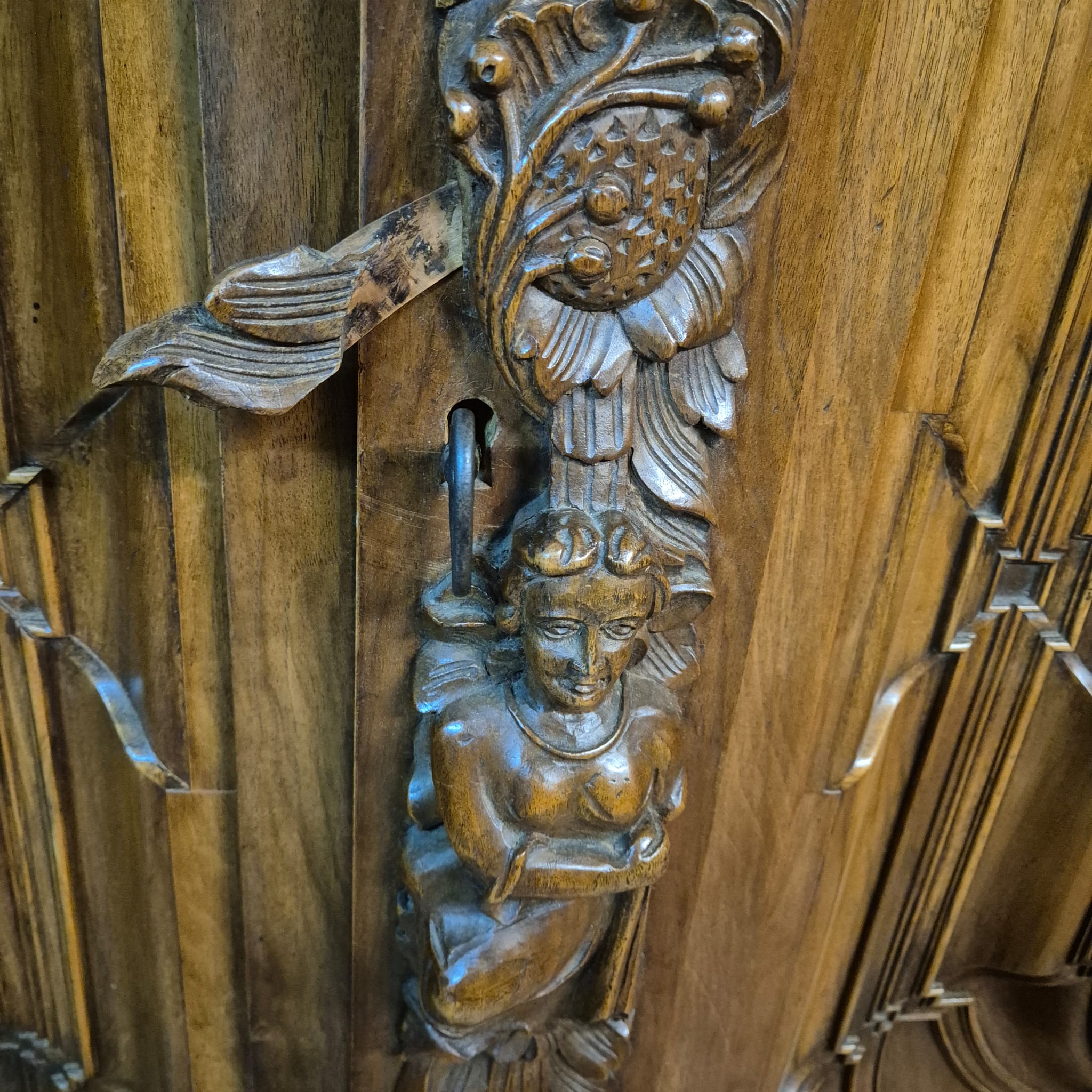 Restaurierter Historismus Danziger-Barock Kleiderschrank aus massiv und furniertem Nussbaum von ca. 1870. Der Schrank befindet sich in einem sehr guten Zustand und weist nur minimale Gebrauchsspuren auf. Zerlegbar (7-teilig).