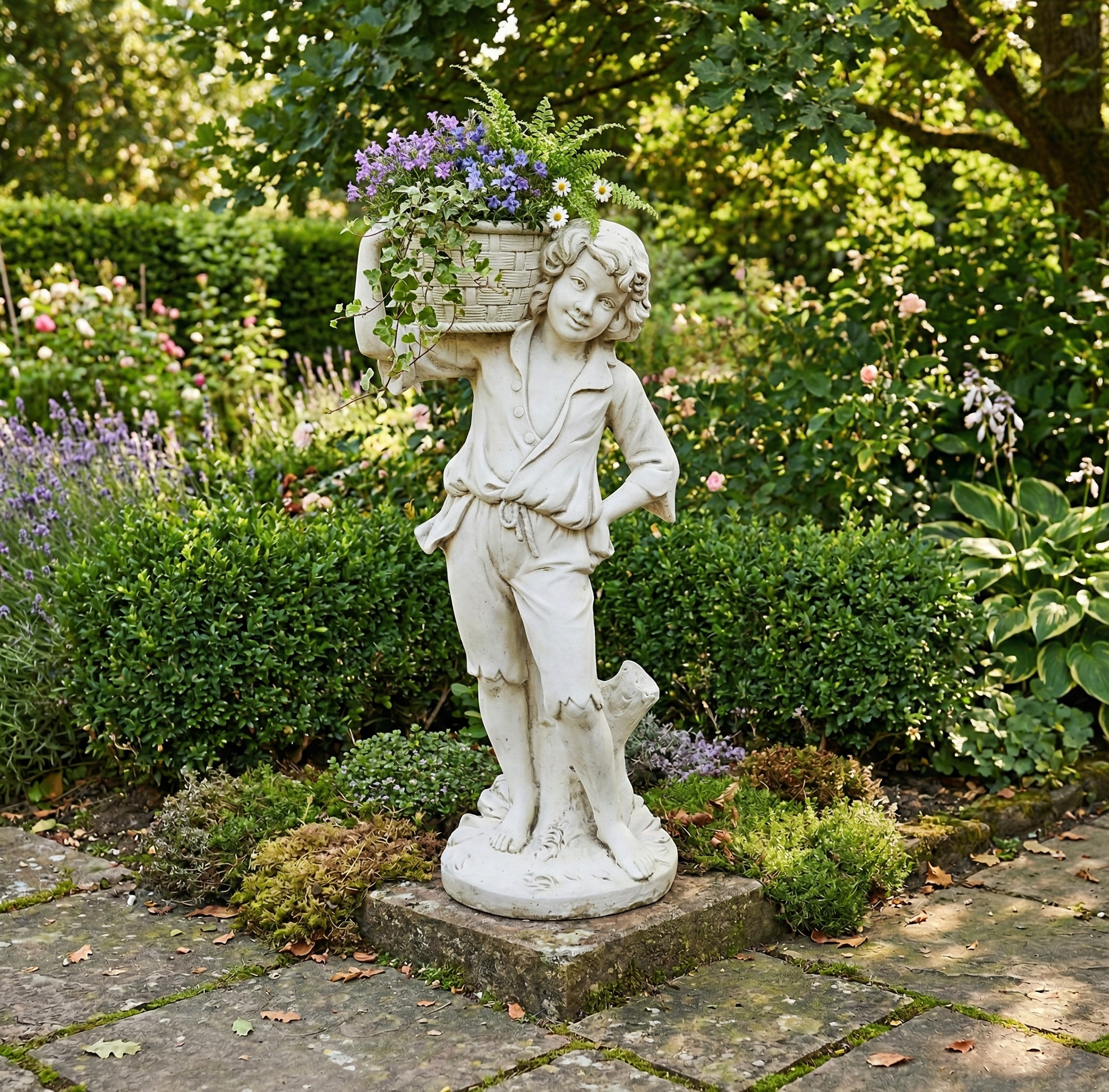 Dekoration Beton Bauernjunge mit Korb 1,10 m