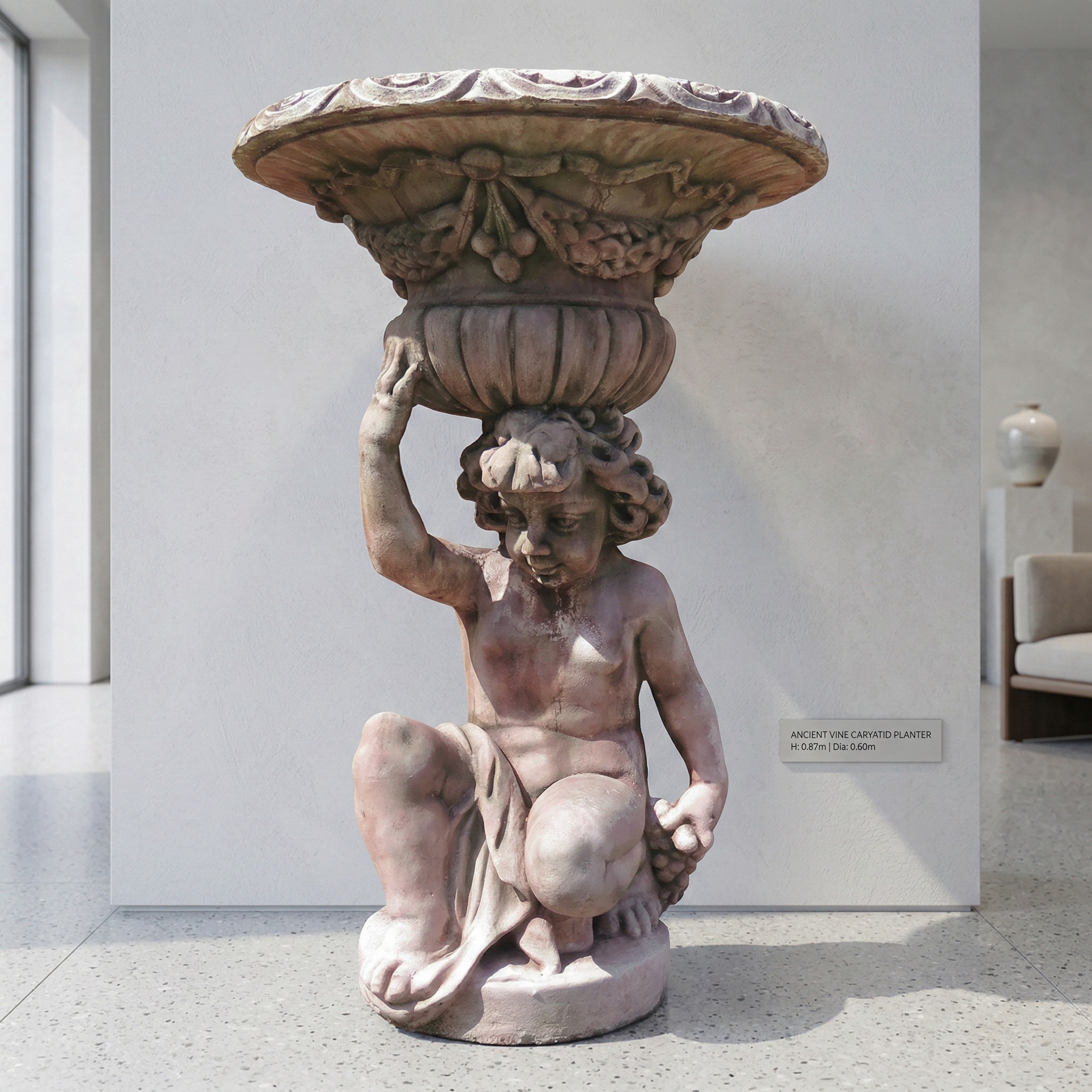 Dekoration Beton Putte mit Schale 0,87 m