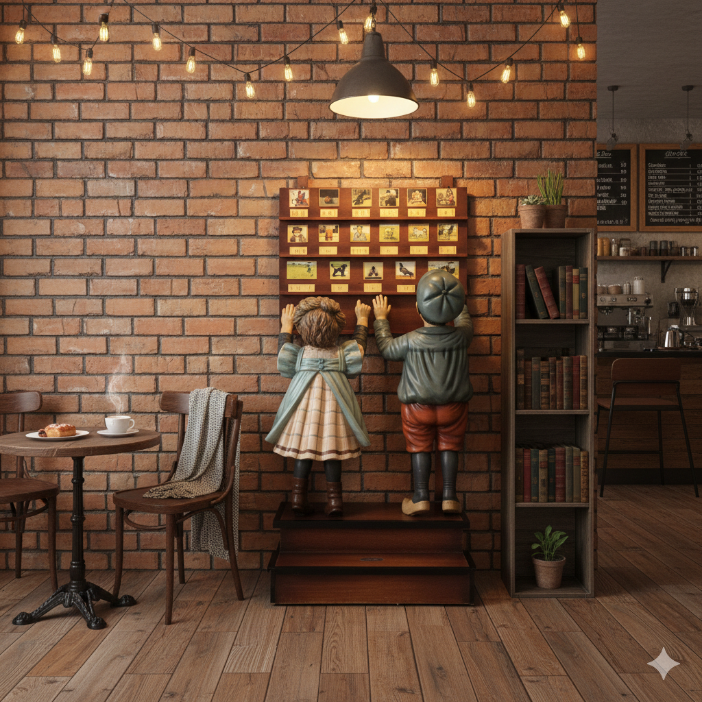 Bringen Sie ein Stück niederländischer Kinderbuchgeschichte in Ihr Heim mit dieser liebenswerten Dekorationsfigur im Stil von "Ot en Sien" von 1905. Diese Szene fängt auf charmante Weise die unschuldige Welt der bekannten Charaktere ein und versprüht einen Hauch von Nostalgie und Gemütlichkeit.