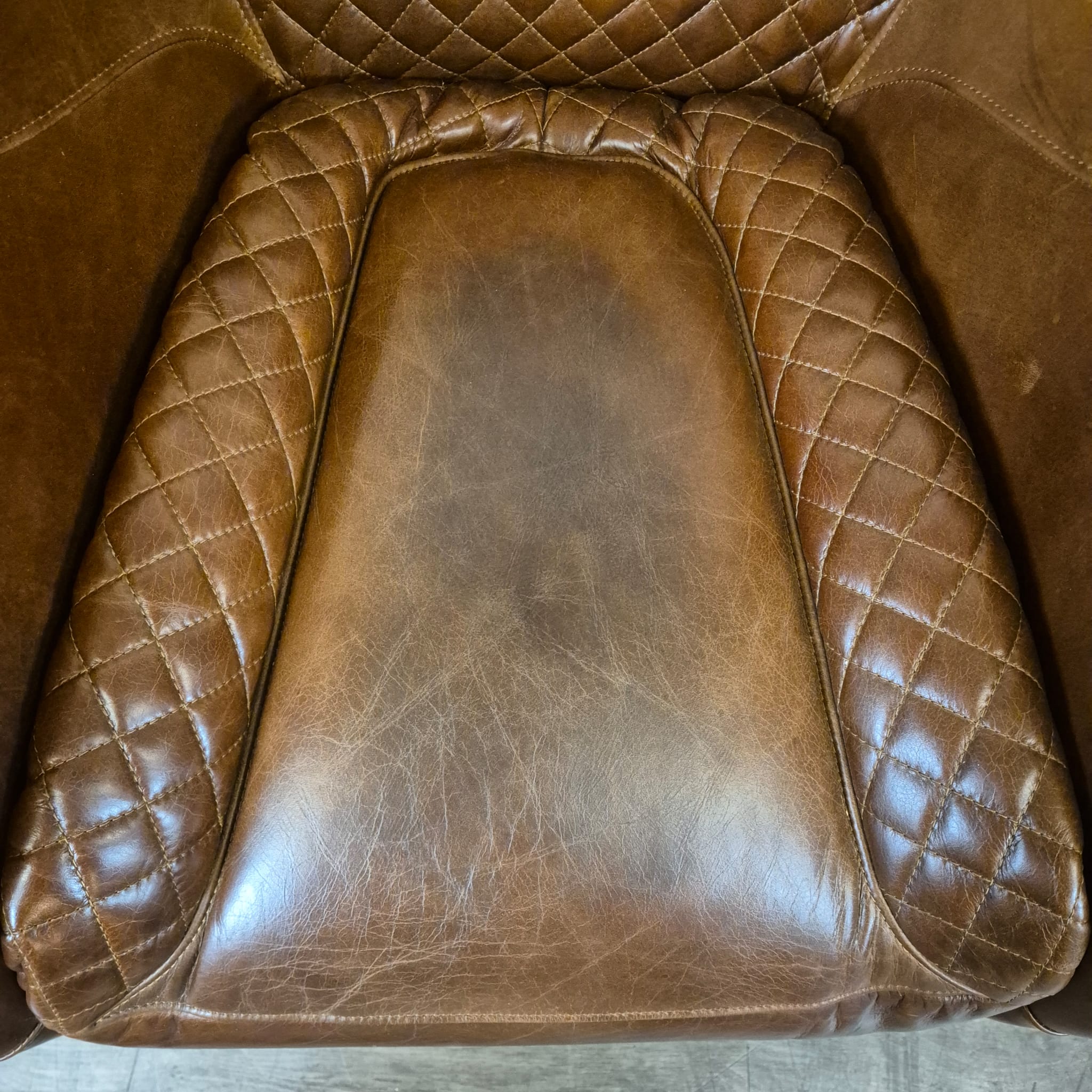 Edles Rindsleder: Die Sitzfläche und Frontpartie sind mit luxuriösem, strapazierfähigem Rindsleder bezogen, das mit einer stilvollen, gesteppten Rautenstruktur veredelt ist. Das warme Braun des Leders entwickelt mit der Zeit eine wunderschöne Patina.