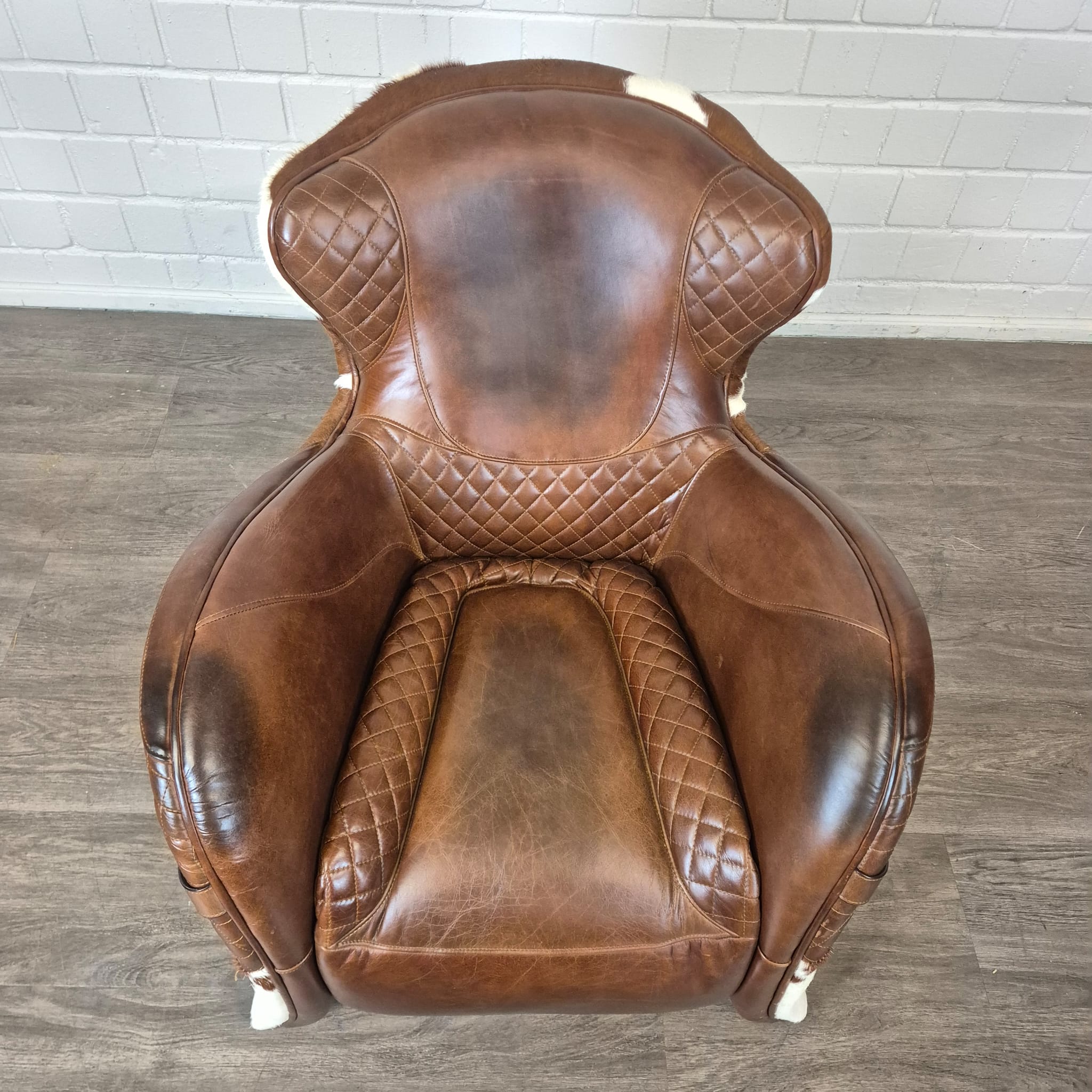 Dieser außergewöhnliche Sessel ist ein wahres Statement-Piece, das hochwertiges Leder mit rustikalem Charme verbindet. Er bietet nicht nur höchsten Sitzkomfort, sondern setzt auch einzigartige, luxuriöse Akzente in jedem Wohnraum.