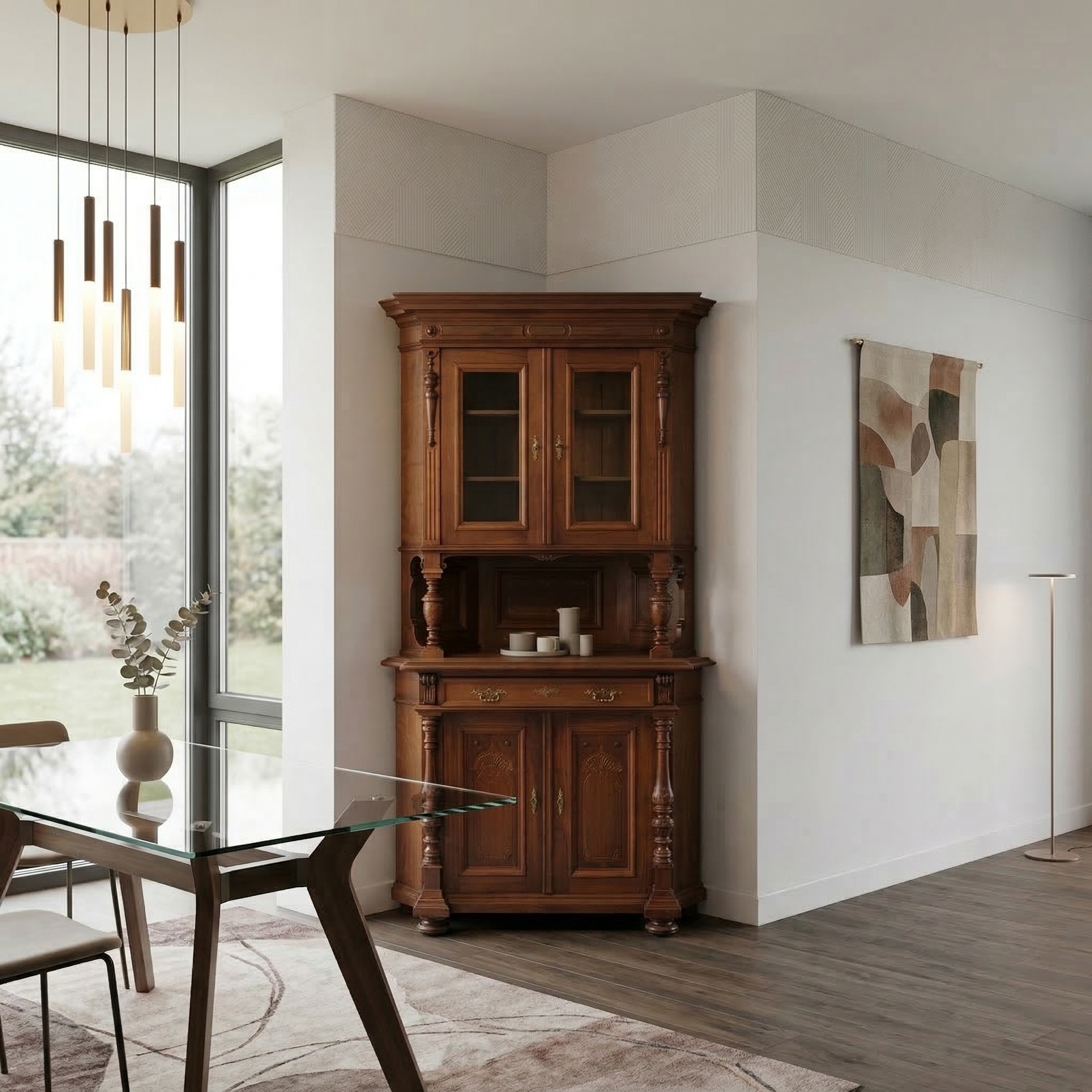 Eckschrank Eckbuffet Gründerzeit 1880 Nussbaum