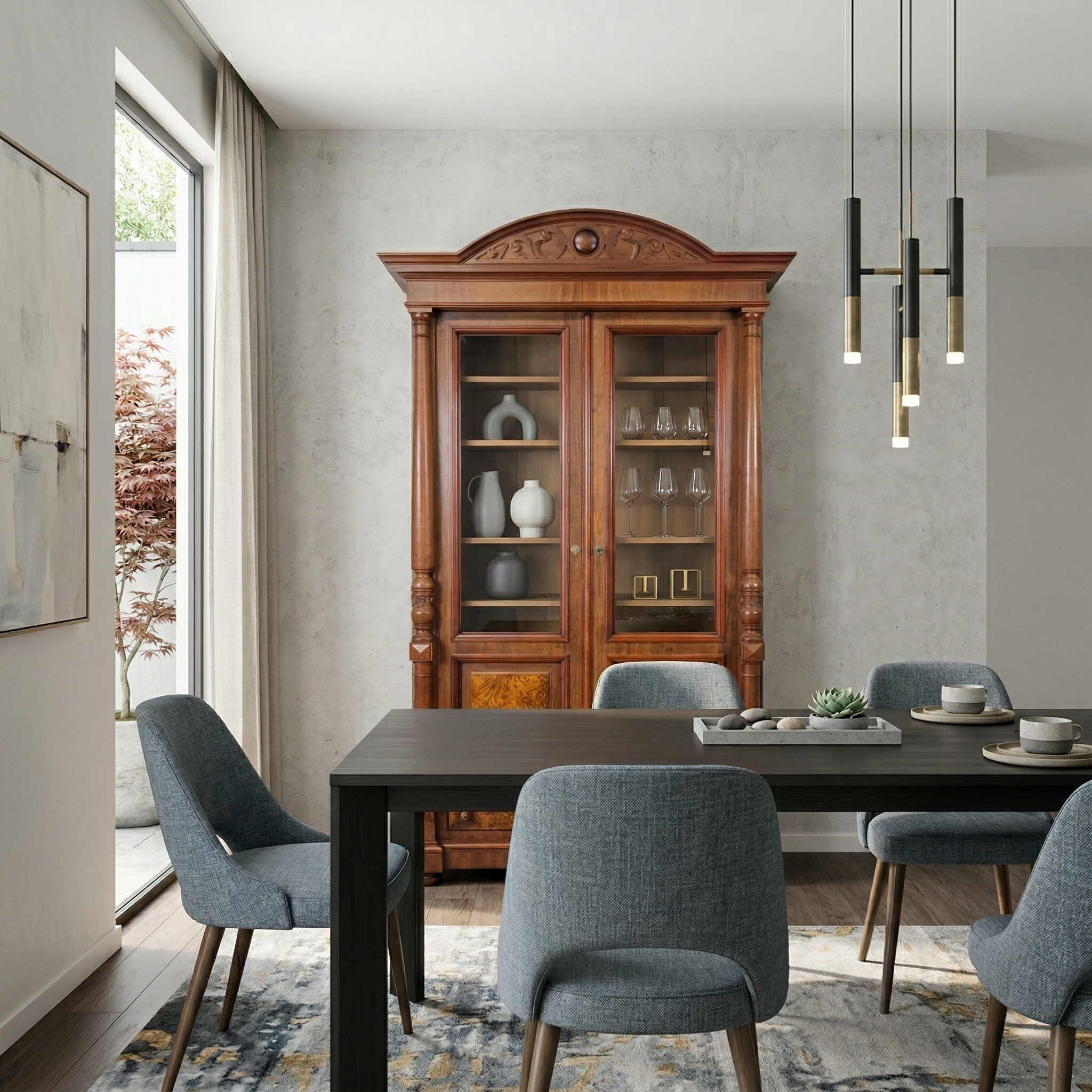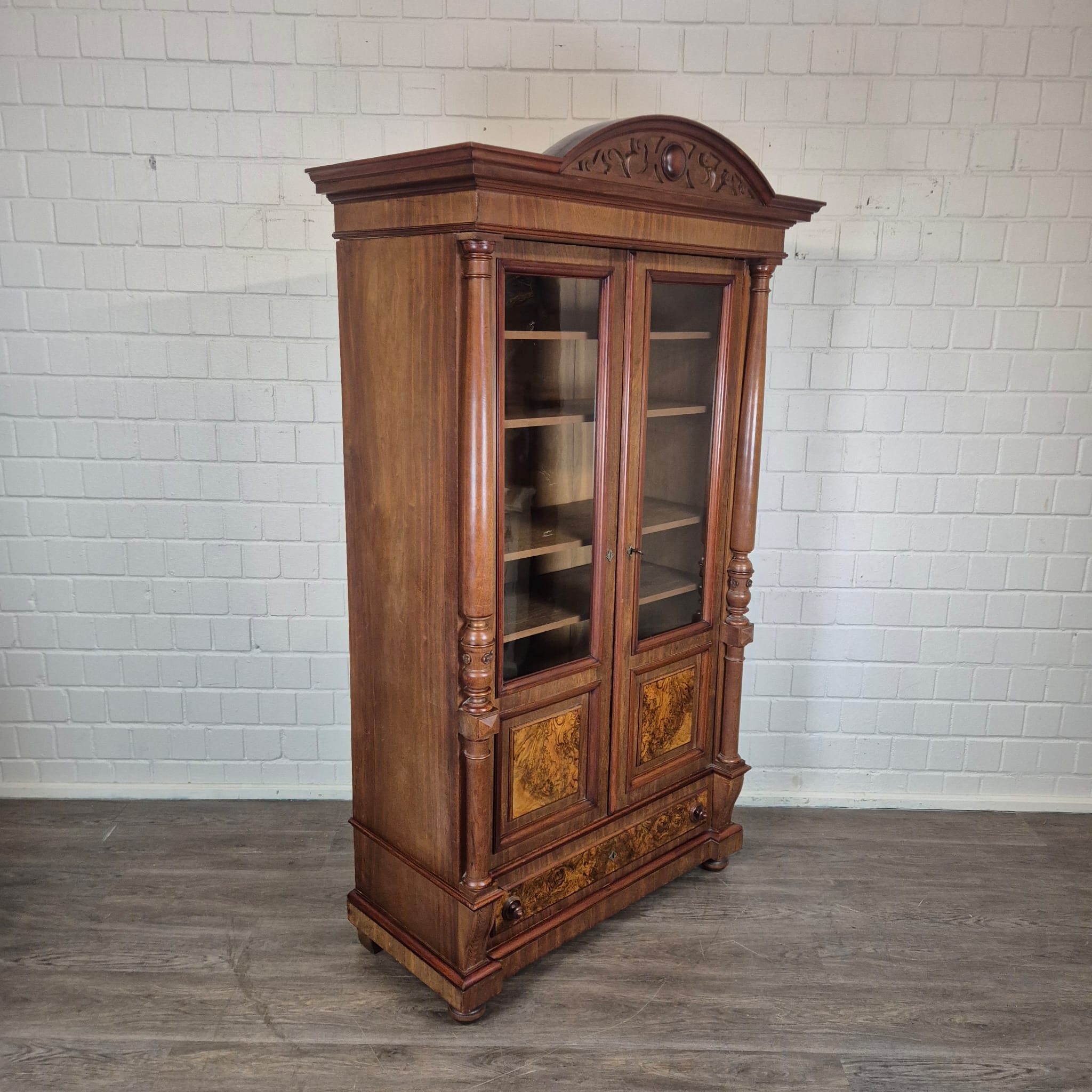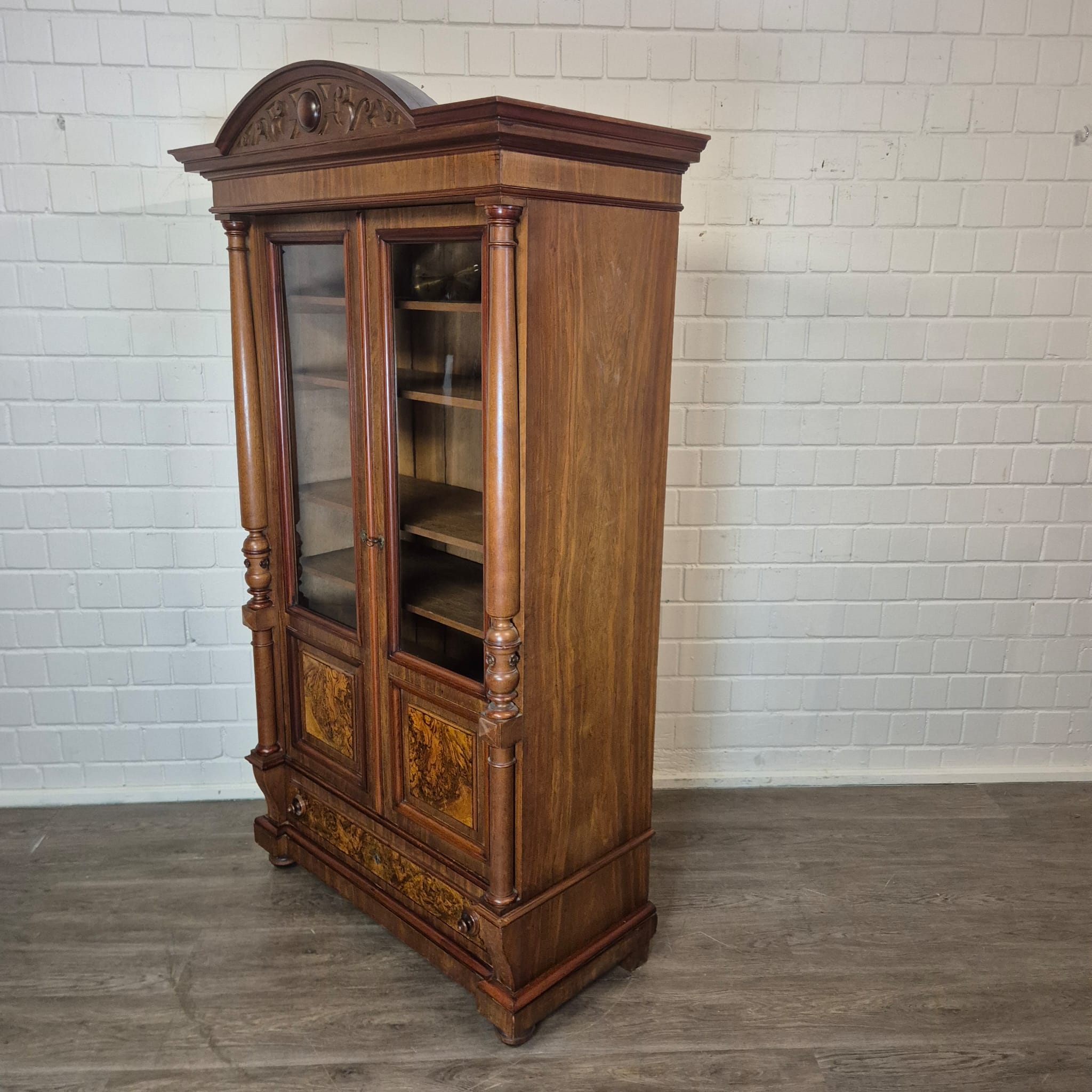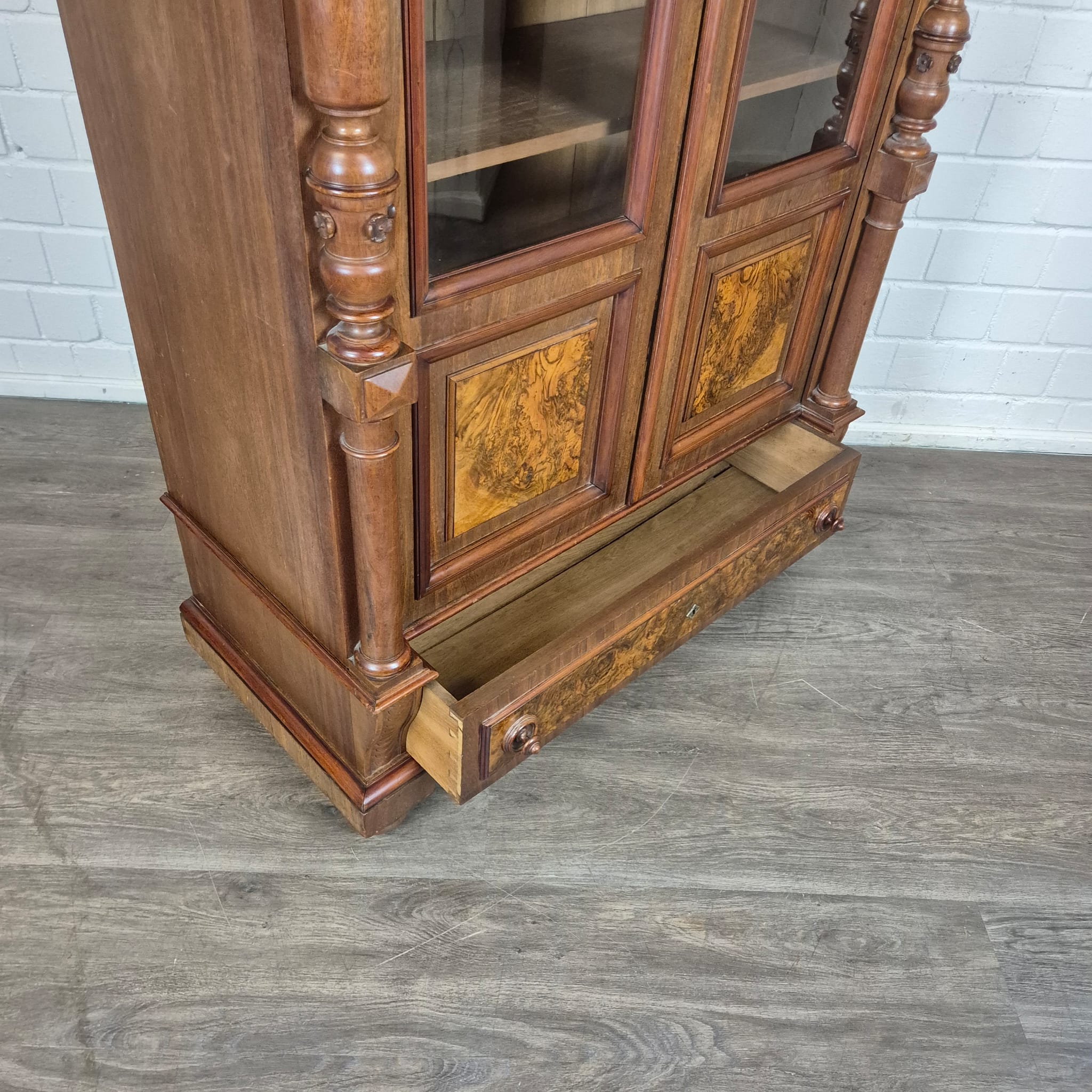 Geschirrschrank Vitrine Gründerzeit 1880 Nussbaum