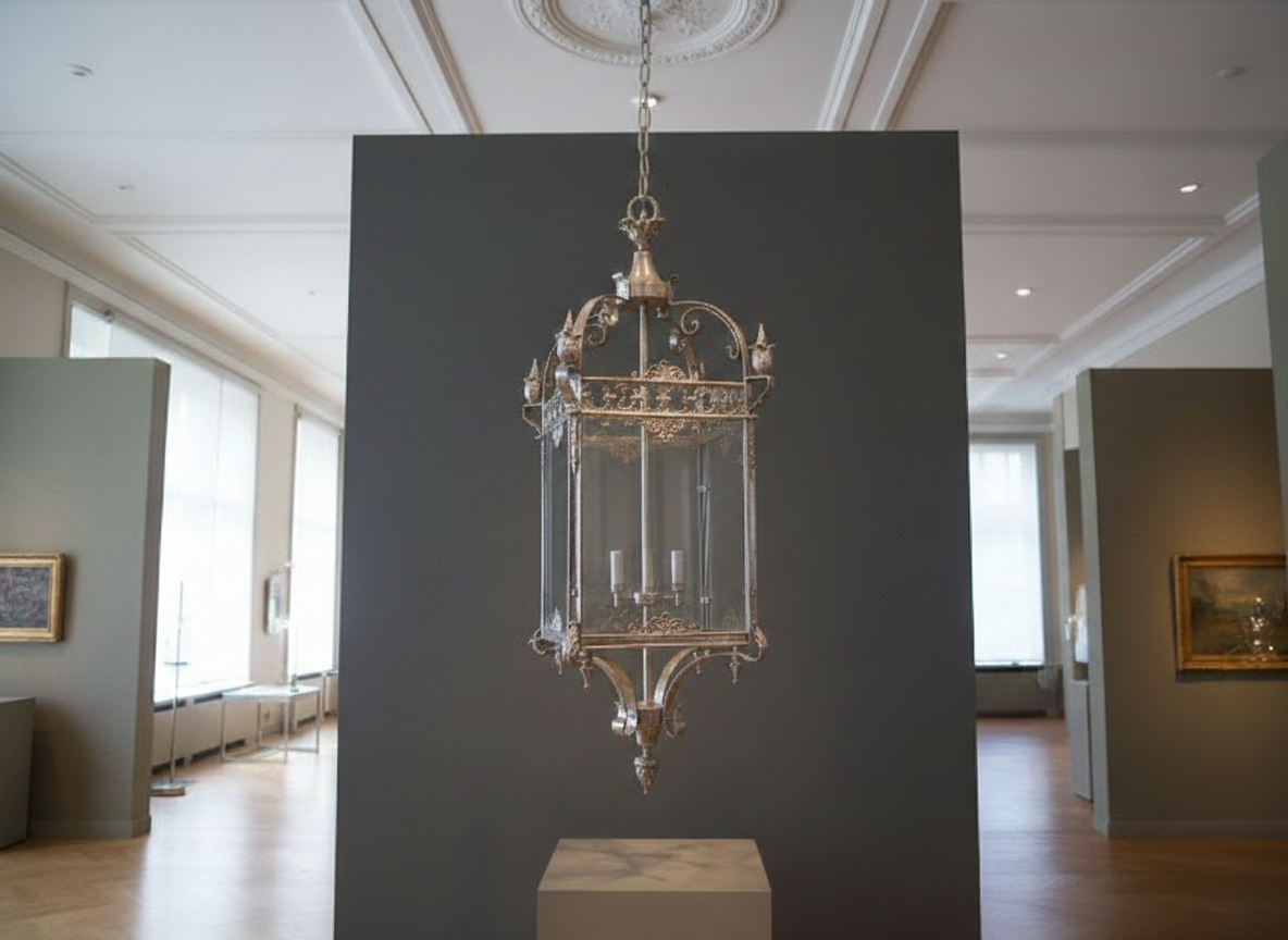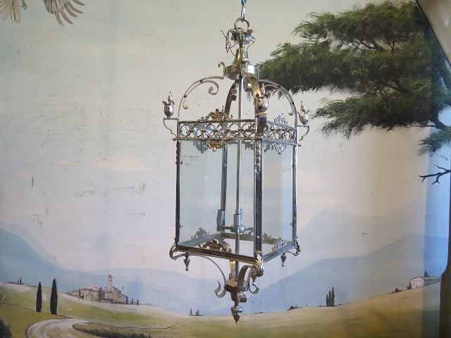 Formschöne Lampe in nostalgischer Optik. Hergestellt aus Eisen mit Glas.