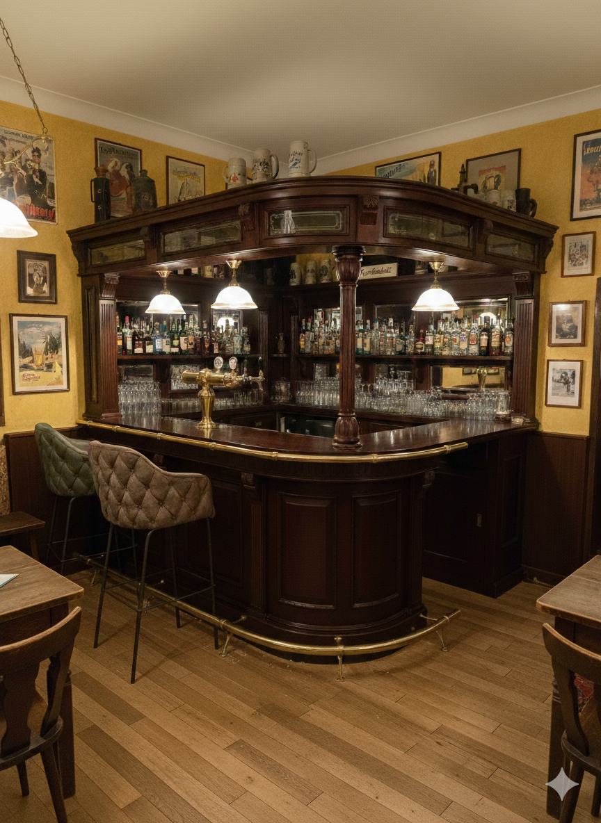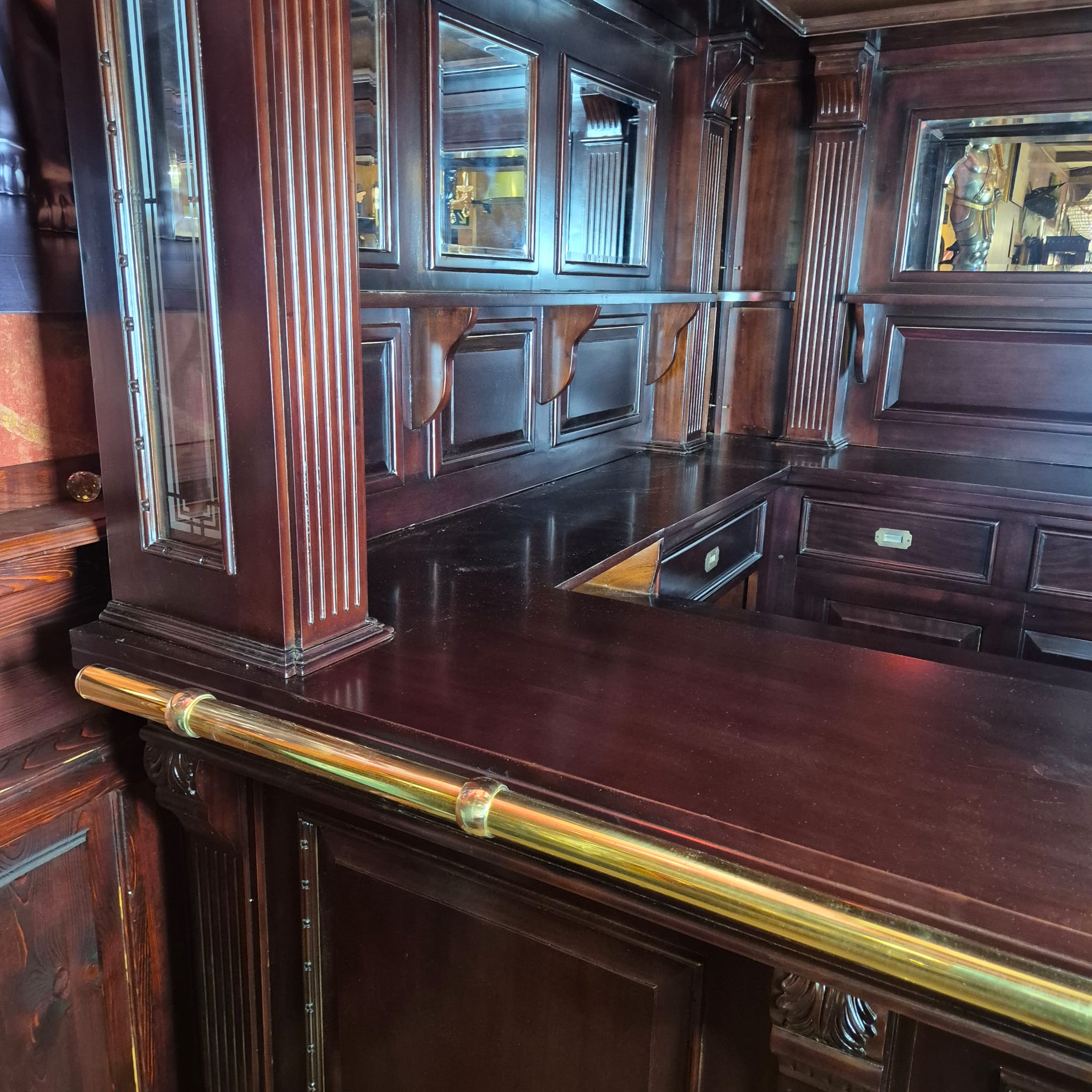 Hausbar Eckbar Theke Mahagoni 2,55 m