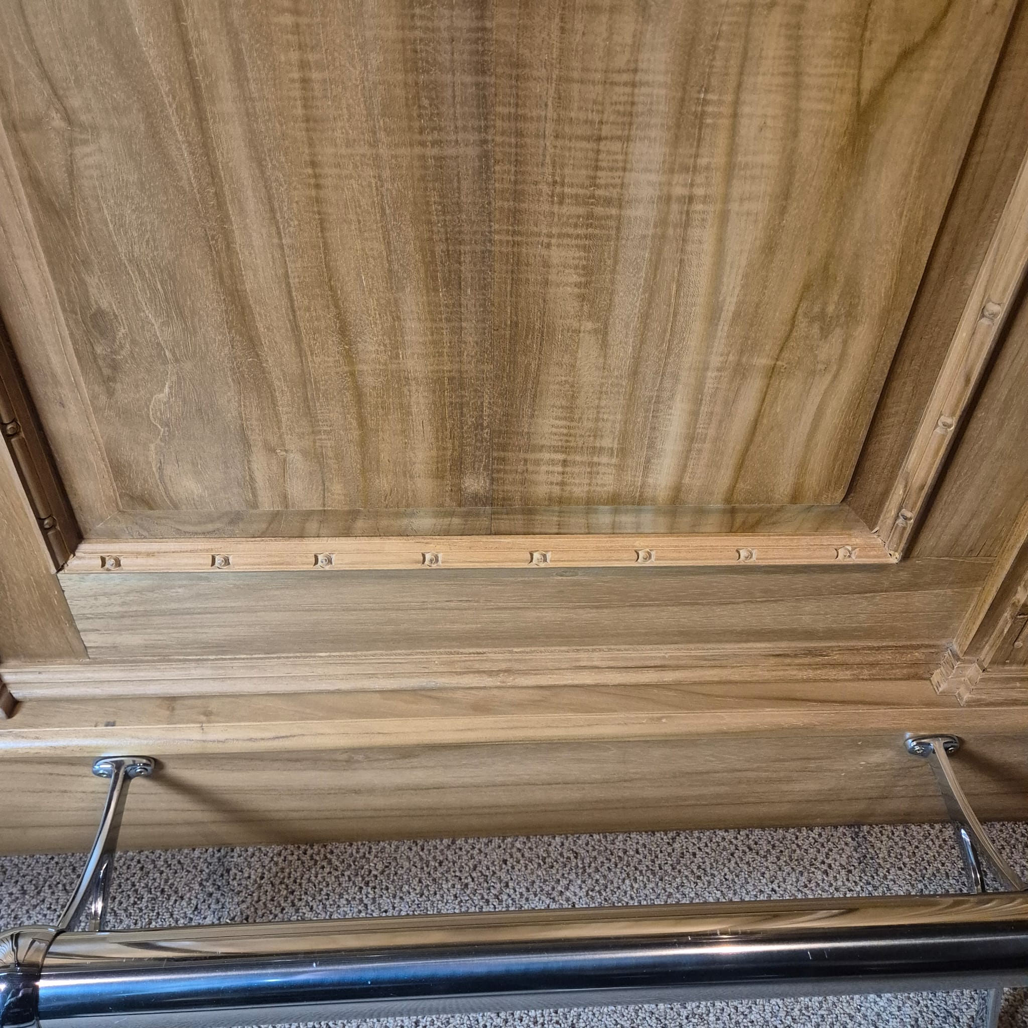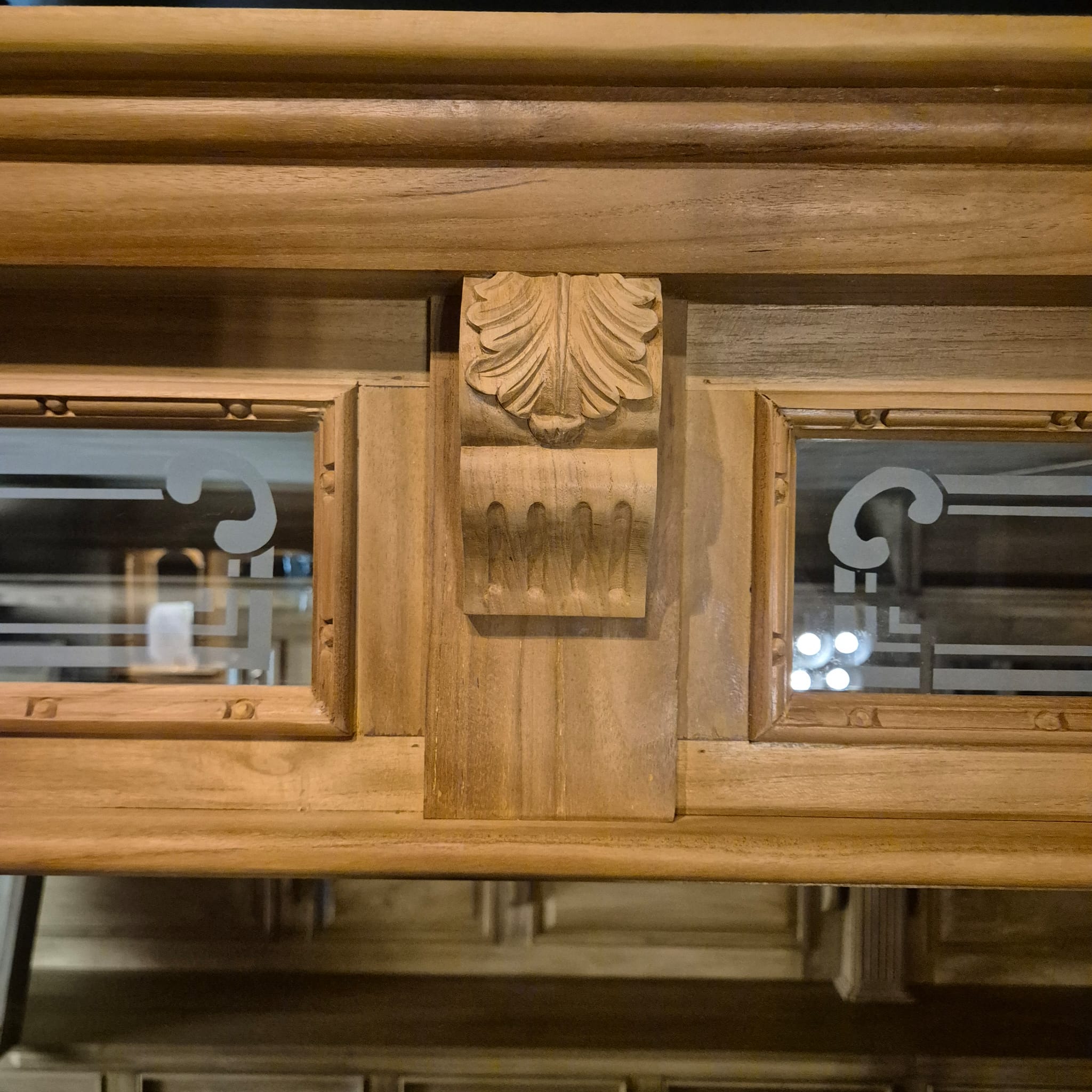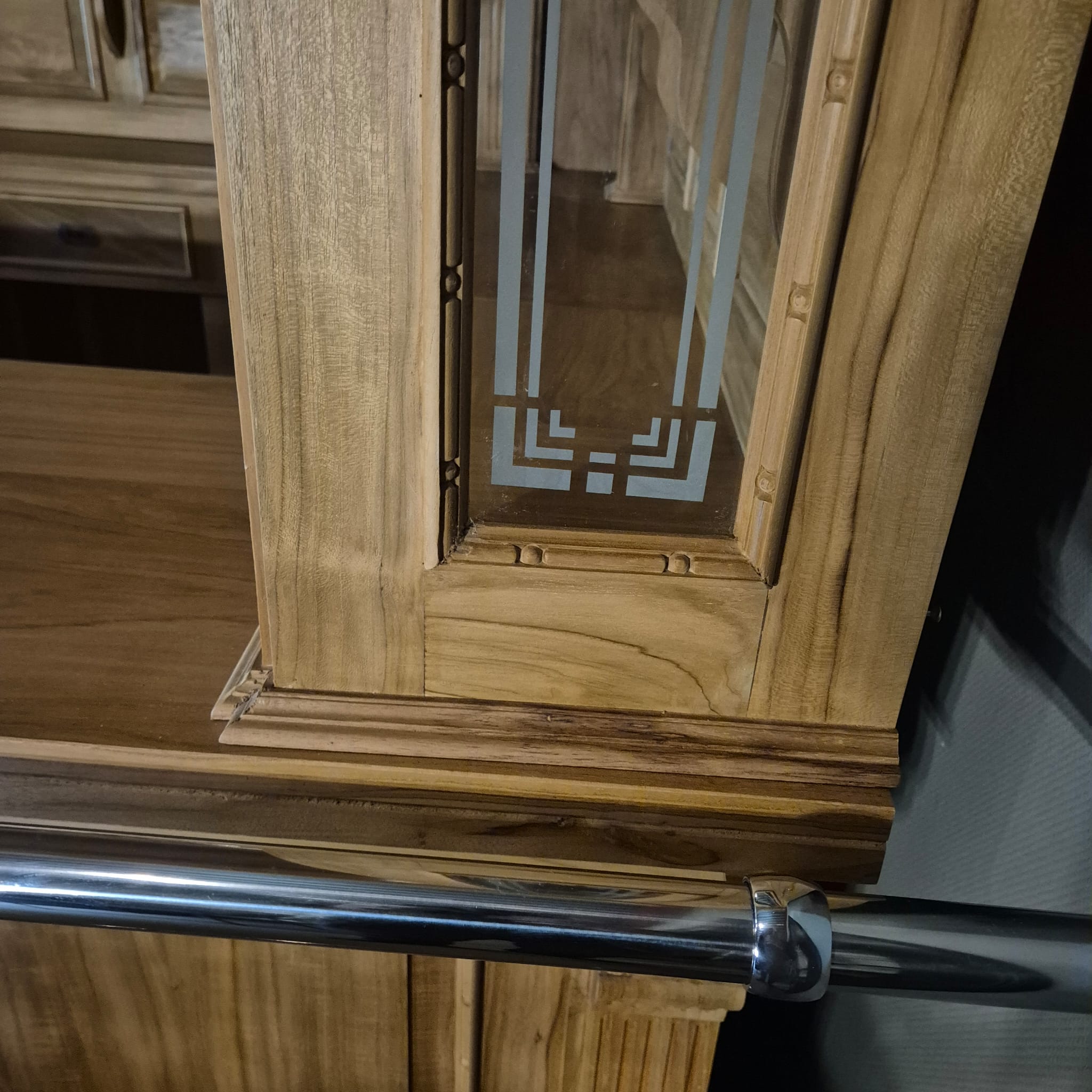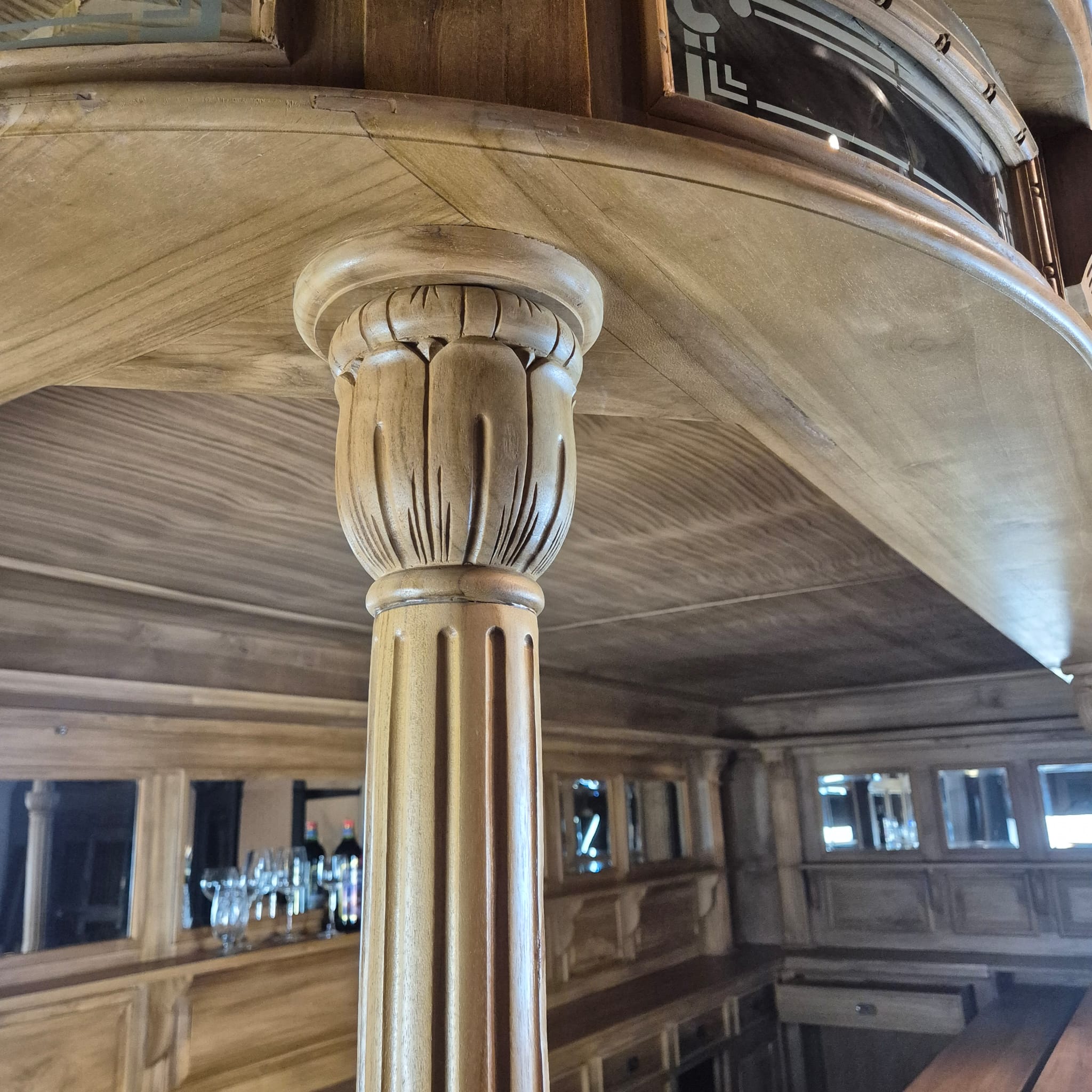 Die Theke Modell Home Eck-Bar aus Massivholz beeindruckt durch ihr imposantes Erscheinungsbild, sowie dem stilvollen mit Spiegeln und Säulen versehenen Rückwandbuffet. Zerlegbar.
