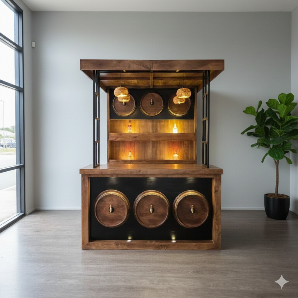 Hausbar Gartenbar Weinfass-Bar Mangoholz 1,84 m