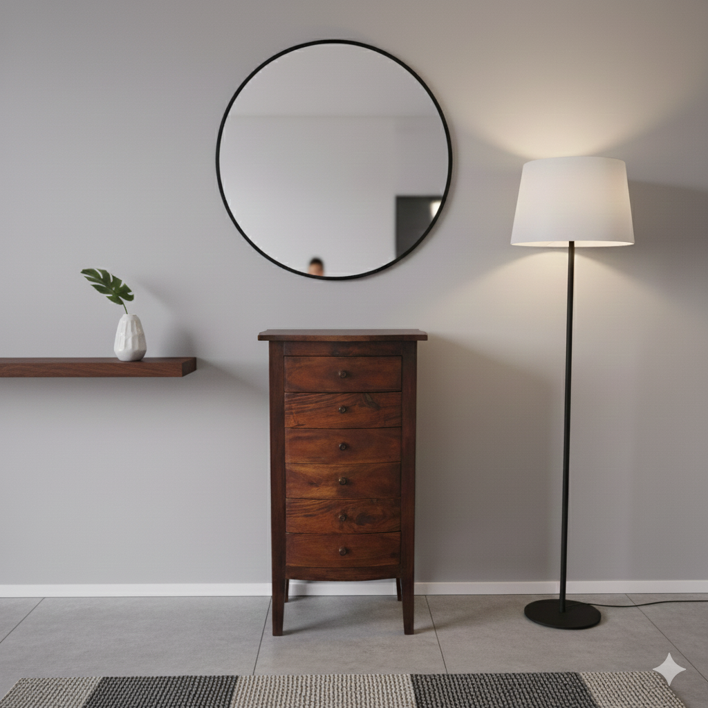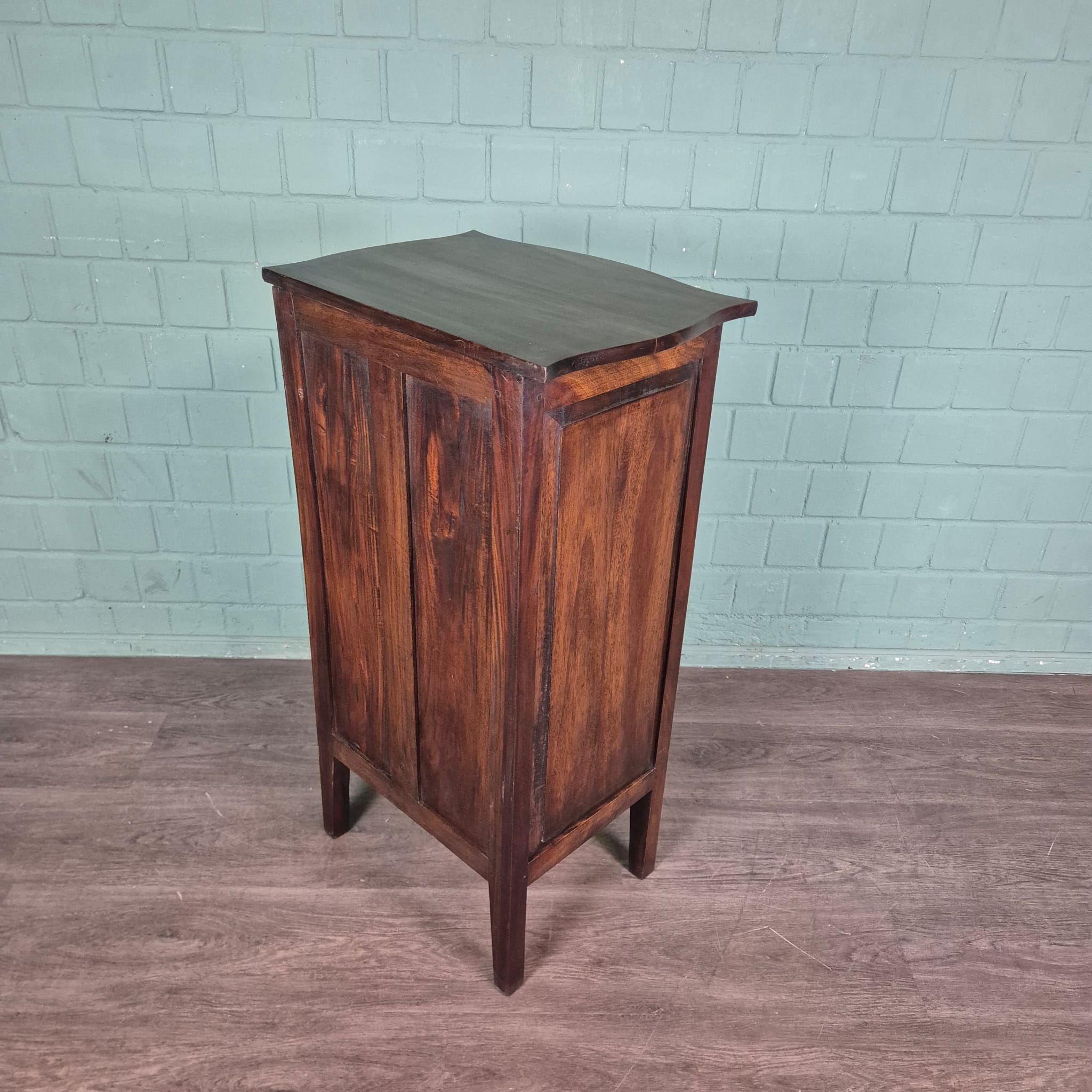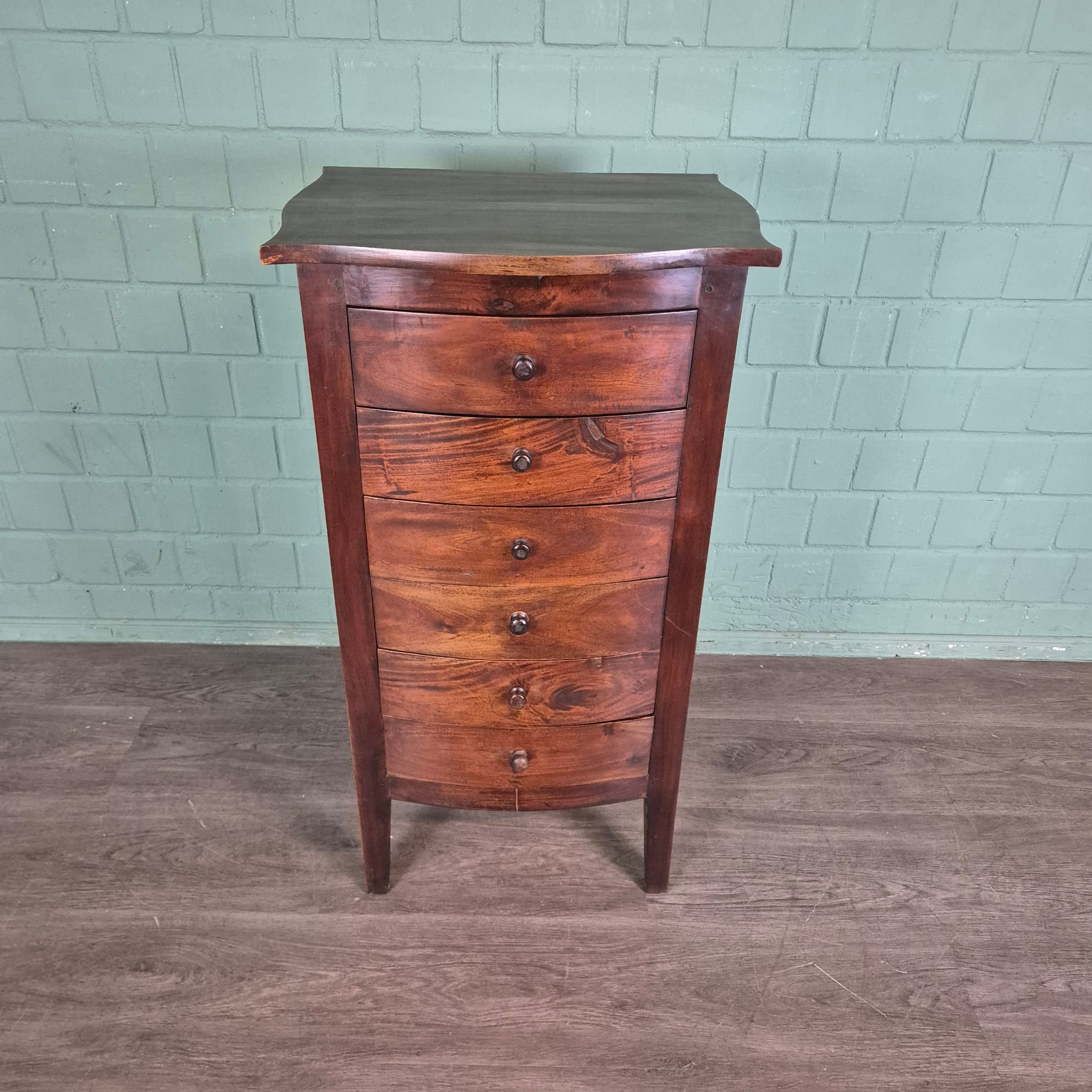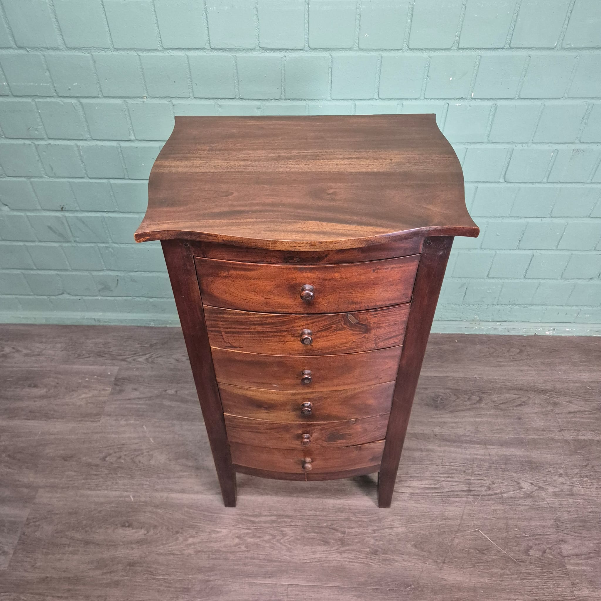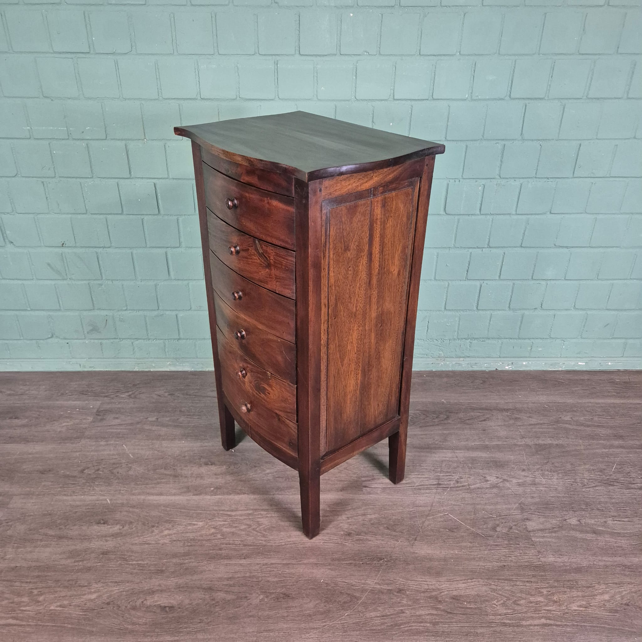 Diese stilvolle gestaltete Kommode aus massiv Teakholz (gewachst) erhält ihre besondere Wirkung durch natürliche Unregelmäßigkeiten im Holz. Diese entstehen durch das verwendete Edelholz mit seinen verschiedenen Strukturen, welche diesem Stück einen eigentümlichen Charakter verleihen und es zu einem Unikat machen. Machart und Farbton des Holzes tragen sehr zum optischen Wert dieses Möbels bei, das sowohl dekorative Möglichkeiten als auch genügend Stauraum bietet. Ausstellungsstück zum Sonderpreis.