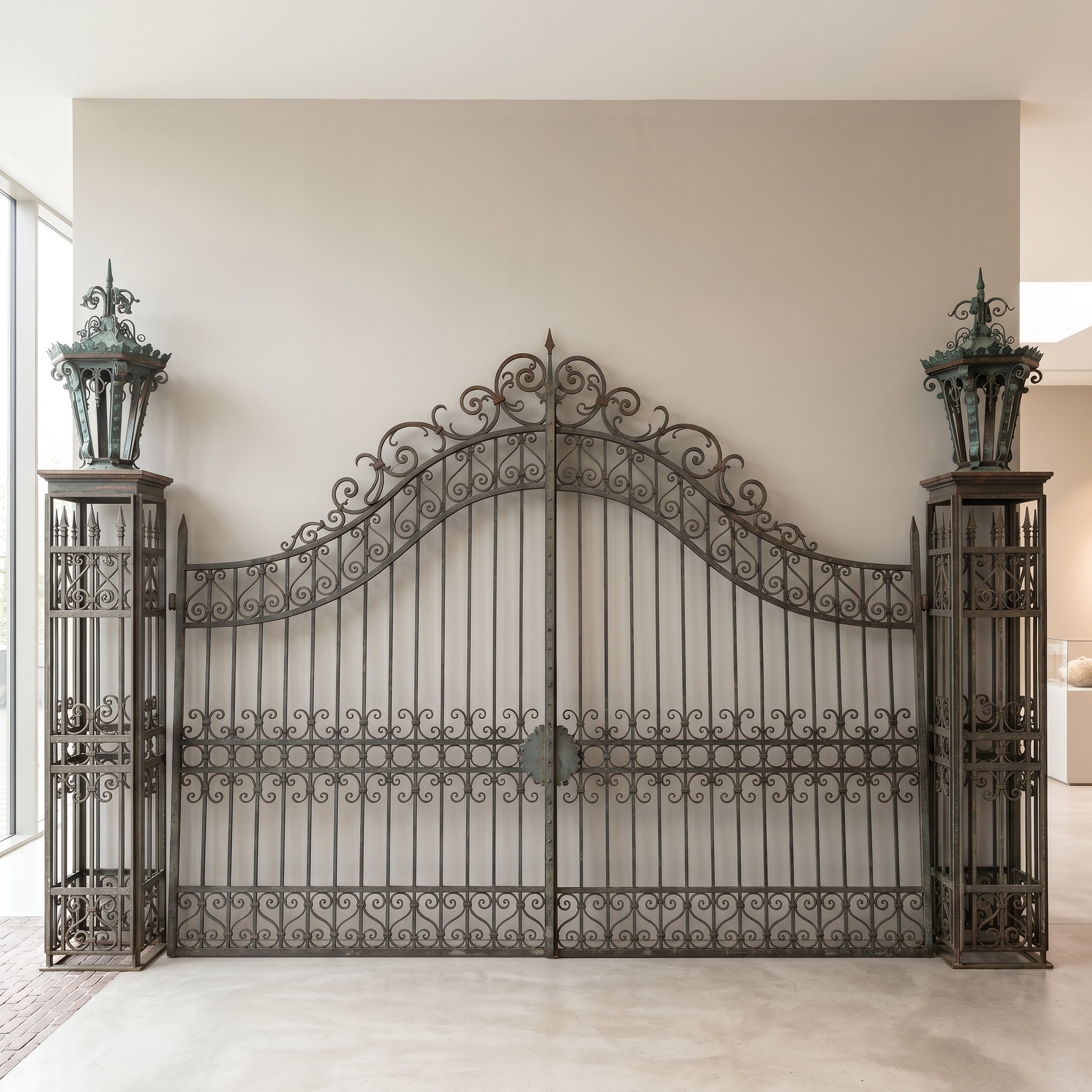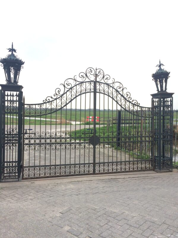 Zeitloses Schmuckstück: Dieses prachtvolle Schmiedeeisentor ist ein echtes Unikat. Die filigranen Verzierungen und die robuste Bauweise zeugen von höchster Handwerkskunst. Das Tor ist in einem sehr guten Zustand und bereit, Ihr Grundstück zu verschönern.