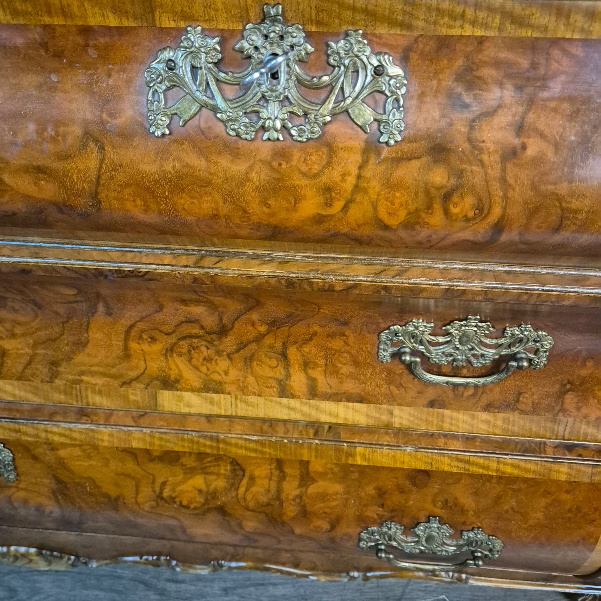 Hochwertiger Neubarock Schrank in Nussbaum furniert und lackiert von ca. 1970. Der Kabinettschrank befindet sich in einem sehr guten Zustand und weist nur minimale Gebrauchsspuren auf. Zerlegbar (2-teilig).