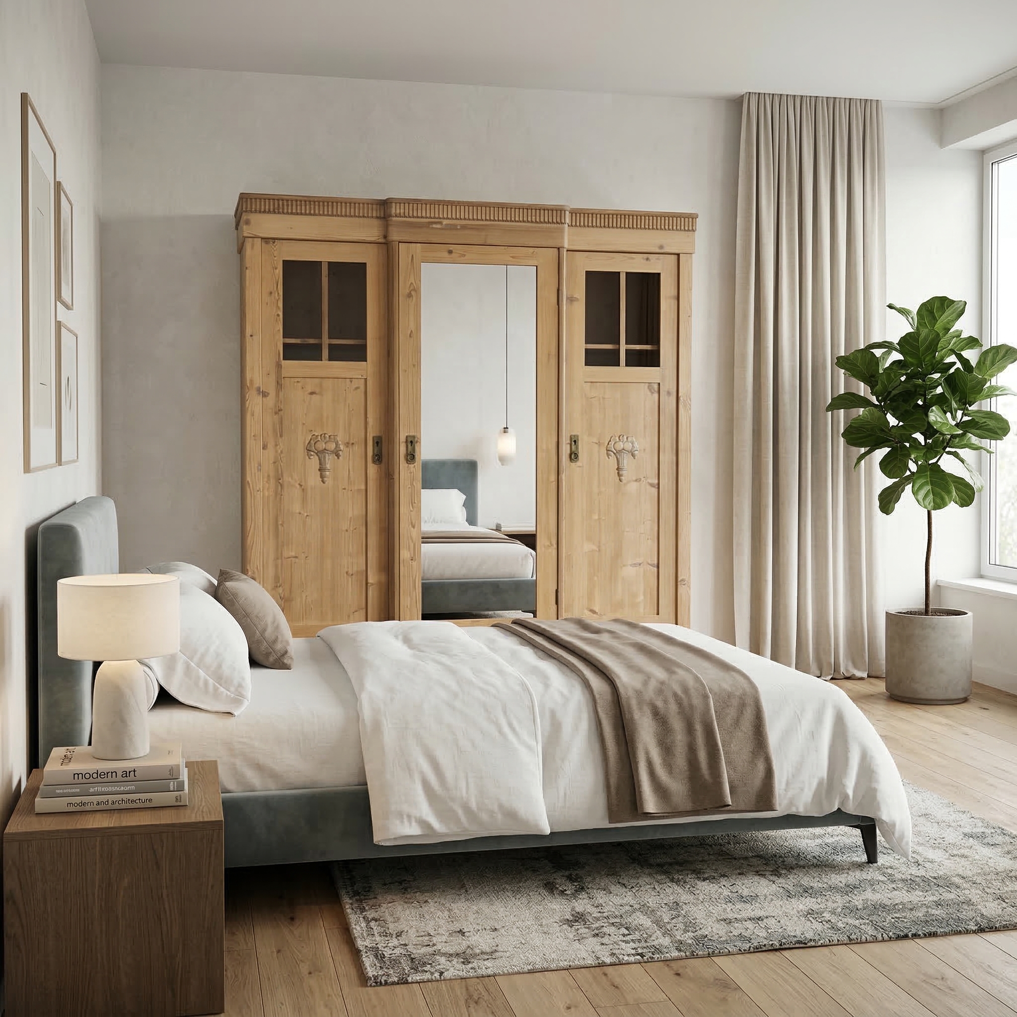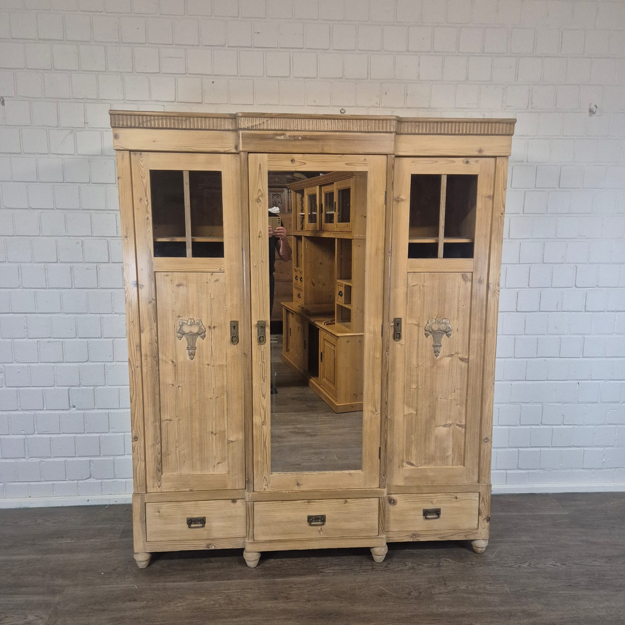 Kleiderschrank Dielenschrank Jugendstil 1910 Kiefer