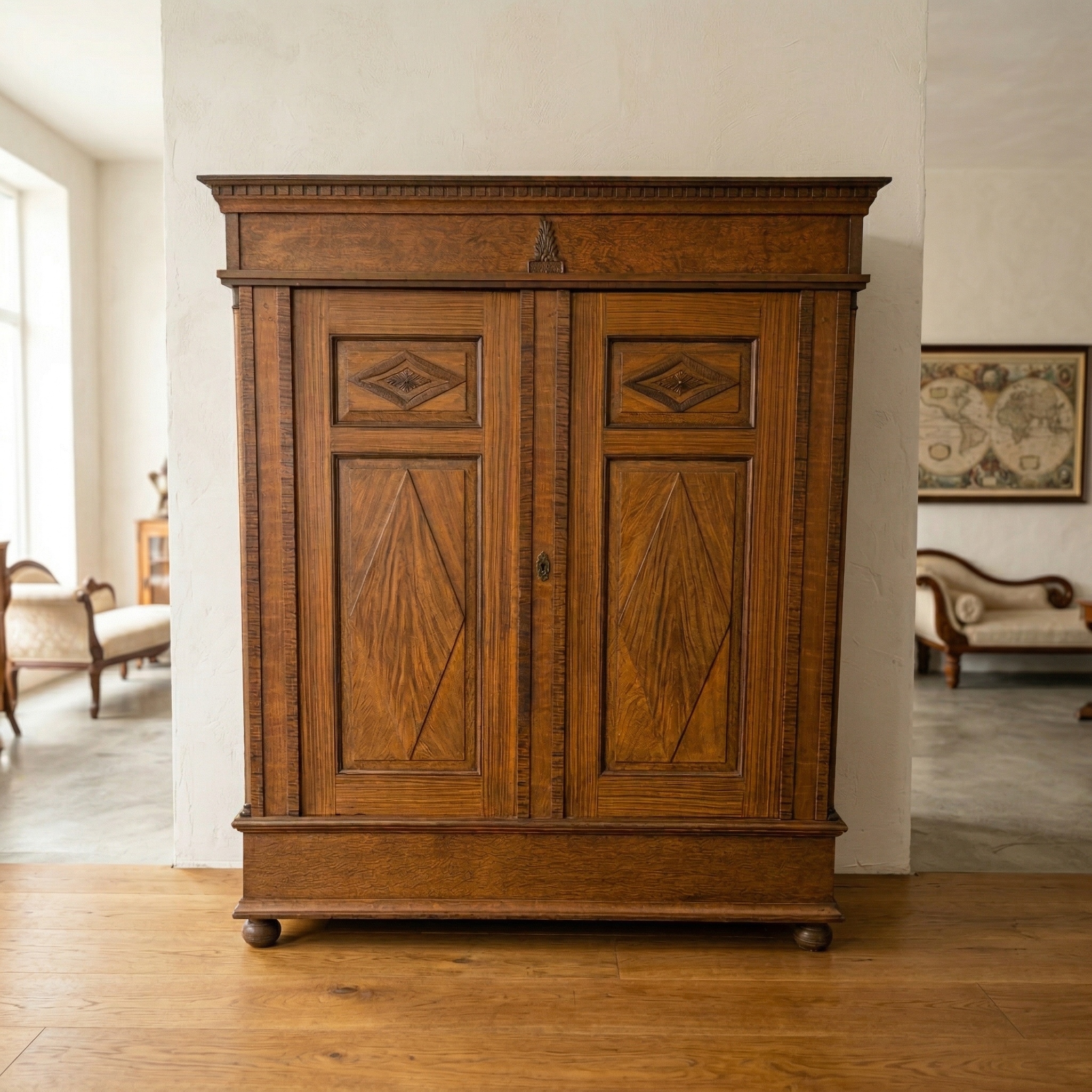 Kleiderschrank Wäscheschrank Neorenaissance 1870 Eiche