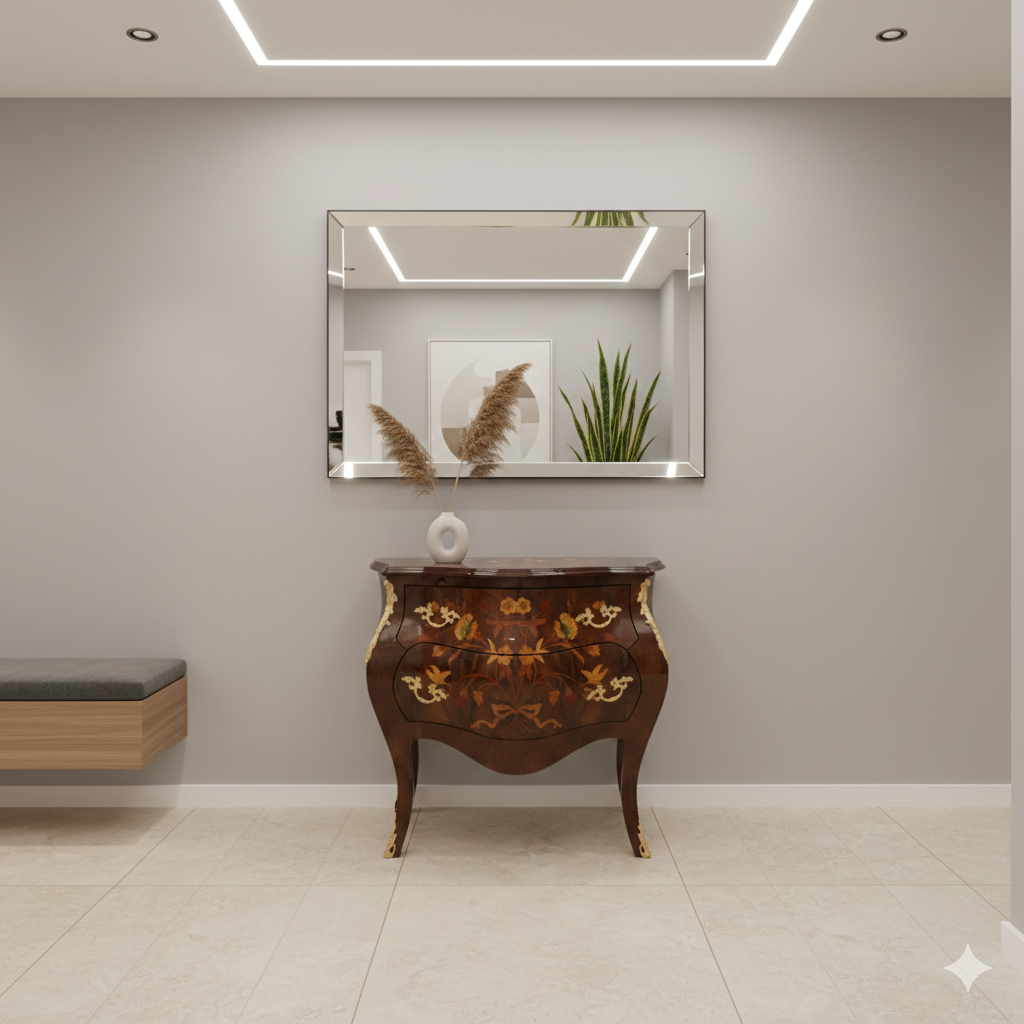 🔸 Form: Klassische Barock-Form mit geschwungenen Beinen und abgerundeten Kanten