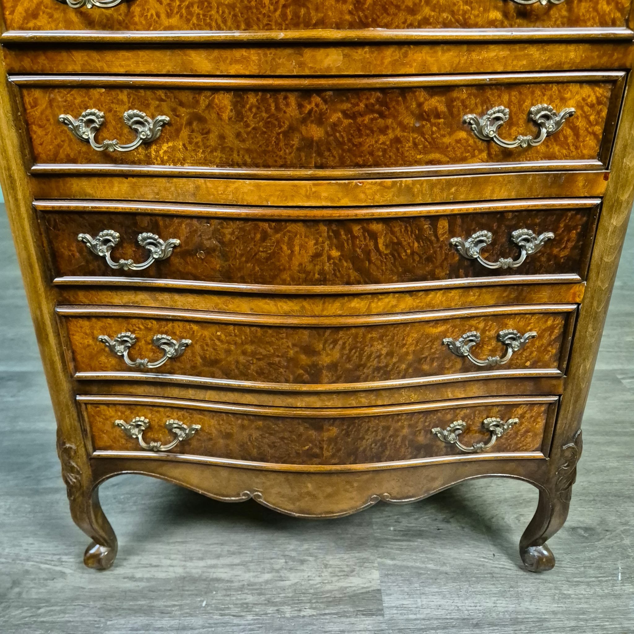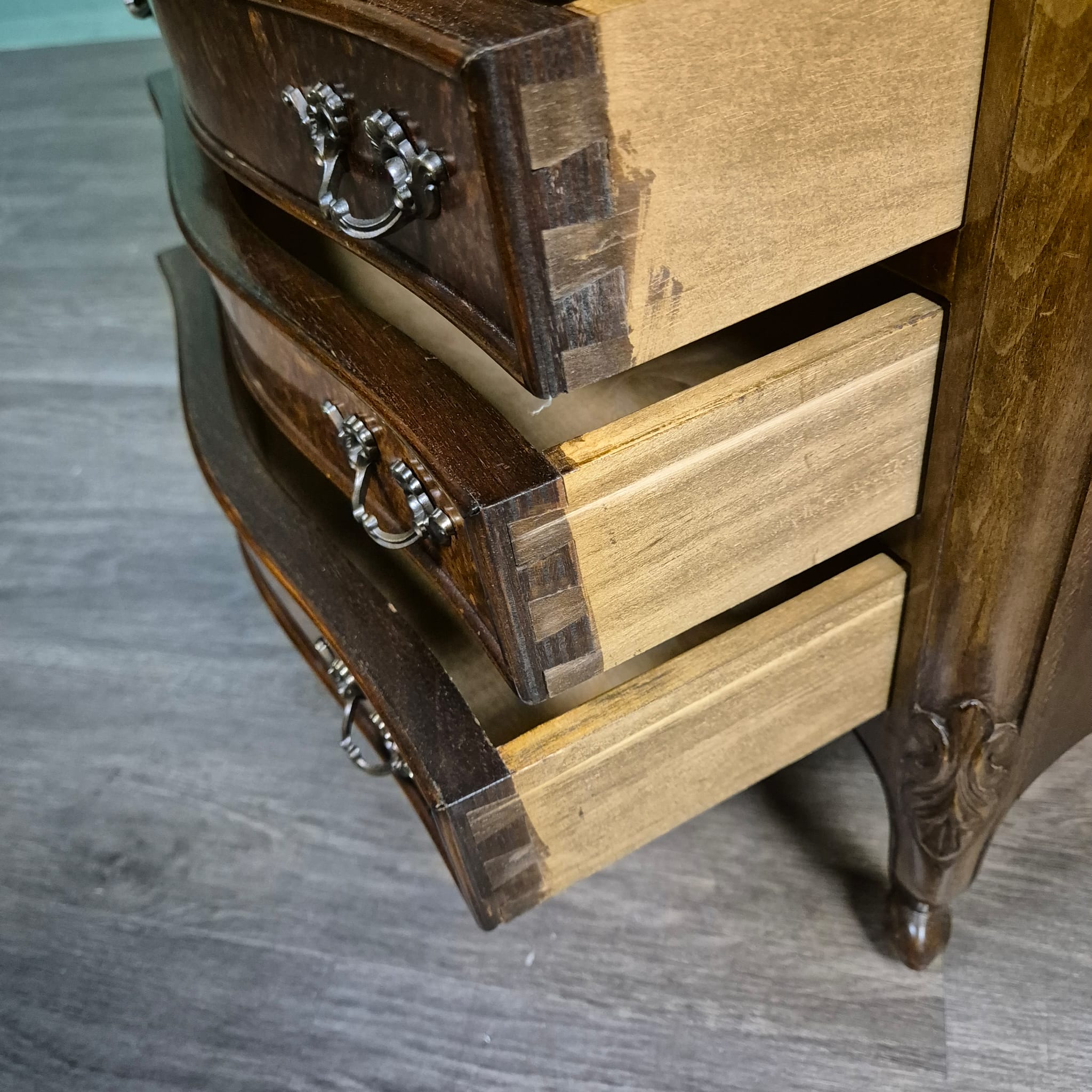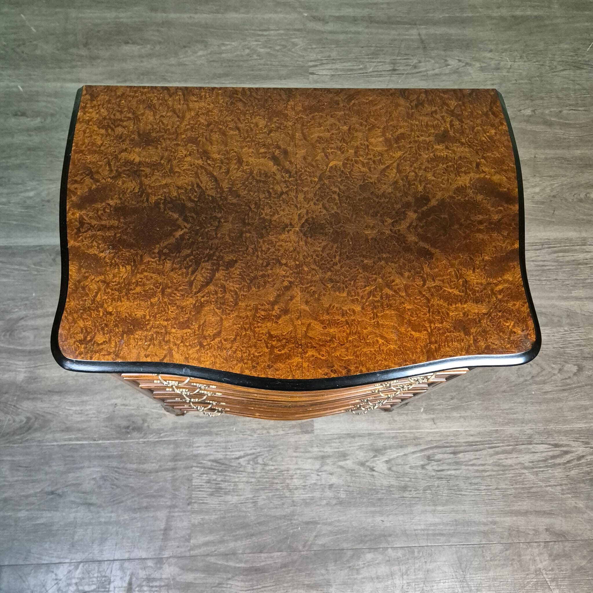 Hochwertige Neubarock Kommode in Nussbaum furniert und lackiert von ca. 1960. Der Schrank befindet sich in einem sehr guten Zustand und weist nur minimale Gebrauchsspuren auf.