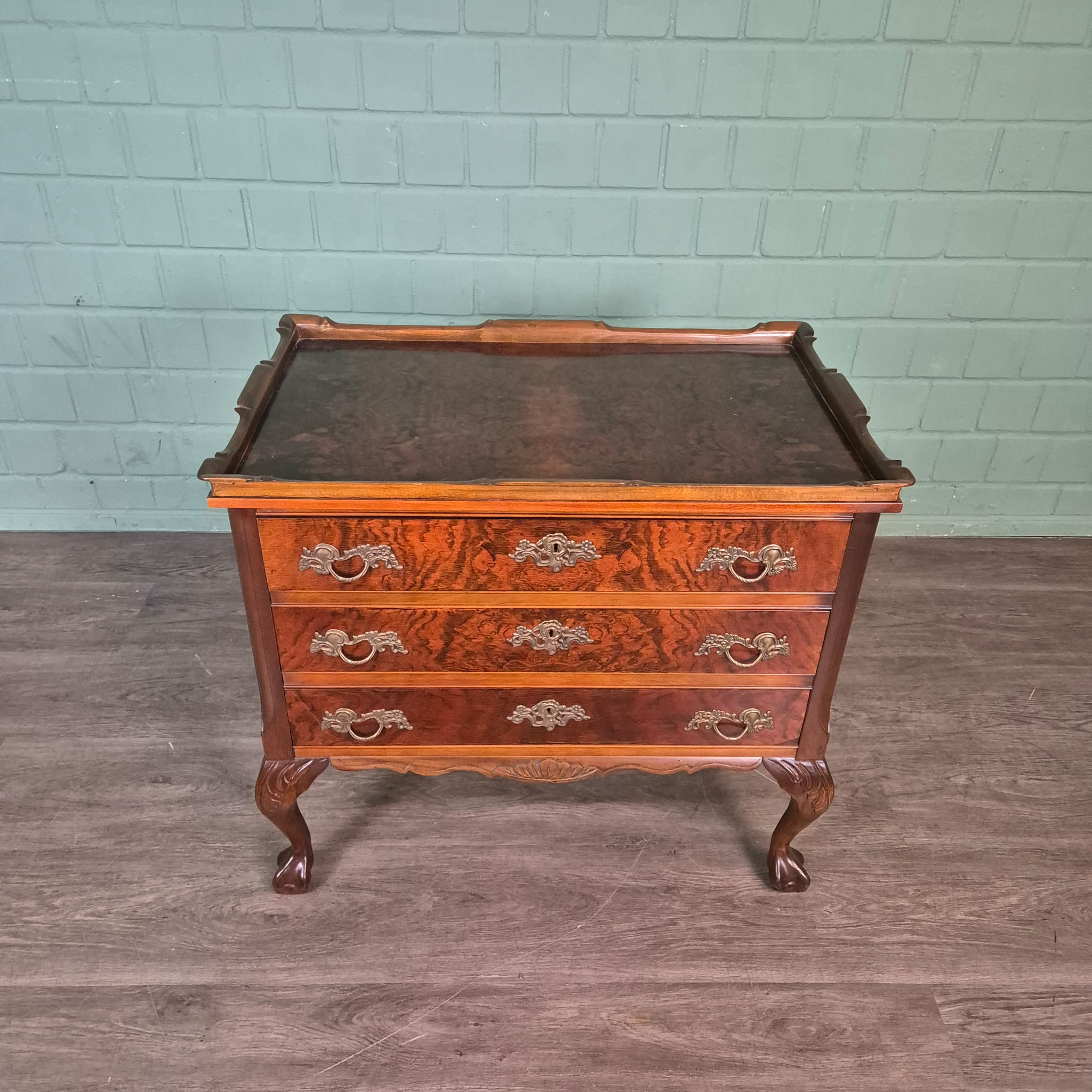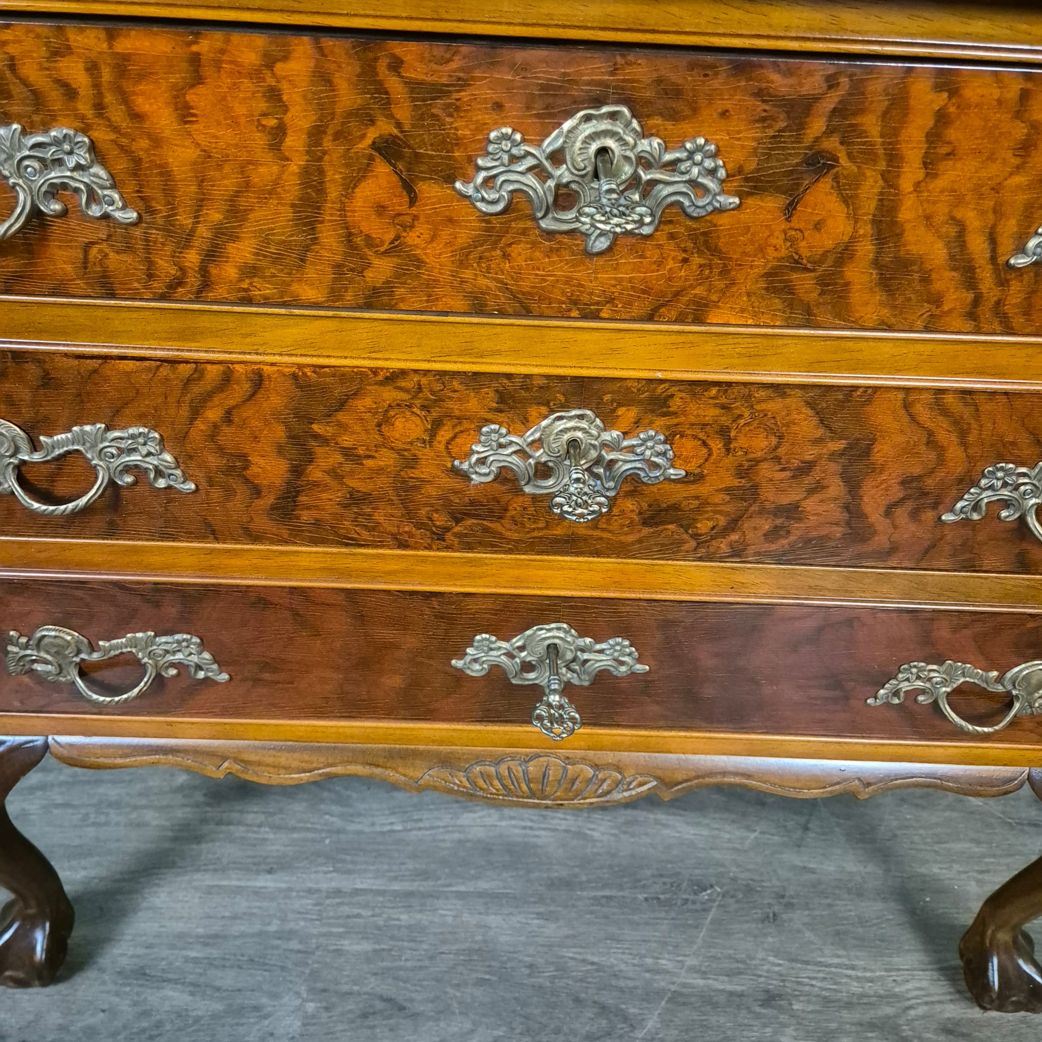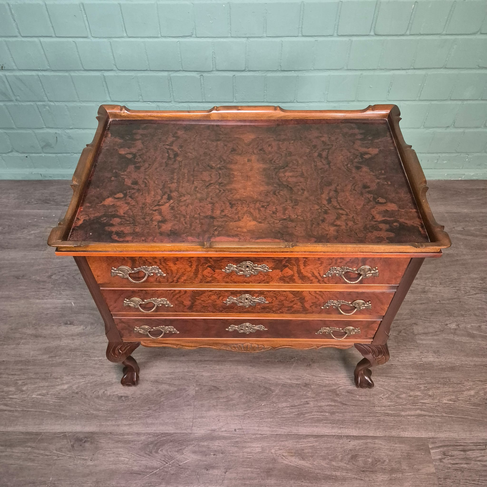 Hochwertige Neubarock Kommode von ca. 1950 in Nussbaum furniert und lackiert. Der Schrank befindet sich in einem sehr guten Zustand und weist nur minimale Gebrauchsspuren auf.