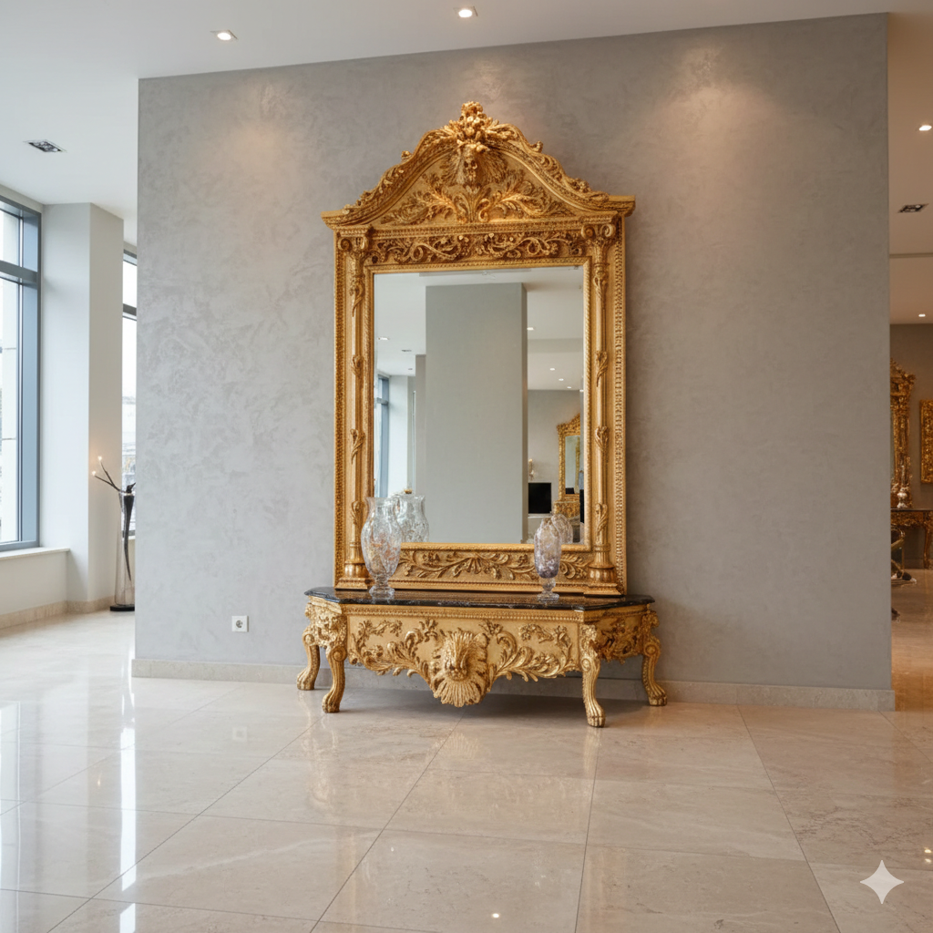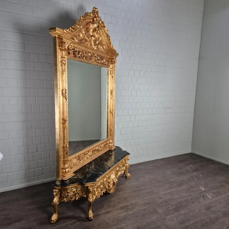Konsolentisch mit Wandspiegel 1,78 m Barockstil Marmor Gold