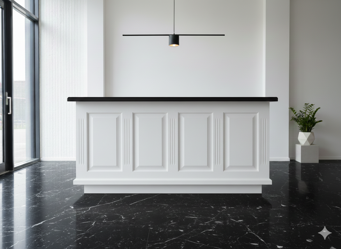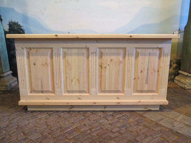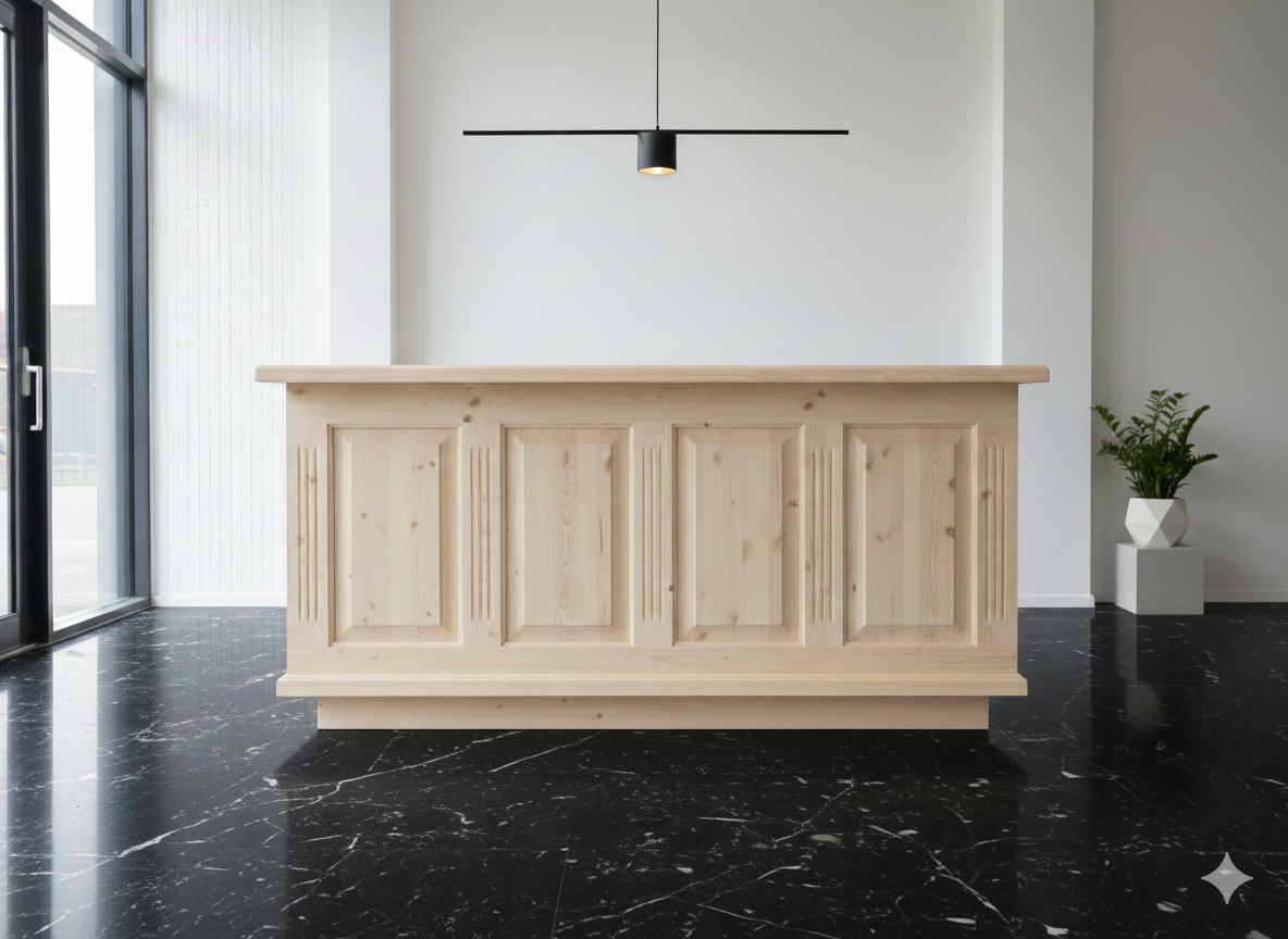 Der Ladentisch Modell Ava aus Massivholz besticht durch seine stilvolle Eleganz und der aufwendigen Verarbeitung. Die Kombination von nostalgischer Optik und moderner Funktionalität ist für alle Ladeneinrichtungen sowie vielen weiteren Einsatzgebieten geeignet. Der Tresen wird komplett fertig montiert geliefert und ist somit sofort einsatzbereit.