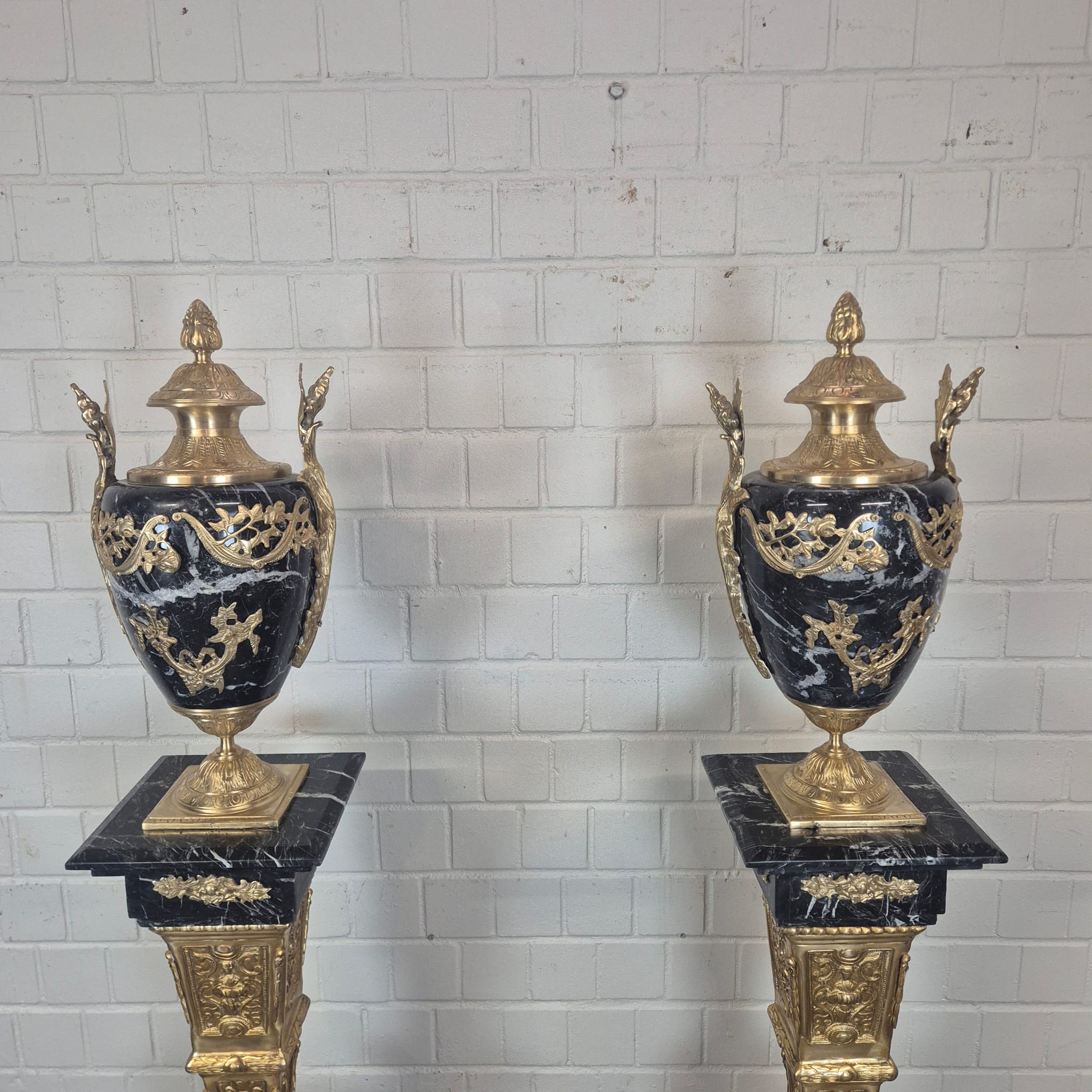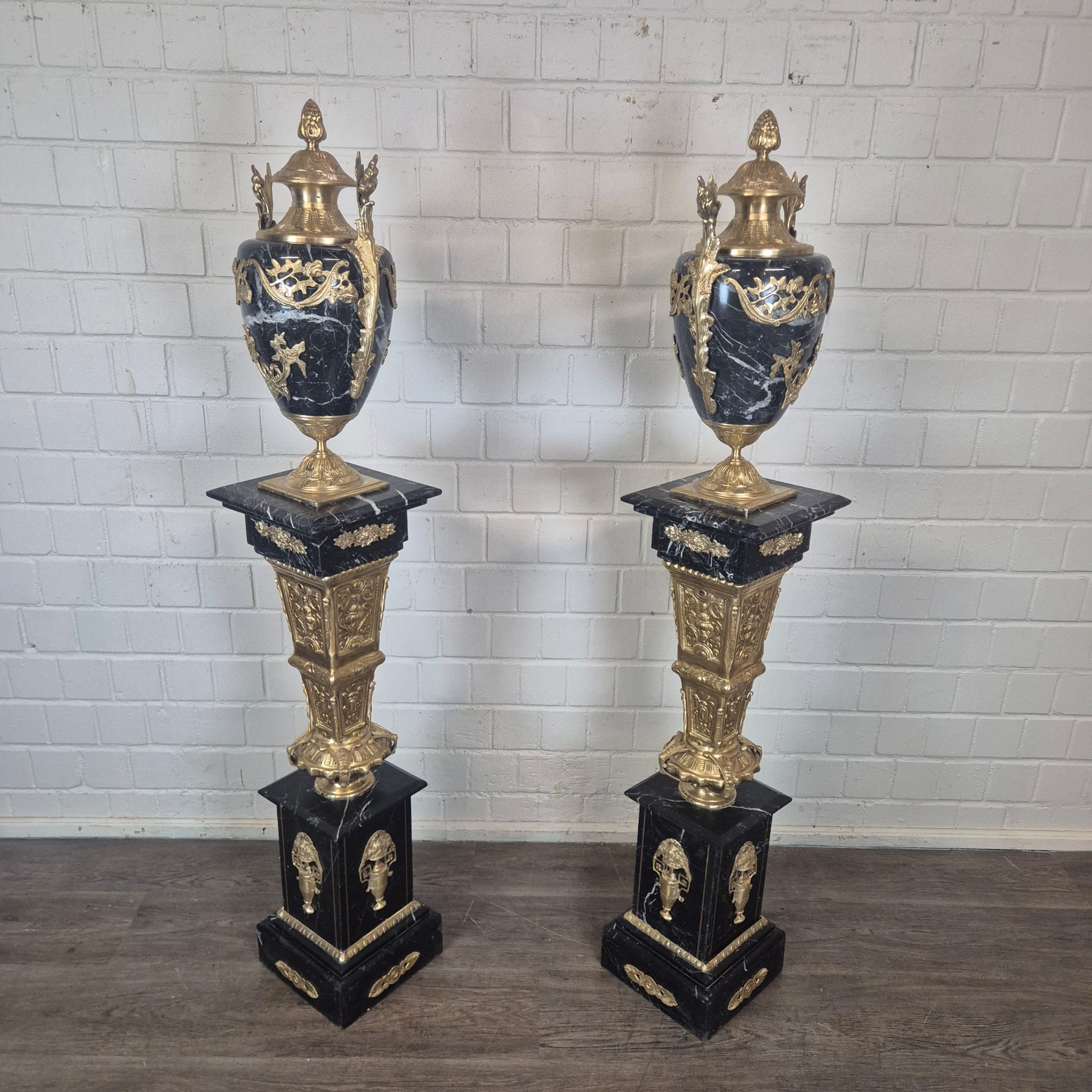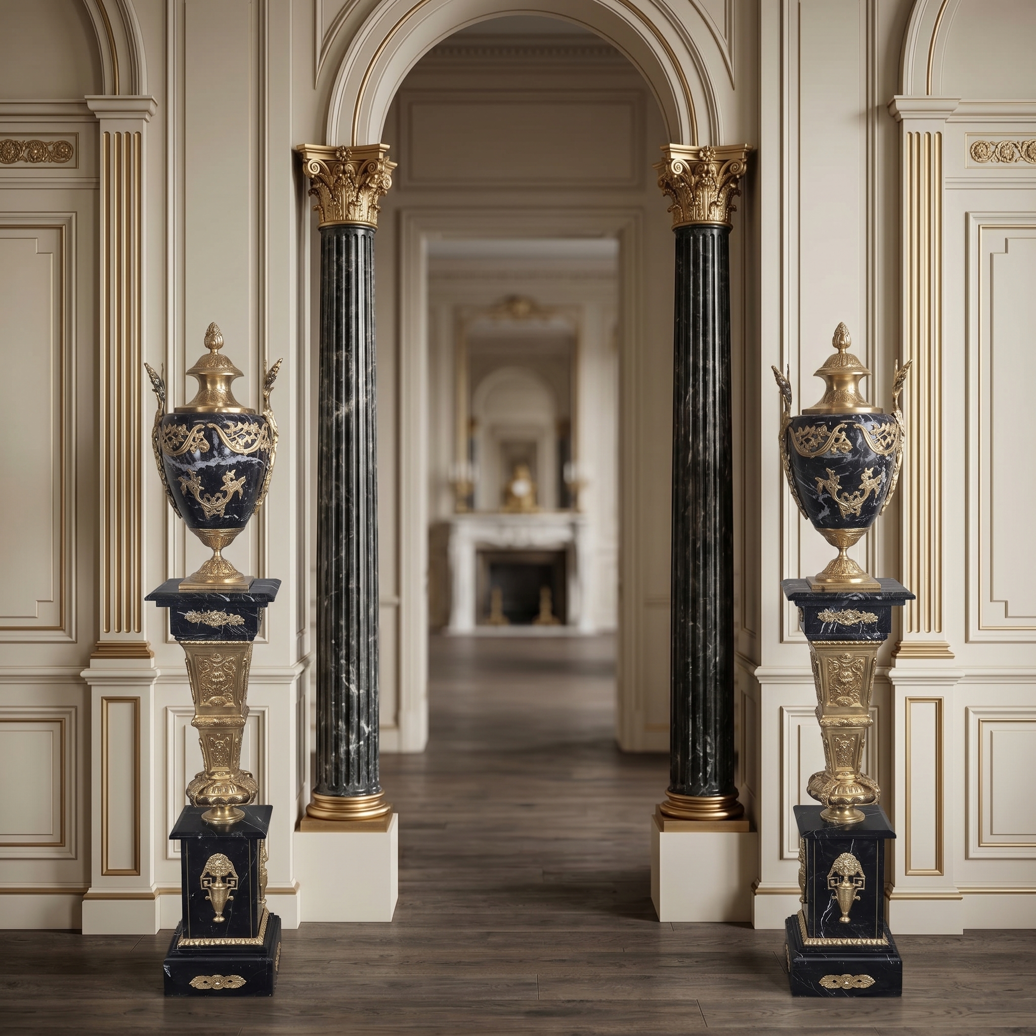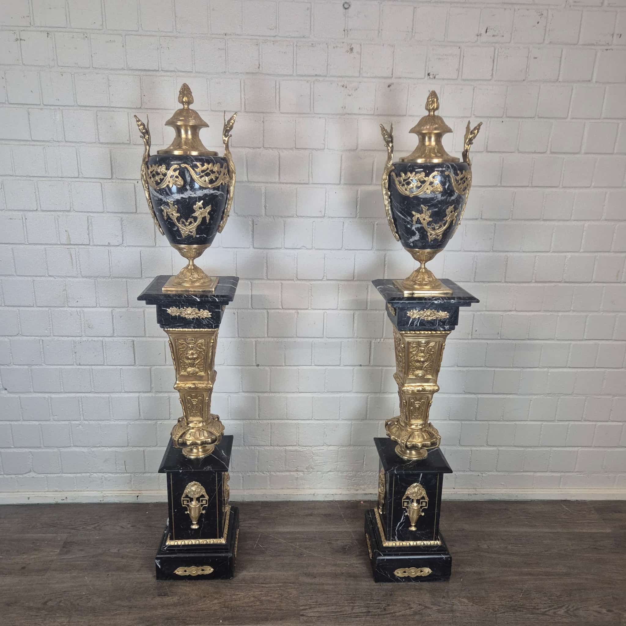 Exquisite Prunkvasen auf Säulen – Marmor & Gold-Applikationen - Stückpreis