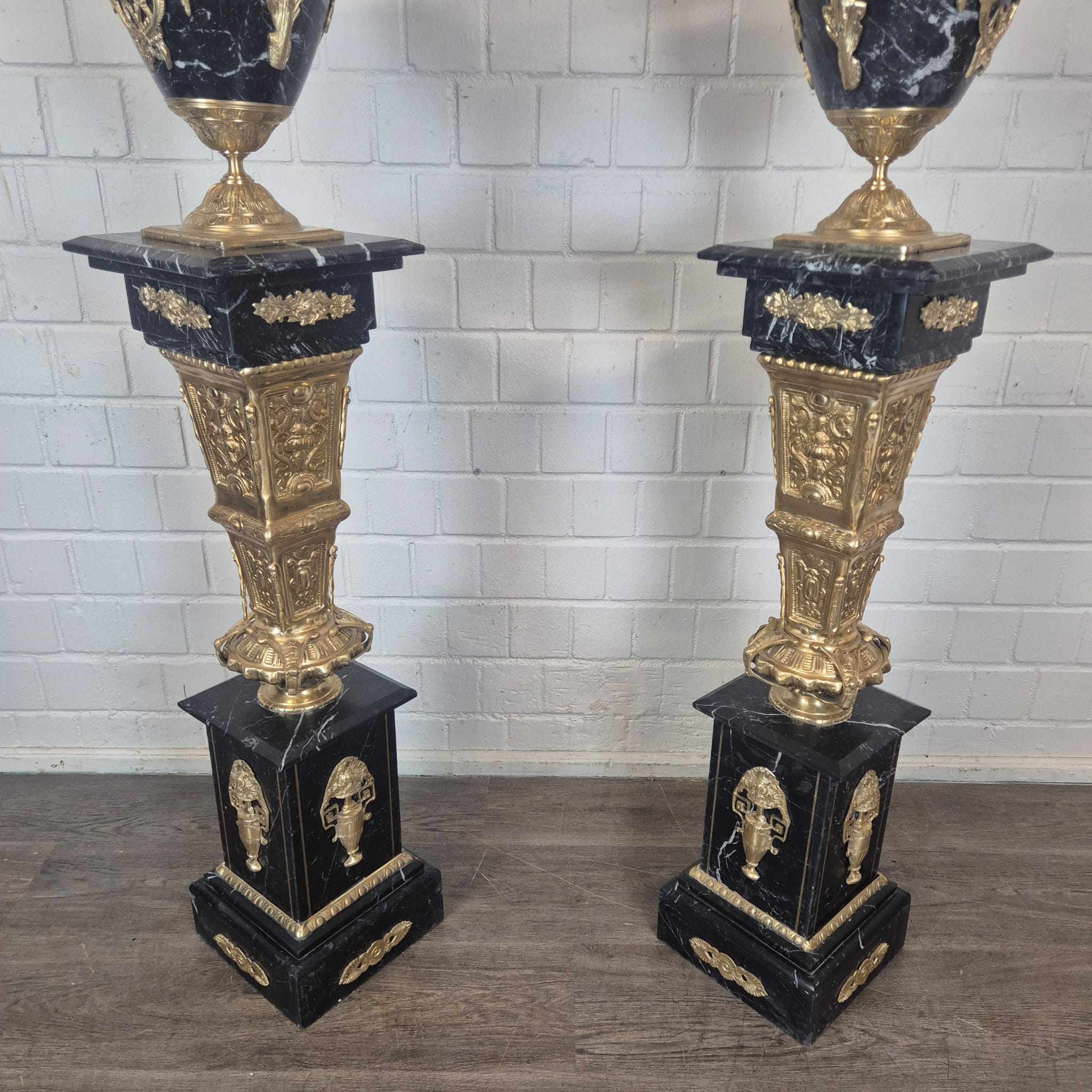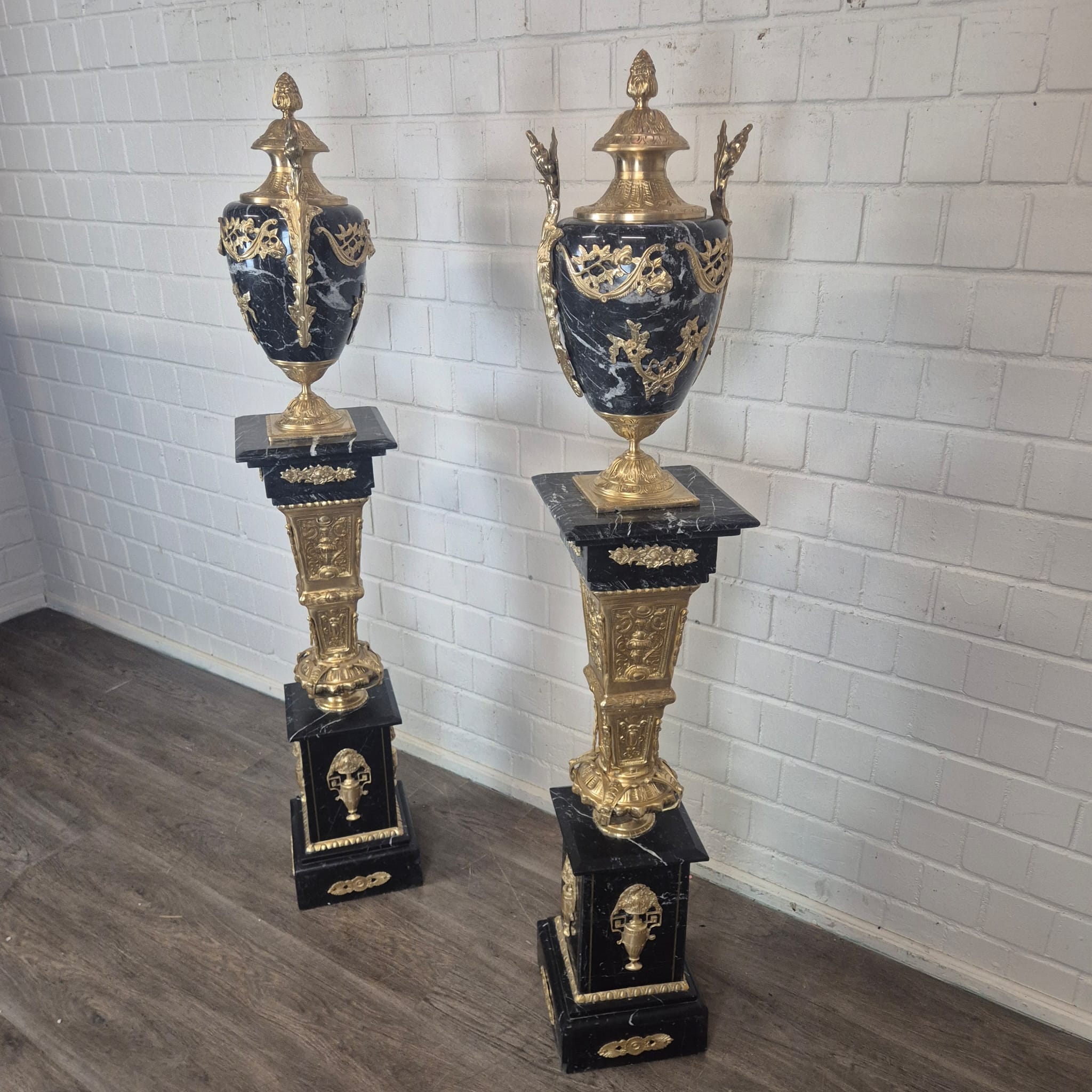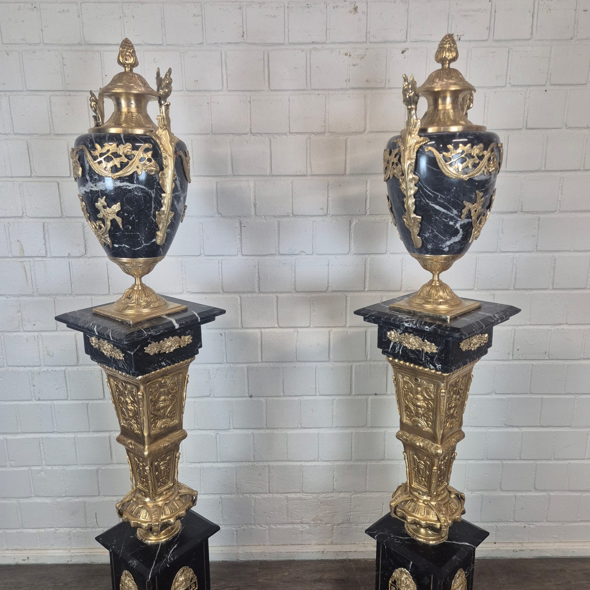Exquisite Prunkvasen auf Säulen – Marmor & Gold-Applikationen - Stückpreis