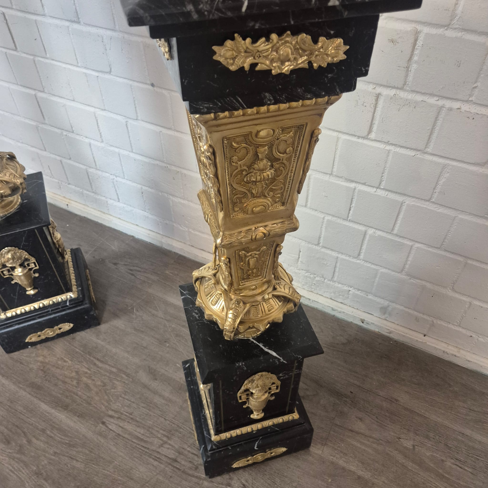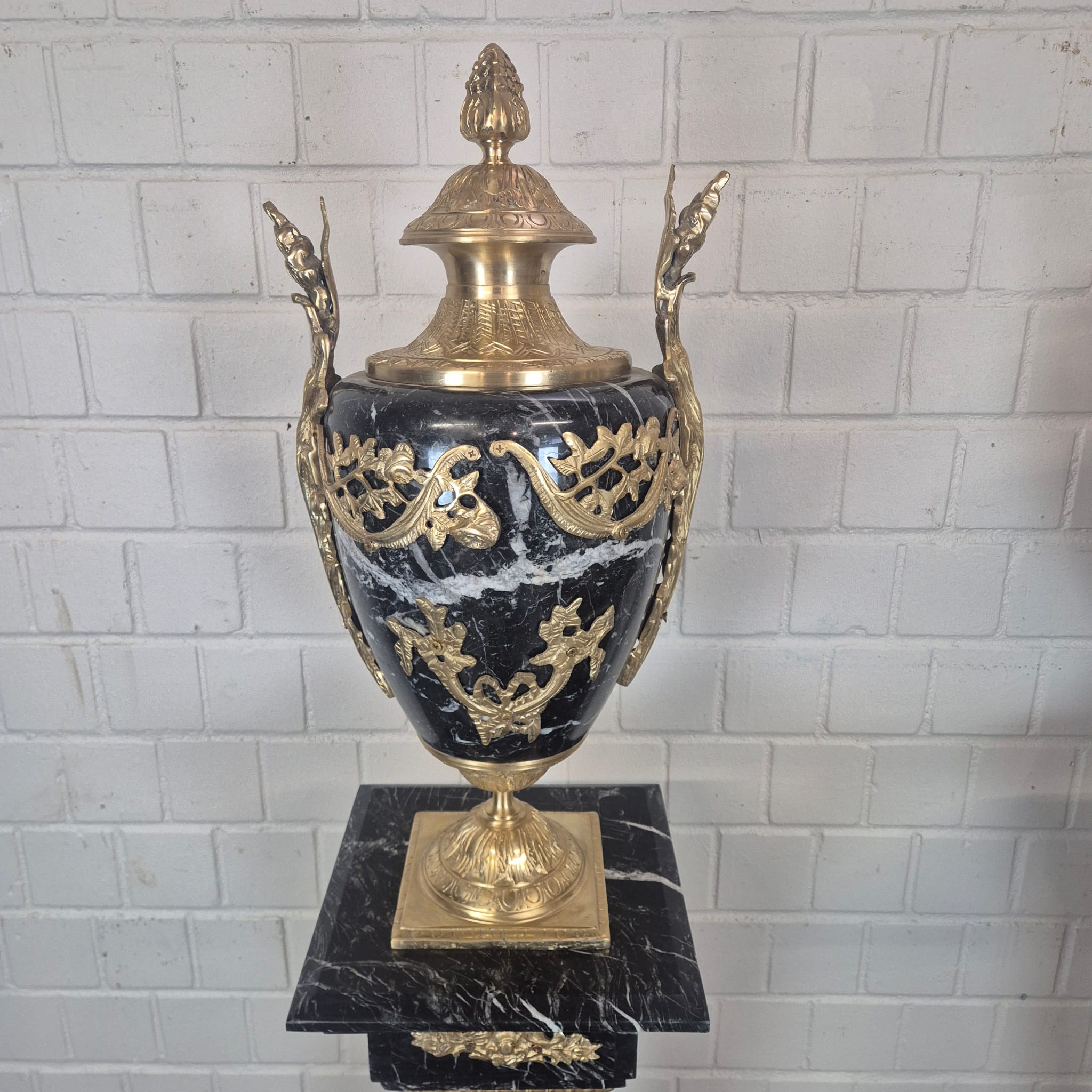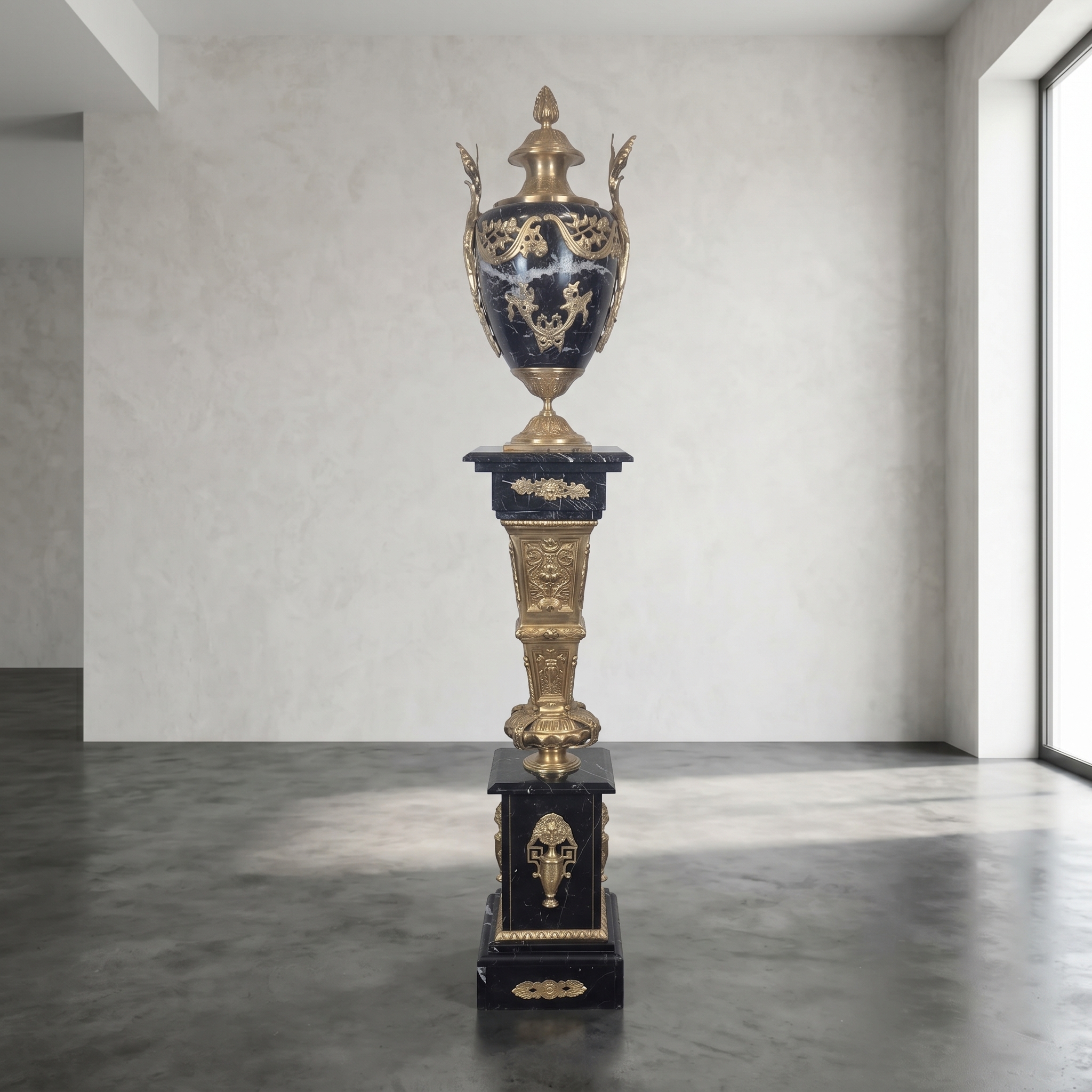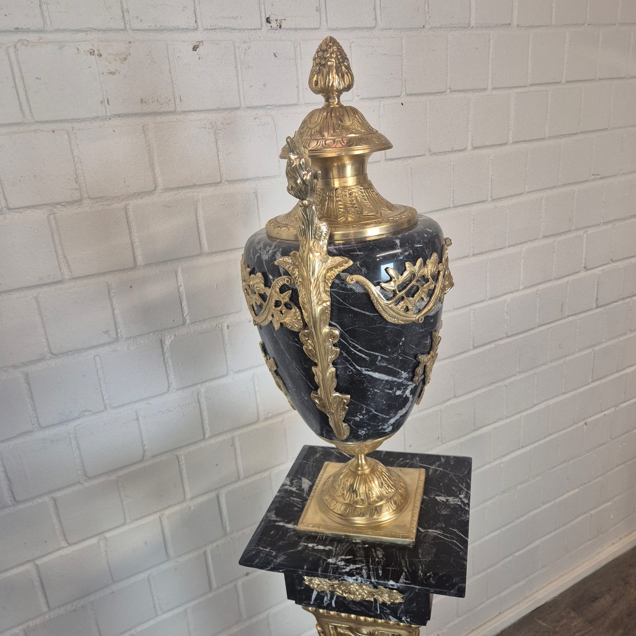 Exquisite Prunkvasen auf Säulen – Marmor & Gold-Applikationen - Stückpreis