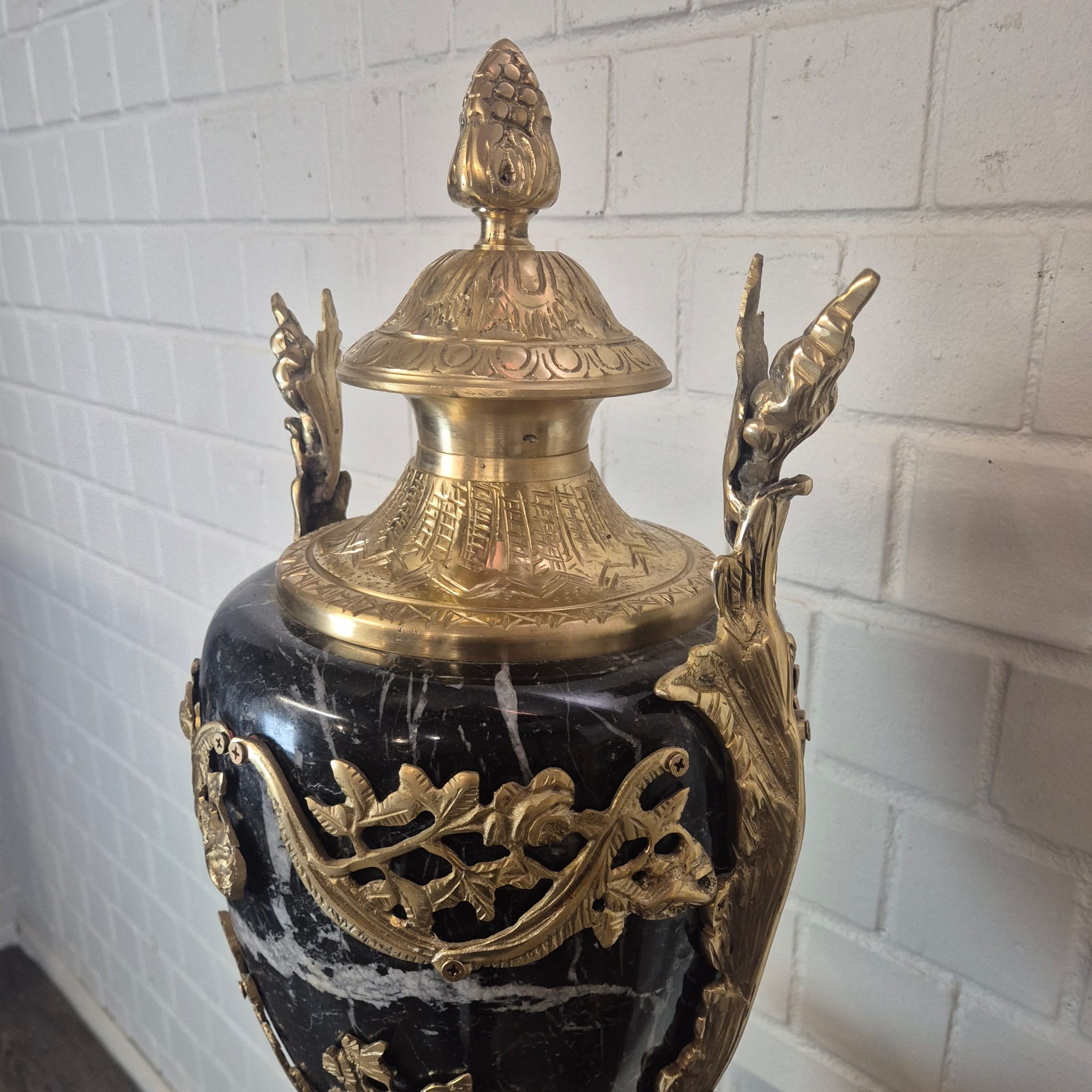 Bringen Sie herrschaftliches Flair in Ihre Räumlichkeiten! Zum Verkauf steht ein außergewöhnliches Paar monumentaler Prunk-Säulen mit aufgesetzten Deckelvasen. Diese Vasen bestechen durch ihre imposante Größe, die erstklassige Materialkombination und eine detailverliebte handwerkliche Ausführung.