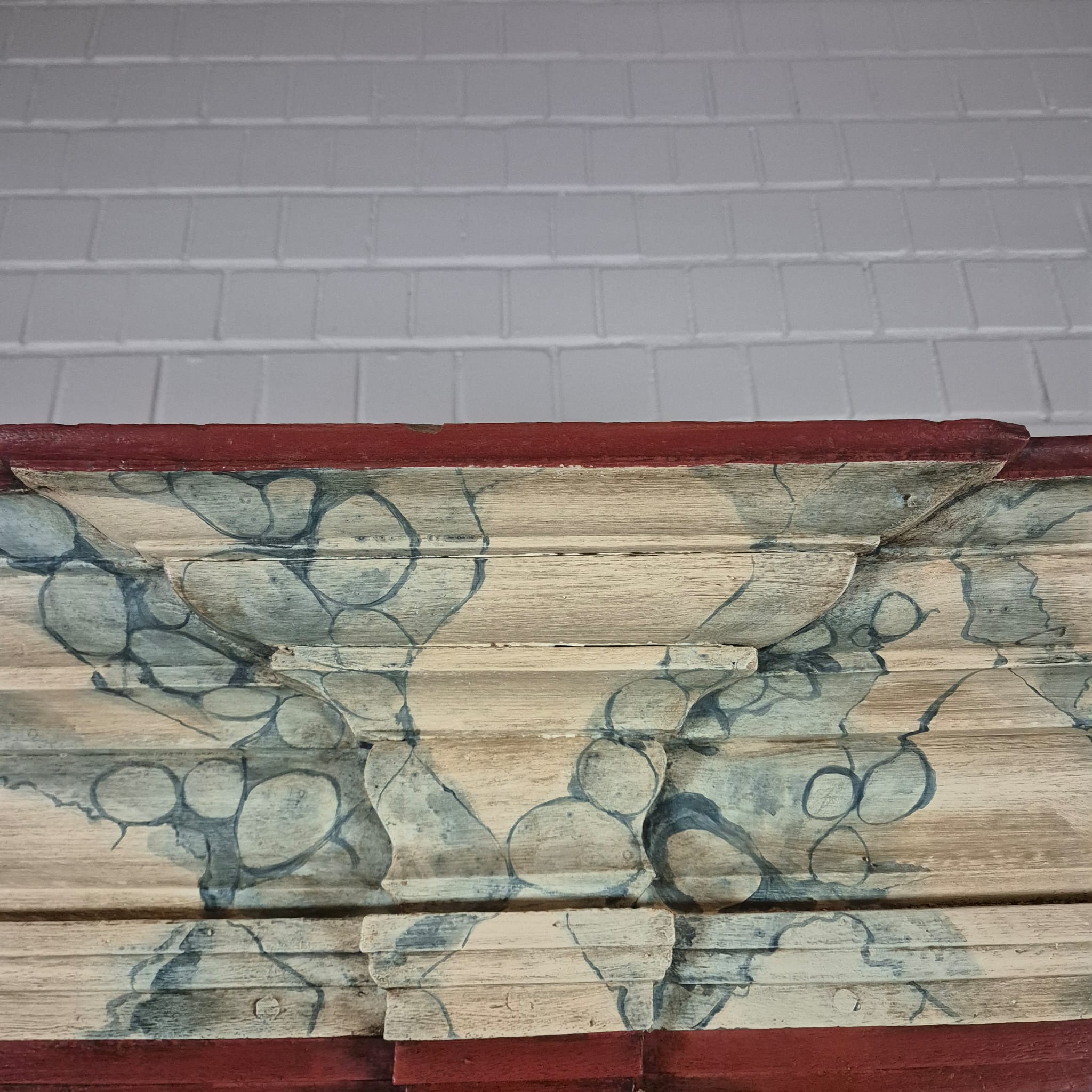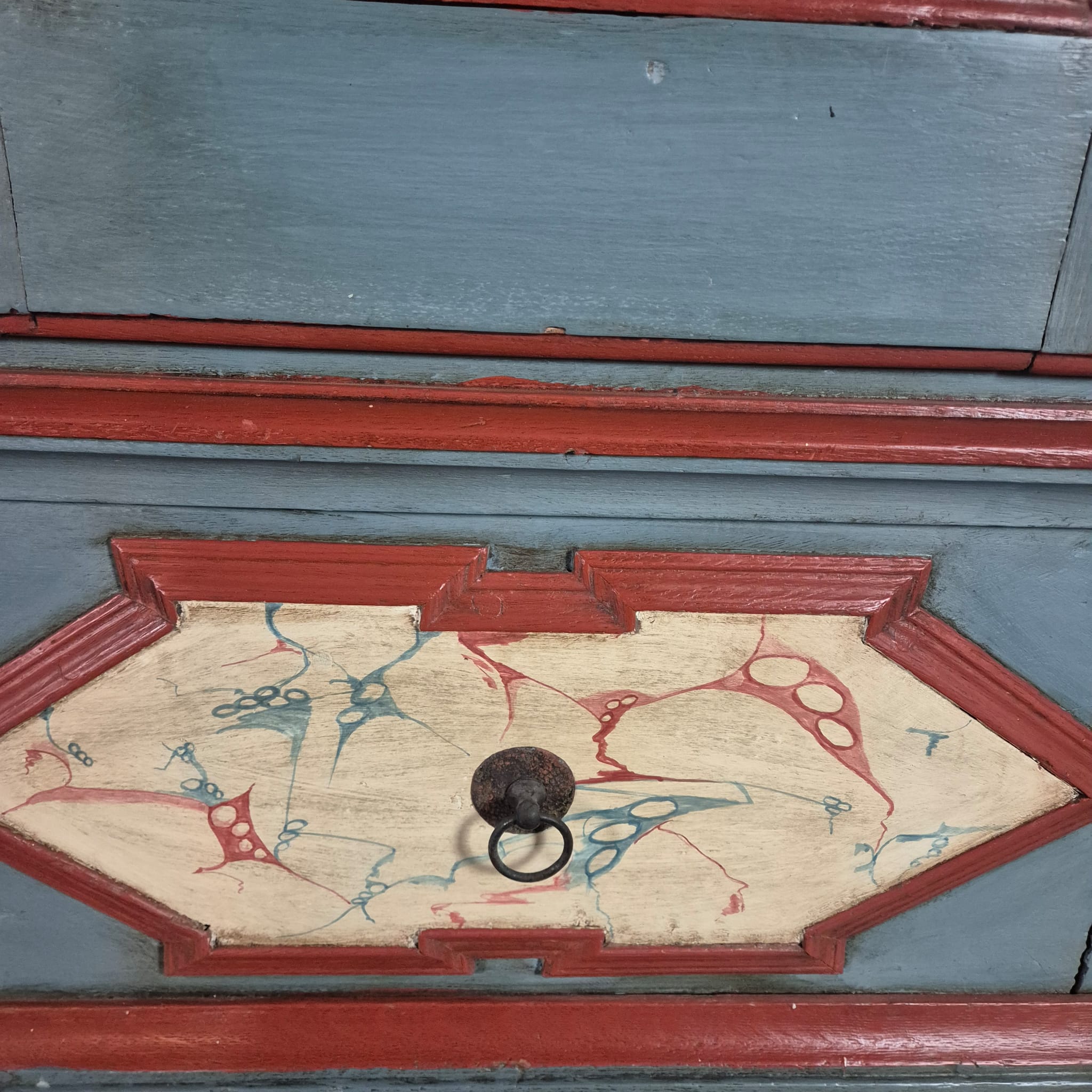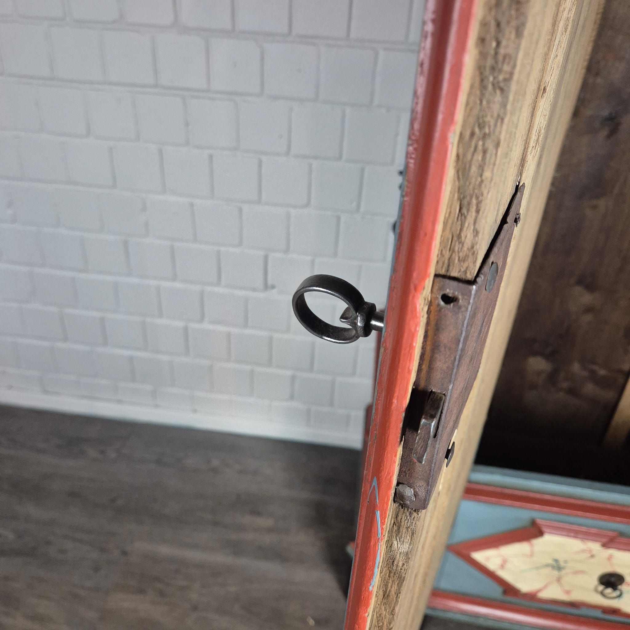 Restaurierter Barock Kleiderschrank aus massiv Eiche (lackiert) von ca. 1770. Der mit Bauernmalerei versehene Schrank befindet sich in einem guten Zustand und weist nur leichte Gebrauchsspuren auf. Zerlegbar (4-teilig).