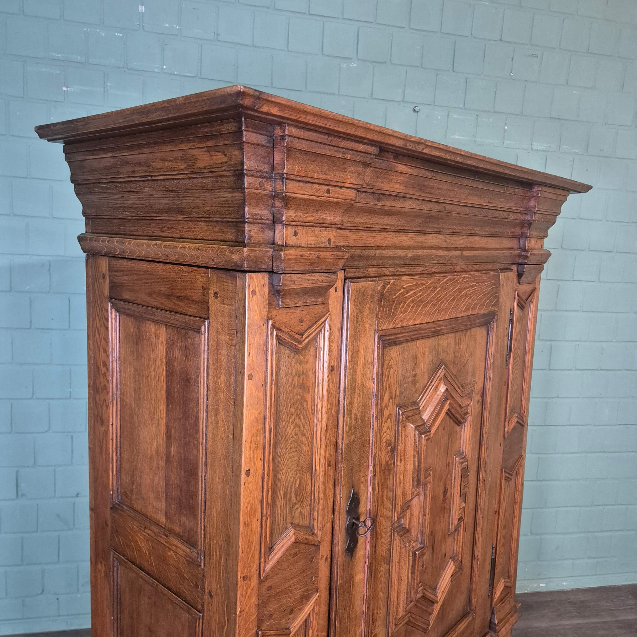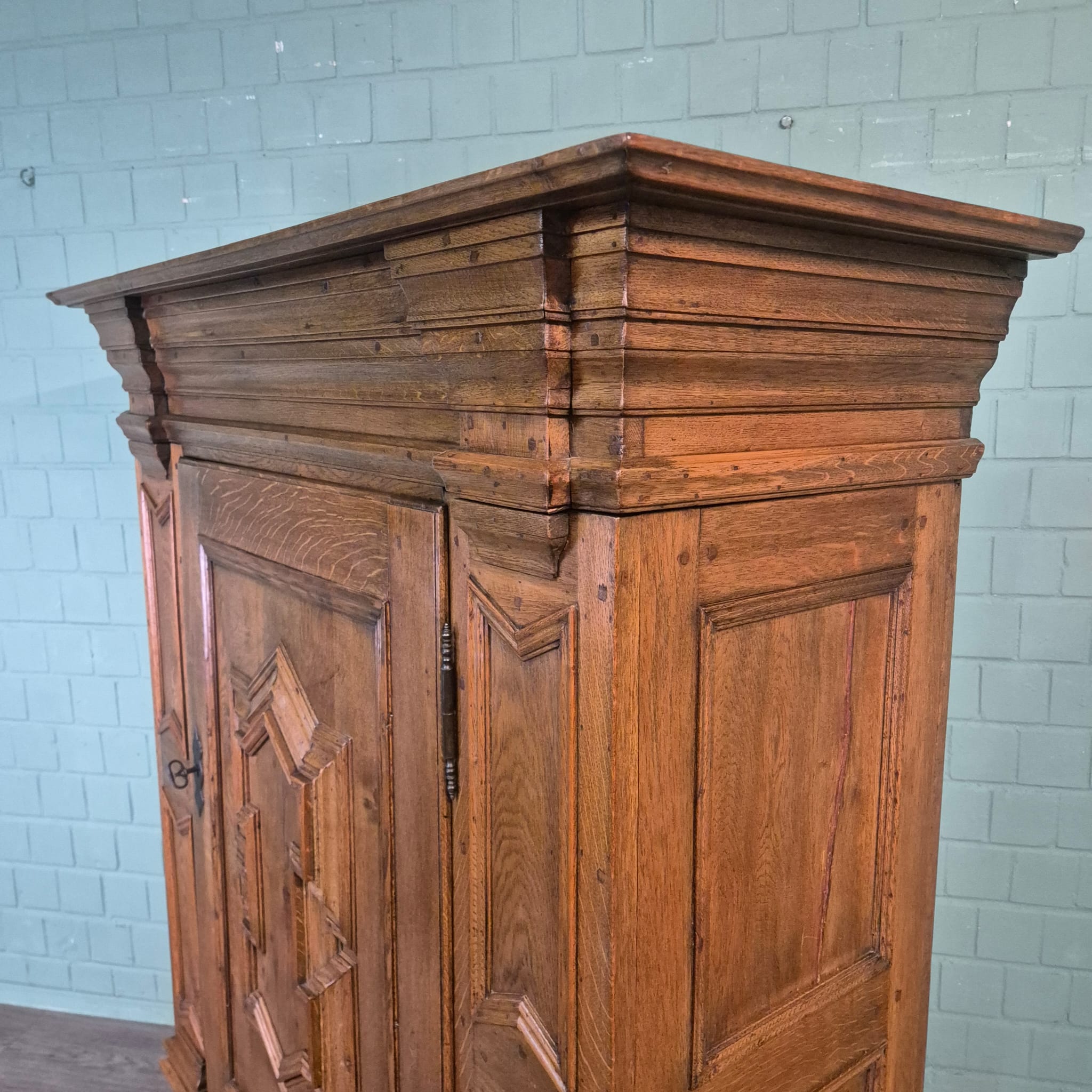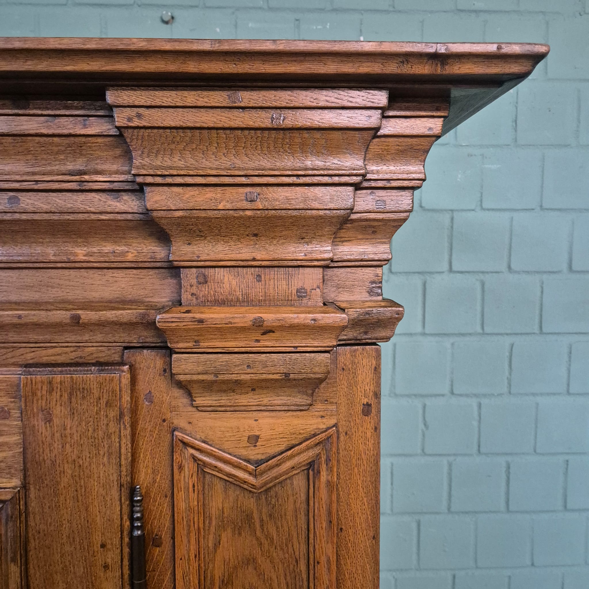 Restaurierter Barock Kleiderschrank aus massiv Eiche von ca. 1780. Der Schrank befindet sich in einem guten Zustand und weist nur leichte Gebrauchsspuren auf. Zerlegbar (6-teilig).