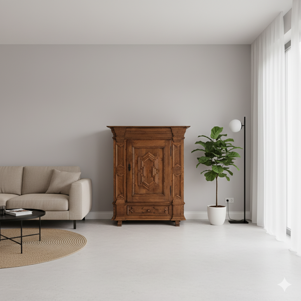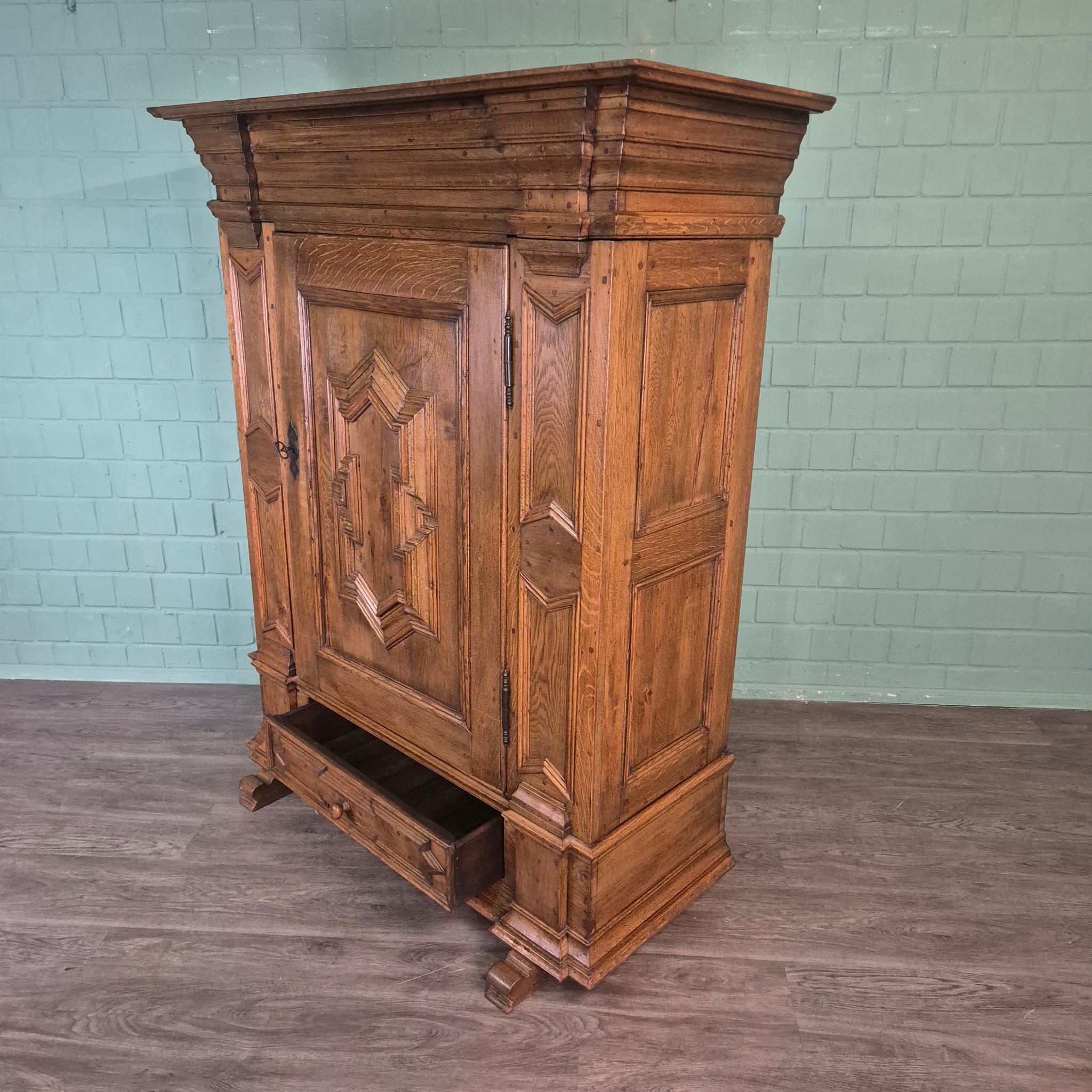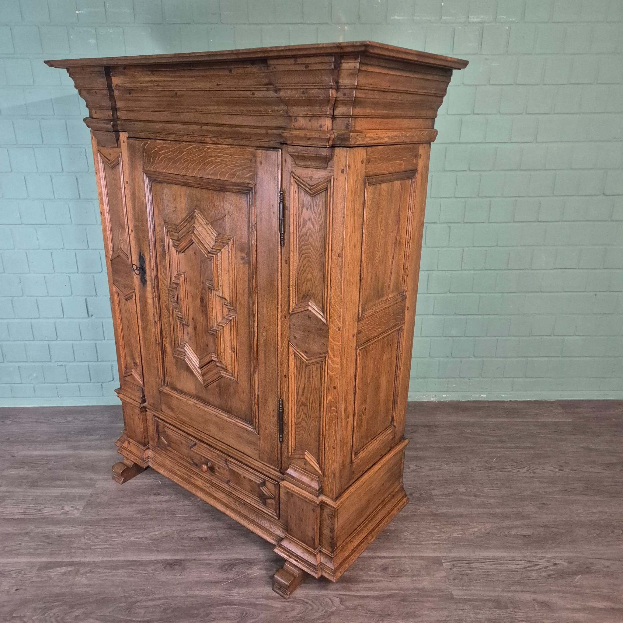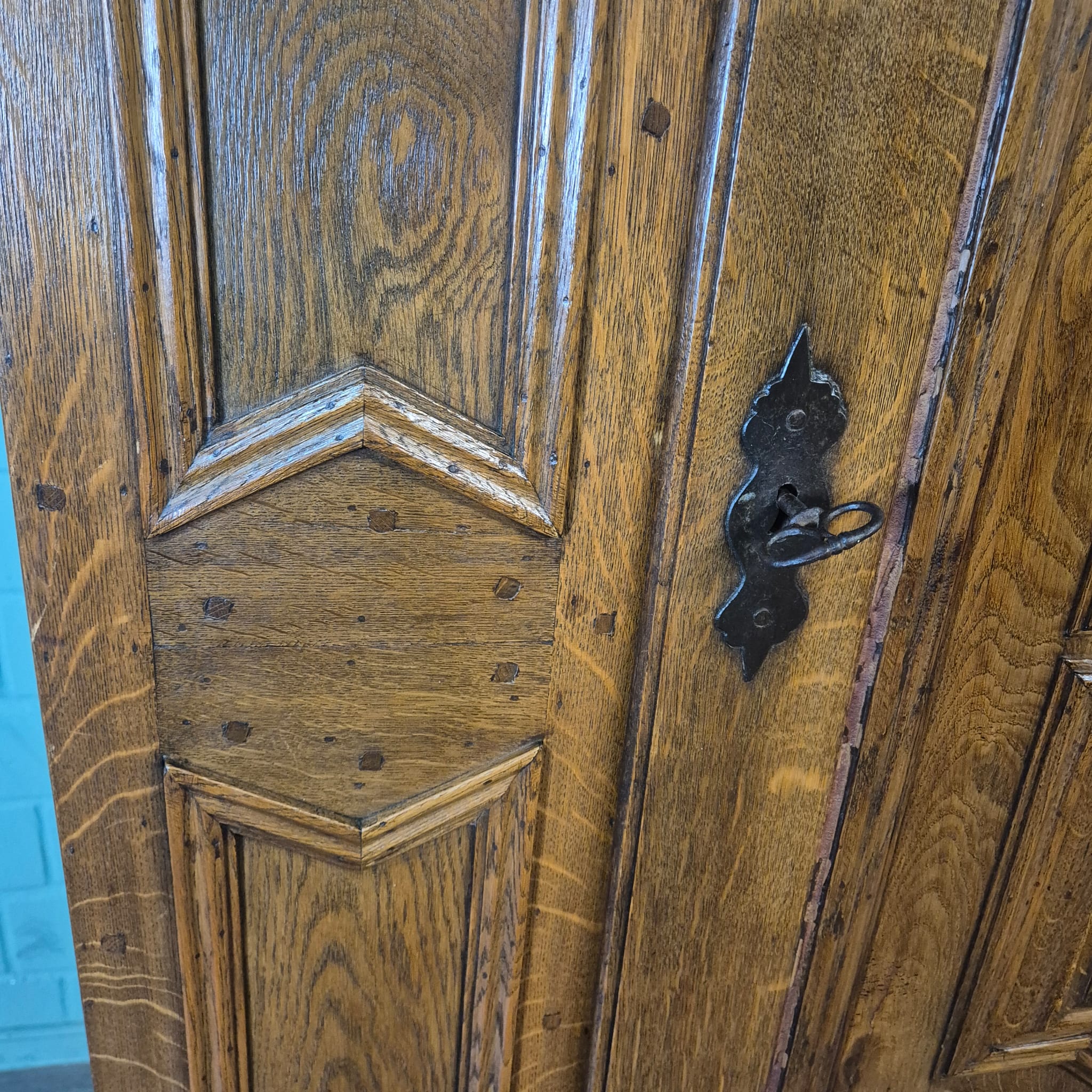 Restaurierter Barock Kleiderschrank aus massiv Eiche von ca. 1780. Der Schrank befindet sich in einem guten Zustand und weist nur leichte Gebrauchsspuren auf. Zerlegbar (6-teilig).