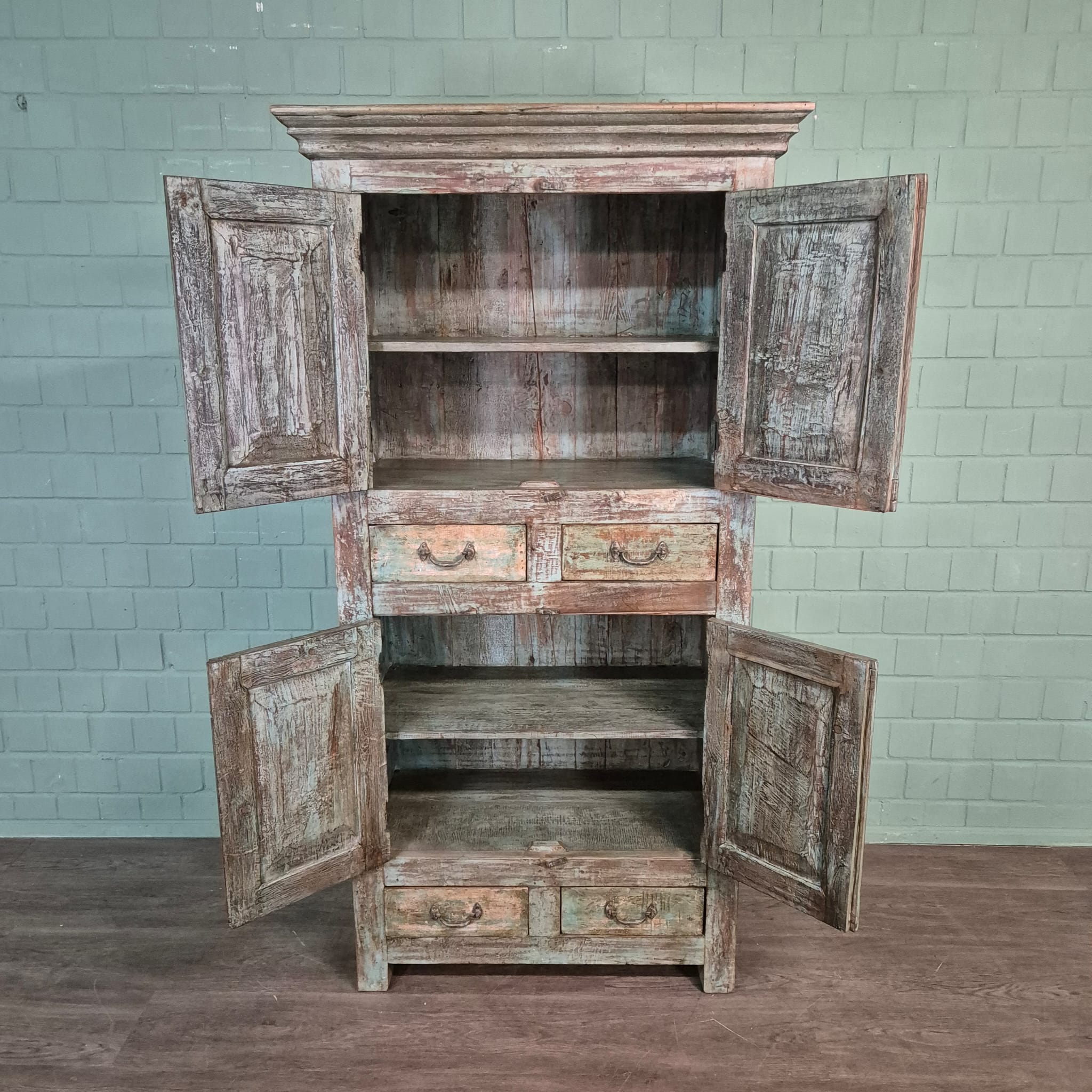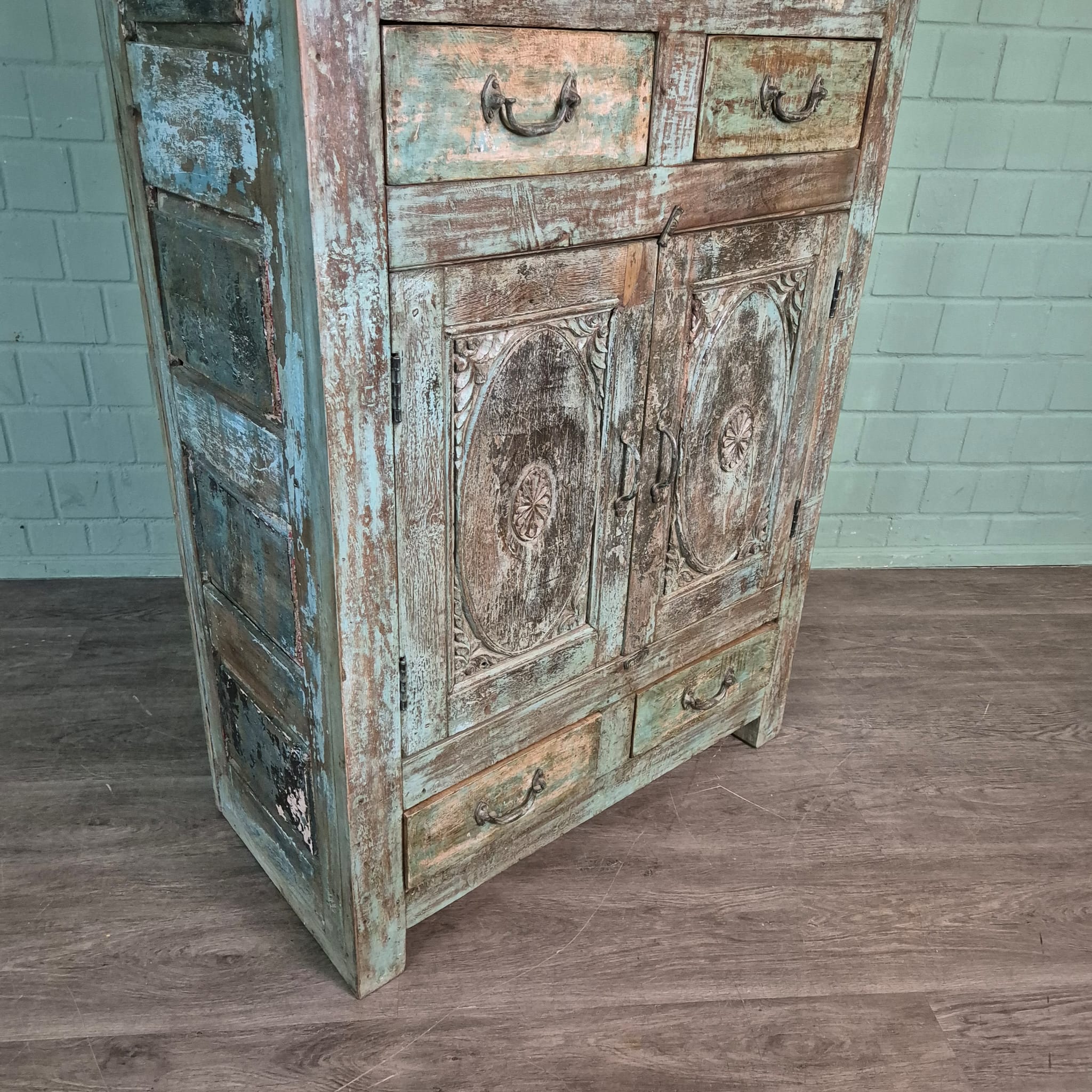 Verleihen Sie Ihrem Zuhause einen Hauch von rustikaler Eleganz und individuellem Charme mit diesem außergewöhnlichen Massivholz-Schrank im angesagten Shabby-Chic-Look. Dieses Möbelstück ist nicht nur eine praktische Stauraumlösung, sondern auch ein wahrhaft dekoratives Highlight, das Blicke auf sich zieht und Geschichten erzählt.