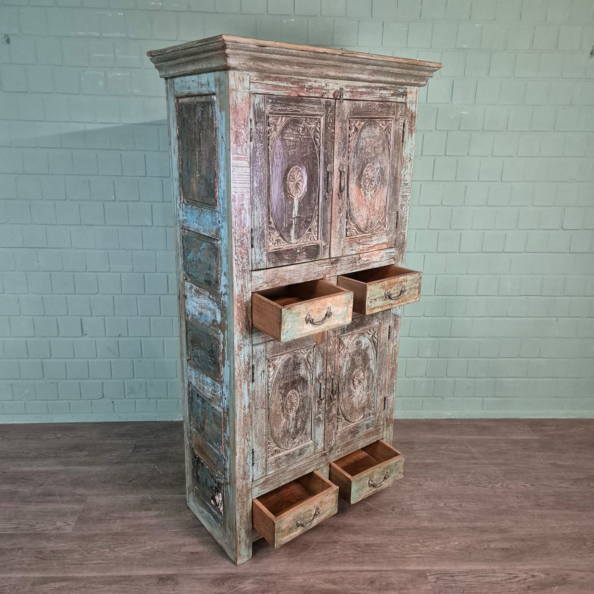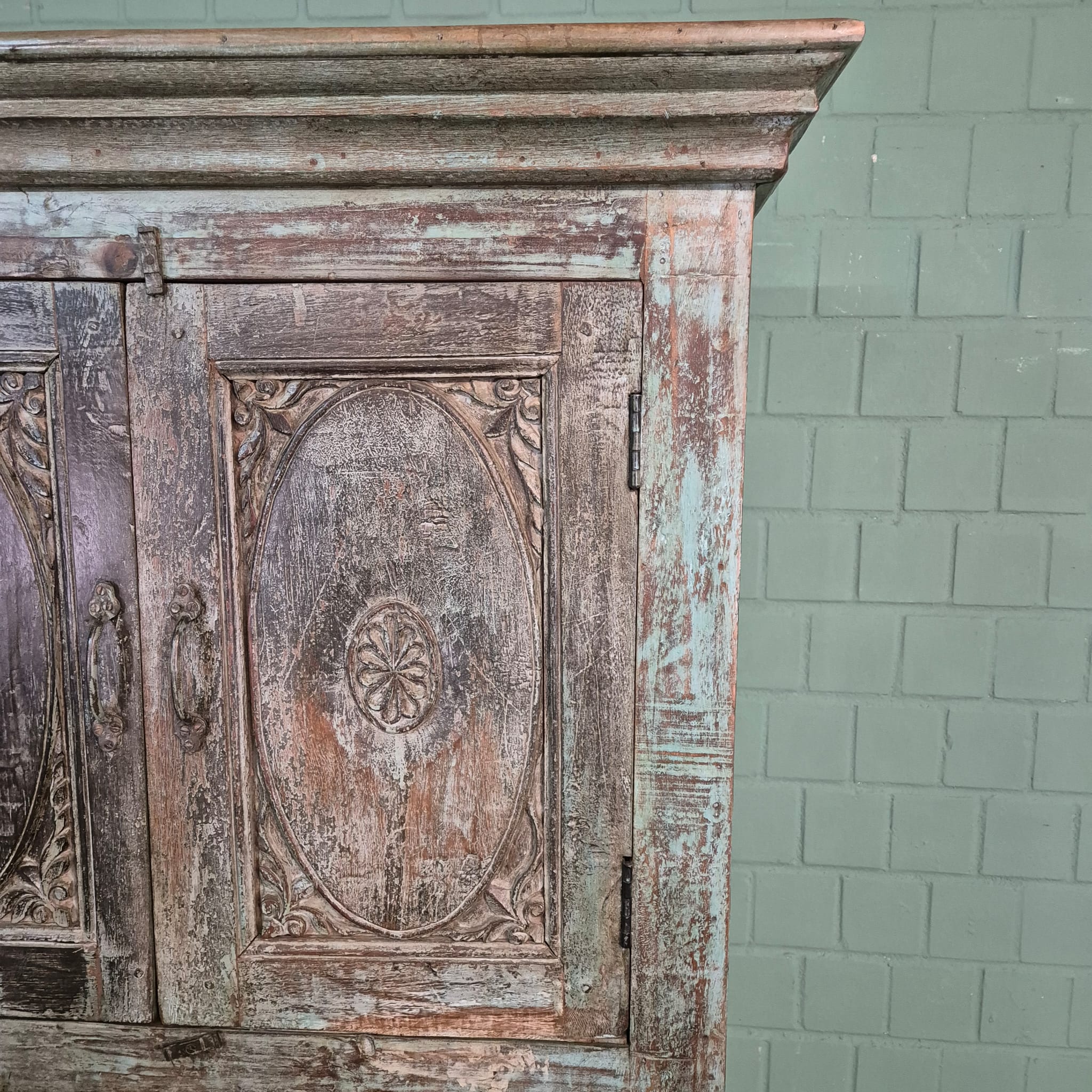 Einzigartiger Massivholz-Schrank im Shabby-Chic Stil – Mit kunstvollen Schnitzereien
