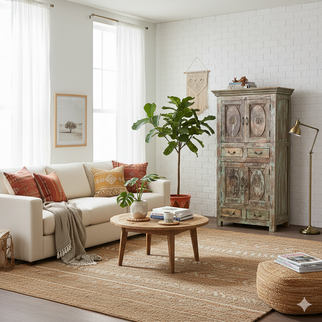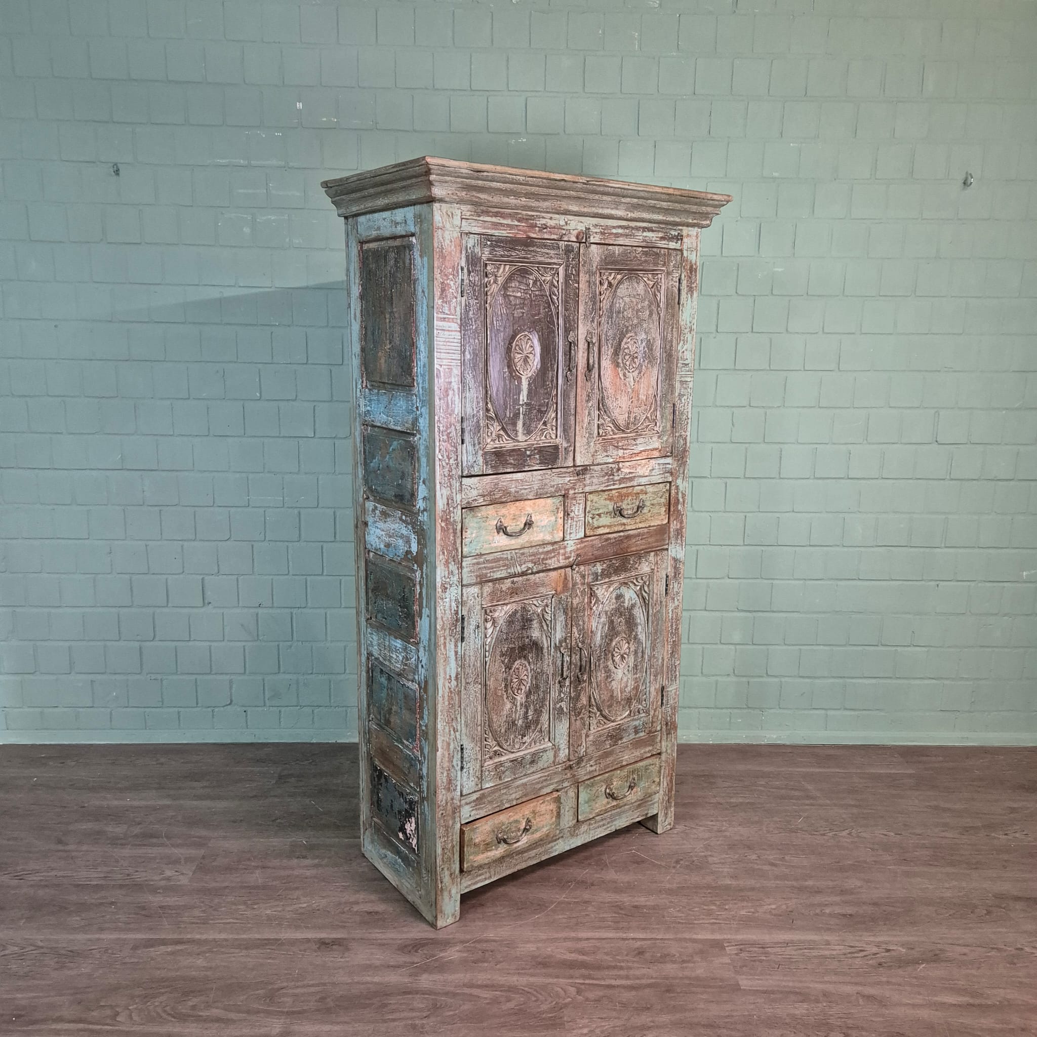 Dieser Massivholz-Schrank ist ideal für Liebhaber des individuellen Wohnstils, die Möbel mit Charakter und Seele schätzen.